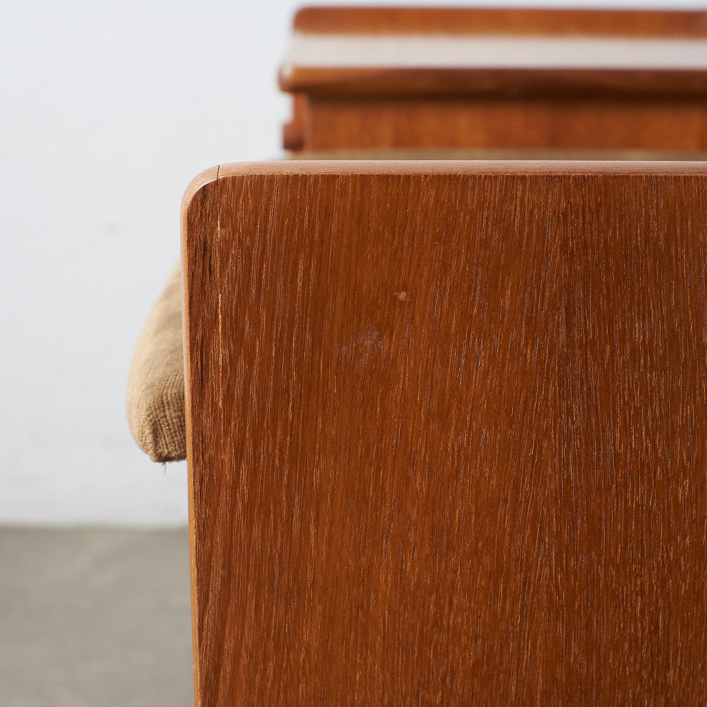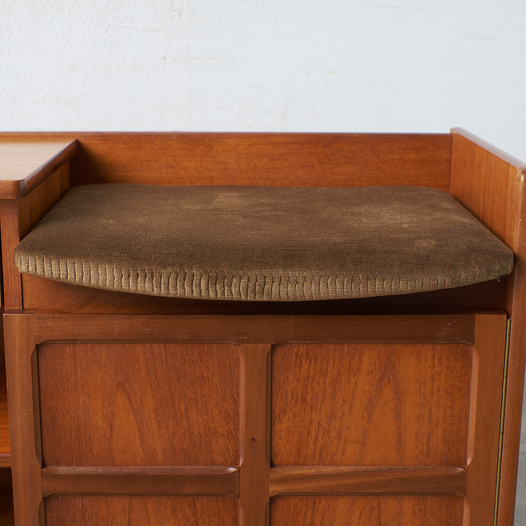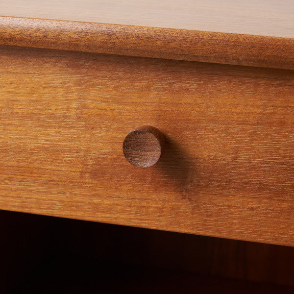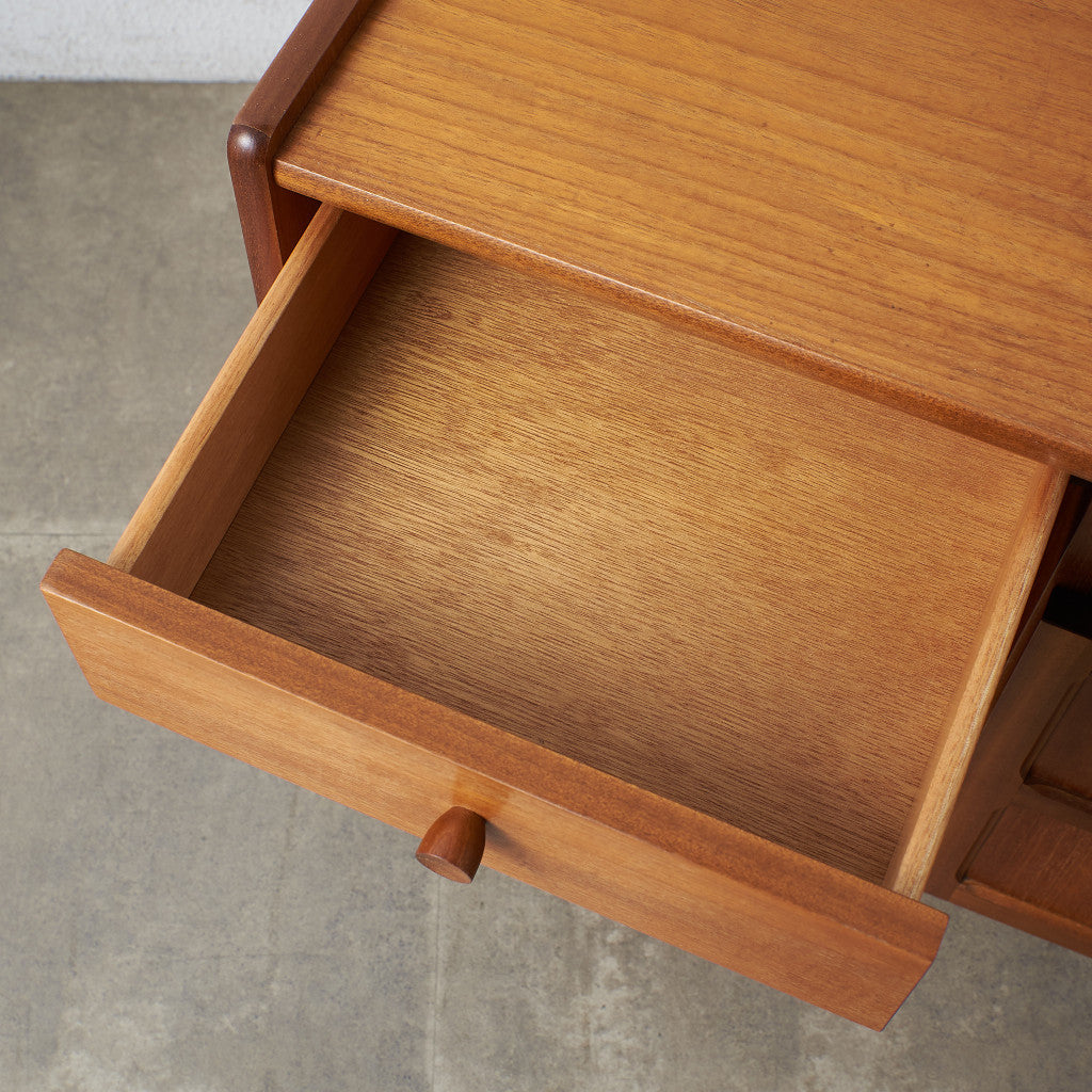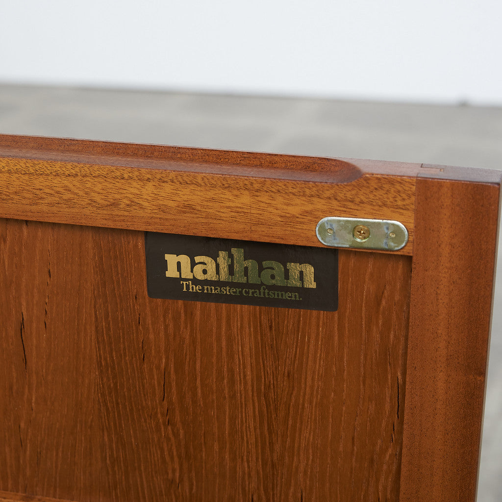 ネイサン社の創業は1916年、イギリス・ロンドンでロシア出身のバーネット・ネイサンが手作りの家具を製造したことに遡ります。1954年ニュー ヨークで開かれた家具展覧会においてイギリスを代表するデザインとして選ばれて一躍有名になり、チーク材の家具を本格的に生産。G-planシリーズで有名なエベネゼル・グーム社と並び、イギリスミッドセンチュリーを代表する家具メーカーへと発展しました。とくに「クラシックレンジ」シリーズは、時代を超越したデザインで優れた快適性と職人技が見事に融合。クラシックと北欧スタイルの折衷的な独自のデザインスタイルを生み出し、ジャコビアンドアスタイリングと美しいチーク材の組み合わせの自然な輝きがロンドンの都市生活者を虜にしました。