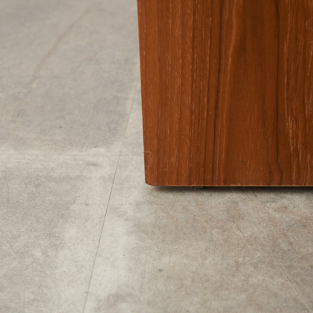 タイ北部からミャンマー産のチーク材は厳しい環境の中、ゆっくりと油分を蓄えながら育ち、鉄の防腐食作用、耐水、防腐、防虫作用が強く、収縮率が少なく木肌も詰まって美しい為、ブラジリアンローズ、ホンジュラスマホガニーと並ぶ世界三大銘木のひとつとして珍重されてきました。この地域のチーク材は「巻き枯らし」と呼ばれる3~5年をかけて立木のまま水抜きをする特殊な伐採手順を踏んでおり非常に素直な加工に適した木質となっています。また、この手順から(ドライチーク)とも呼ばれています。北欧家具や高級家具の素材として使われてきたチーク材ですが、現在は個体数が激減し極めて稀少価値の高い存在となっております。現在流通するチーク材は人工栽培されたインドネシア、ジャワ産の「インドネシアチーク」が主流になっていますが、成長がはやく若木のうちに伐採されるため、木目の美しさや耐久性に劣ります。