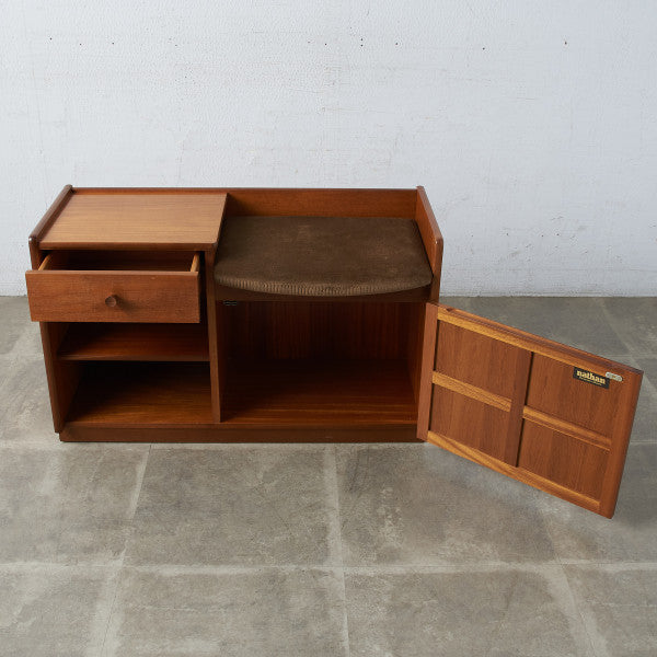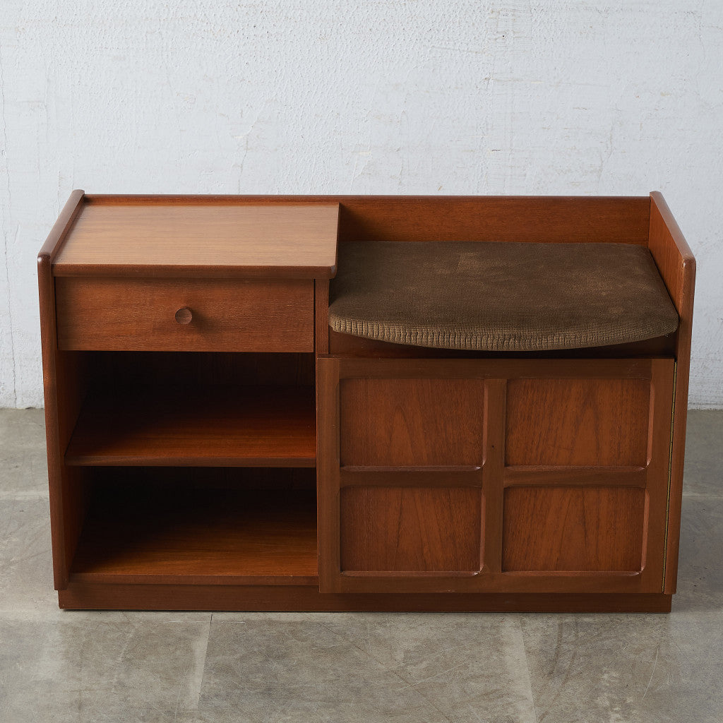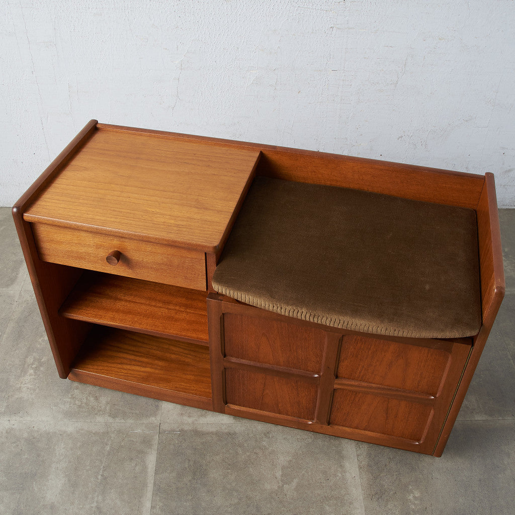 [64534]nathan ネイサン チーク 英国 ヴィンテージ テレフォンベンチ 引出し付 電話台 スツール 椅子 サイドテーブル イギリス 木製