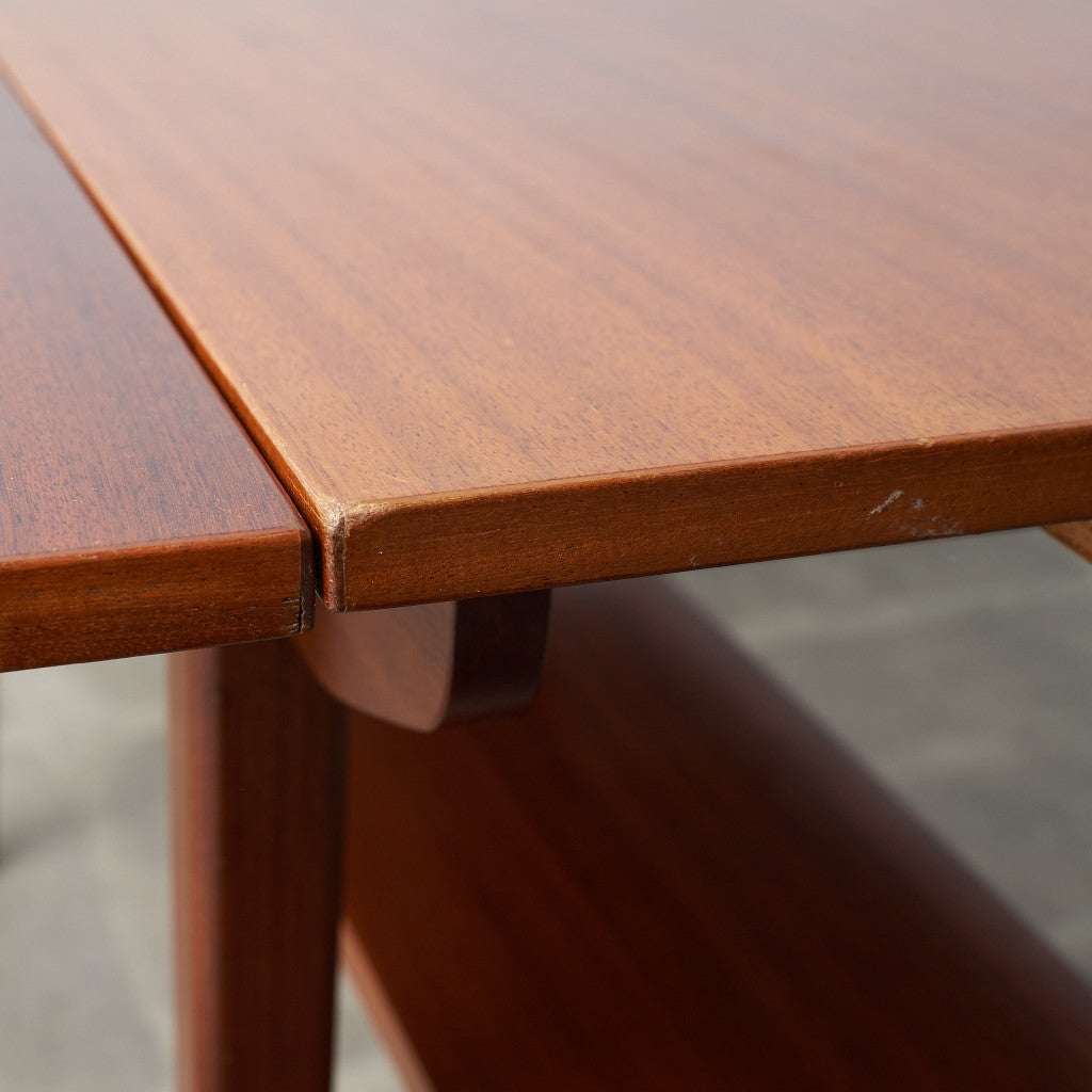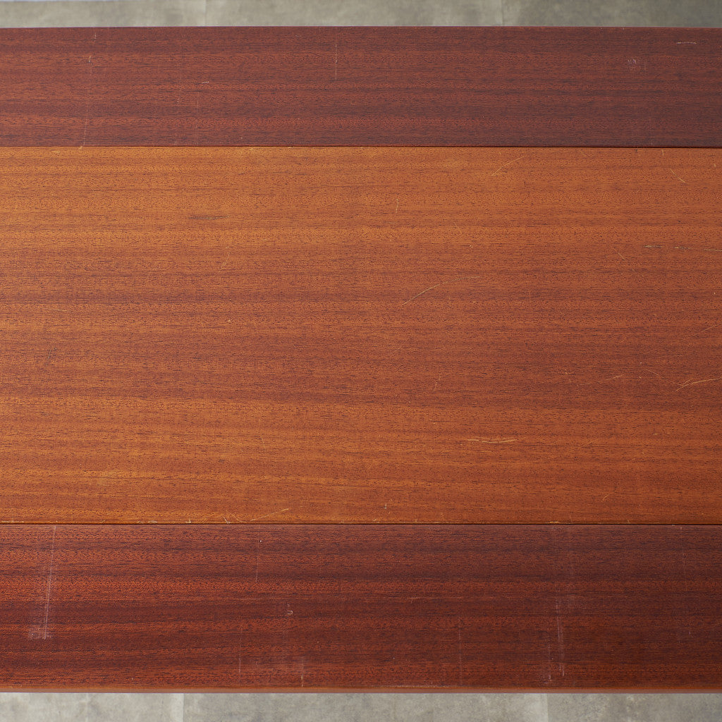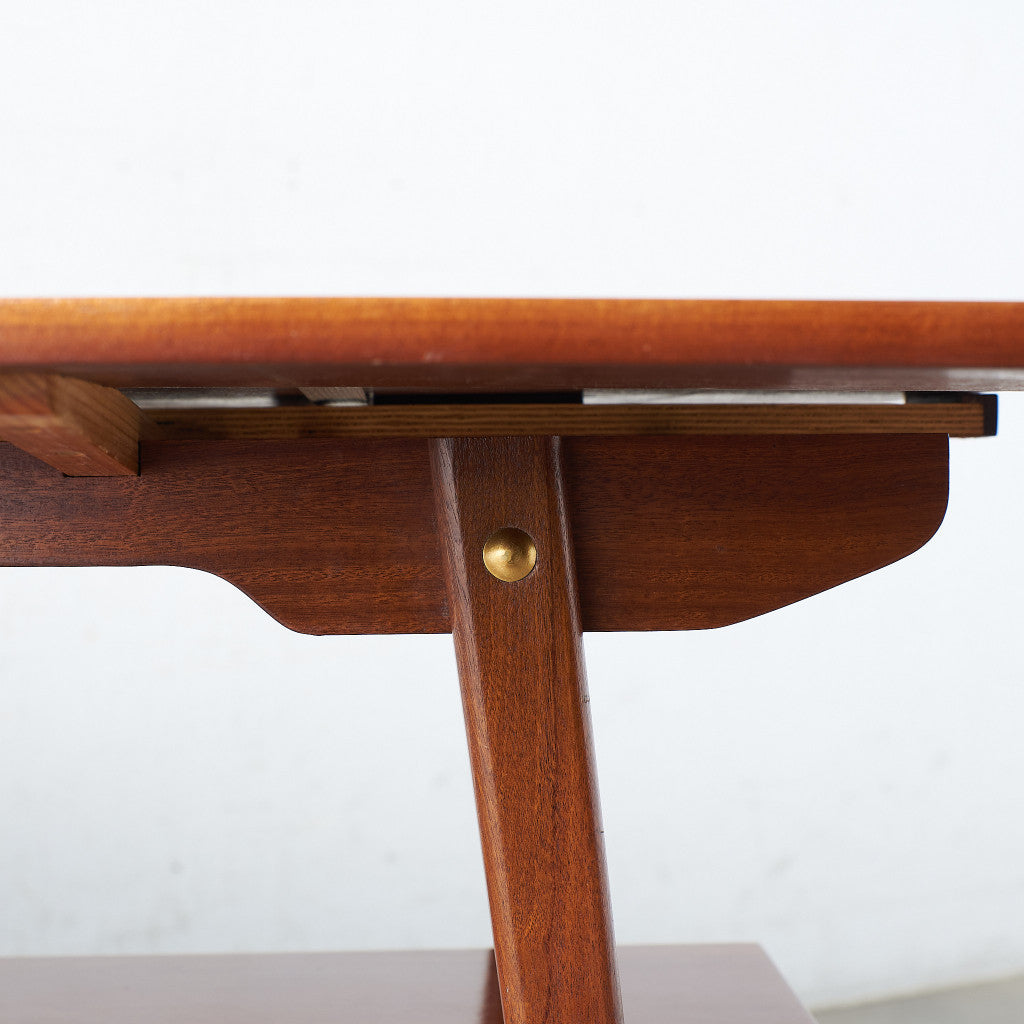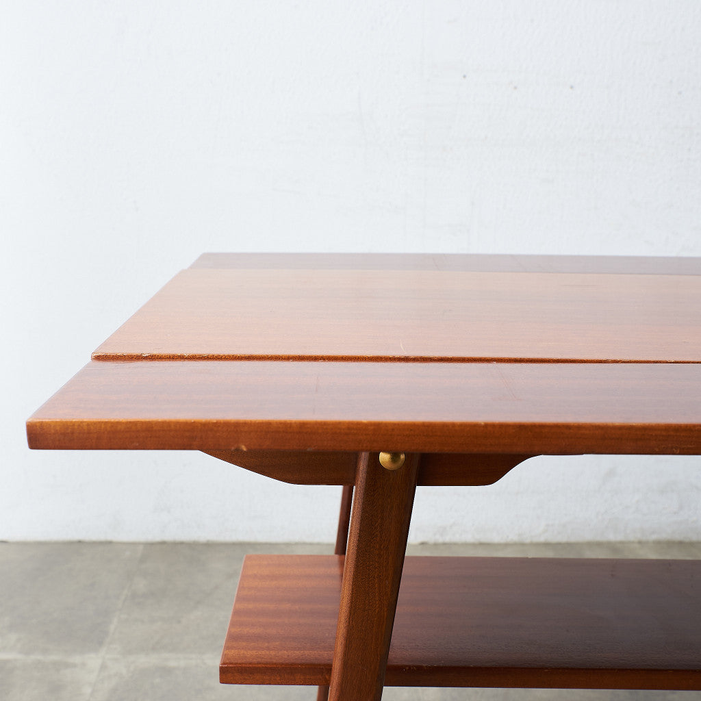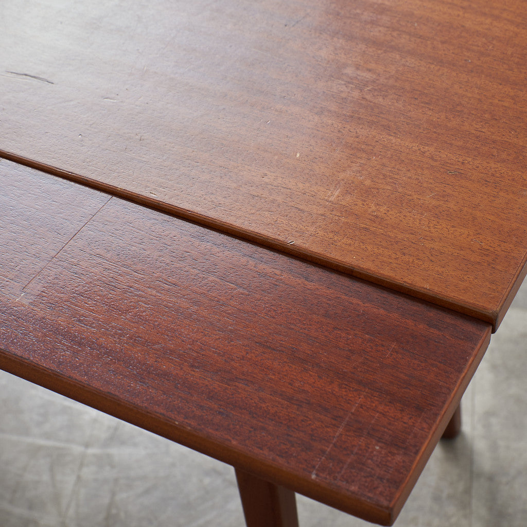 長辺が展開する珍しい仕様のコーヒーテーブル。片側天板だけを引き出して使うなど、必要に応じて便利にお使いいただけます。実用的でありながらも作り手のこだわりを感じさせる北欧の年代物とも相性の良いヴィンテージファニチャーです。