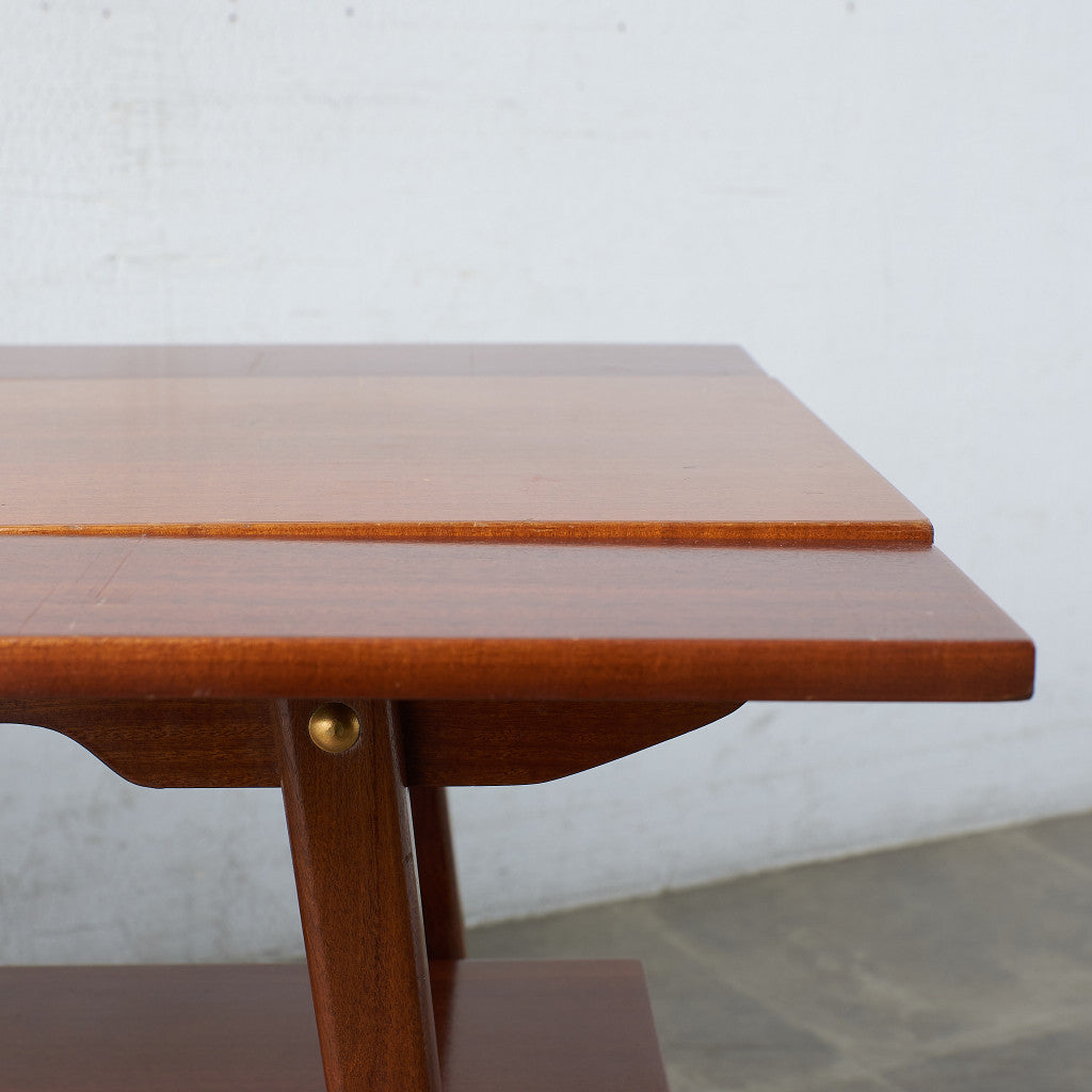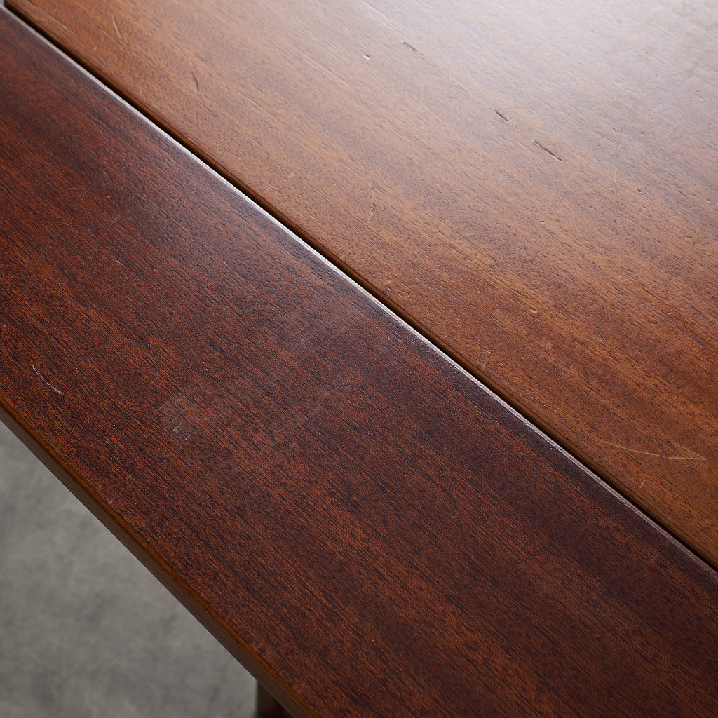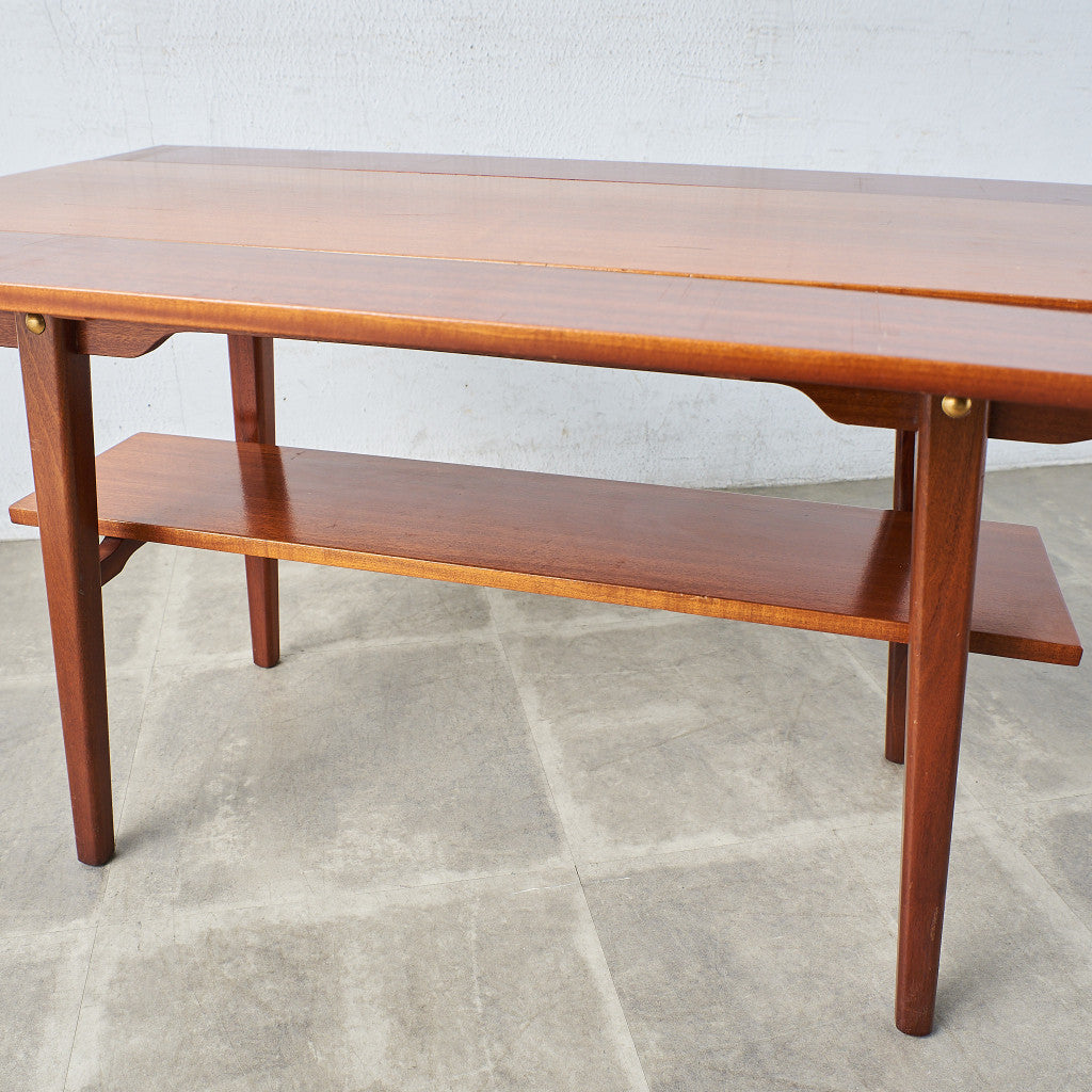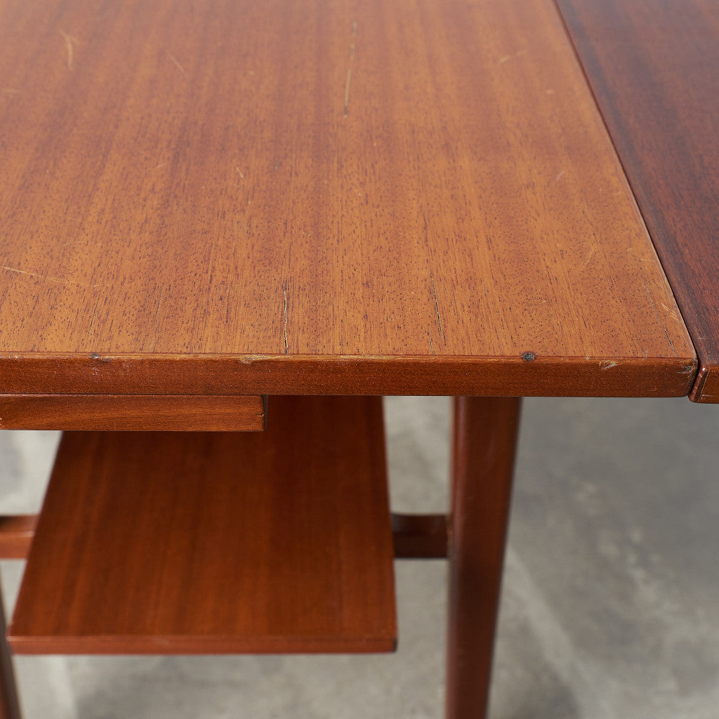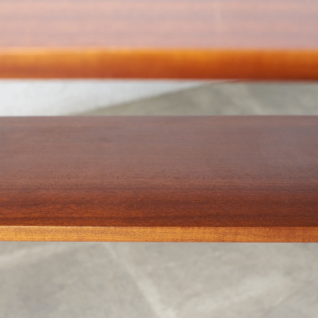 長辺が展開する珍しい仕様のコーヒーテーブル。片側天板だけを引き出して使うなど、必要に応じて便利にお使いいただけます。実用的でありながらも作り手のこだわりを感じさせる北欧の年代物とも相性の良いヴィンテージファニチャーです。