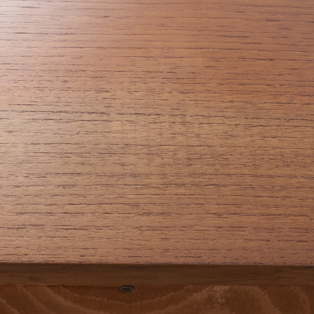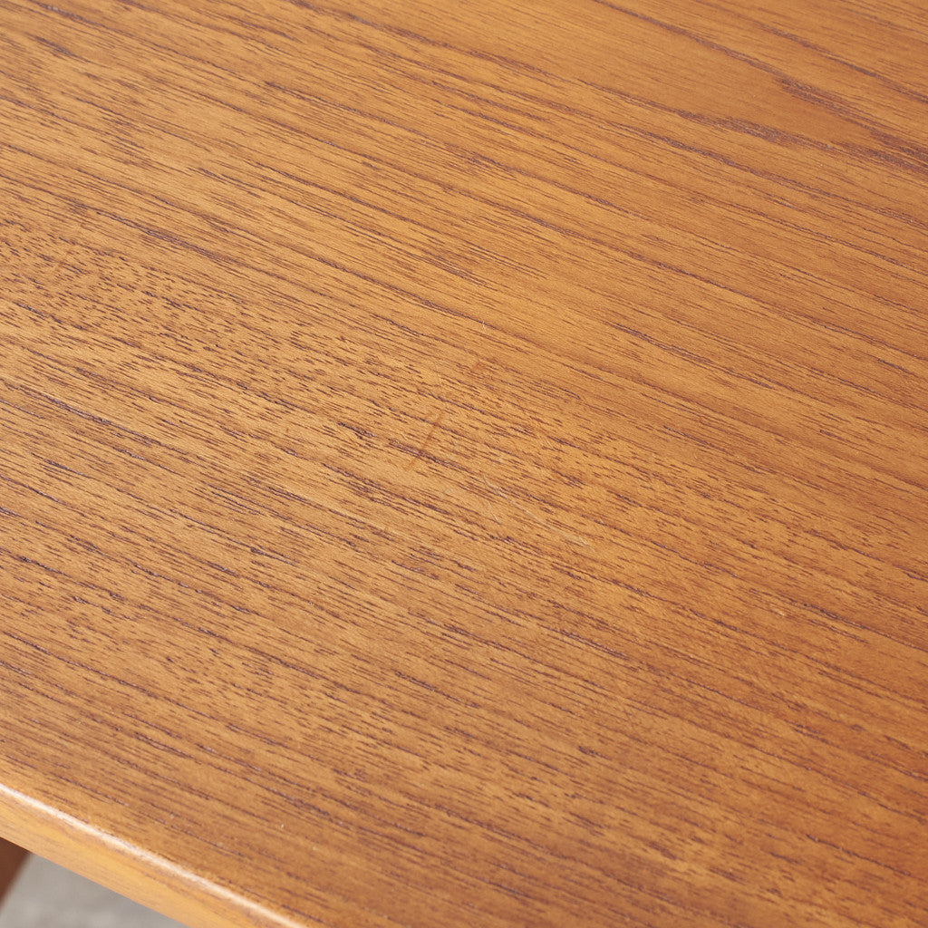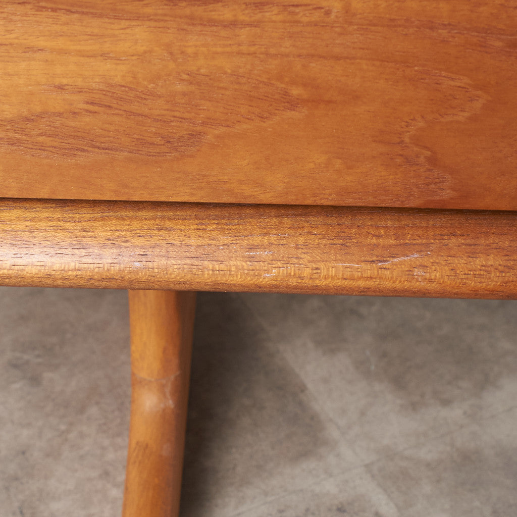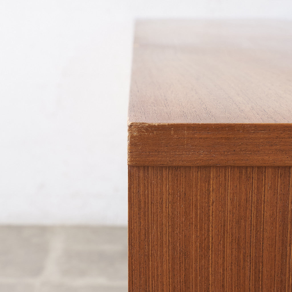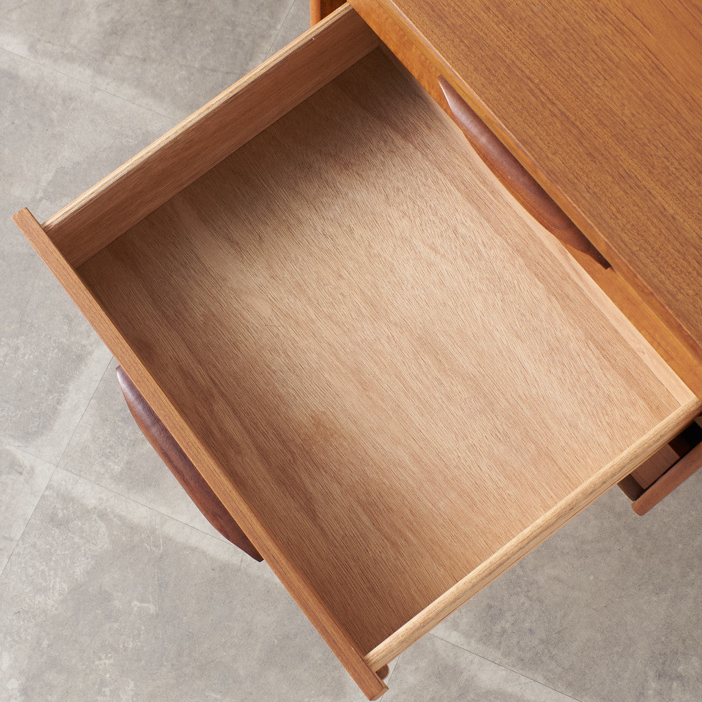 今では希少な高級材であるチーク材を使用した温かみのある褐色の木肌が印象的。研ぎ出された滑らかな取っ手など、実用的でありながらも作り手のこだわりを感じさせるヴィンテージファニチャーです。