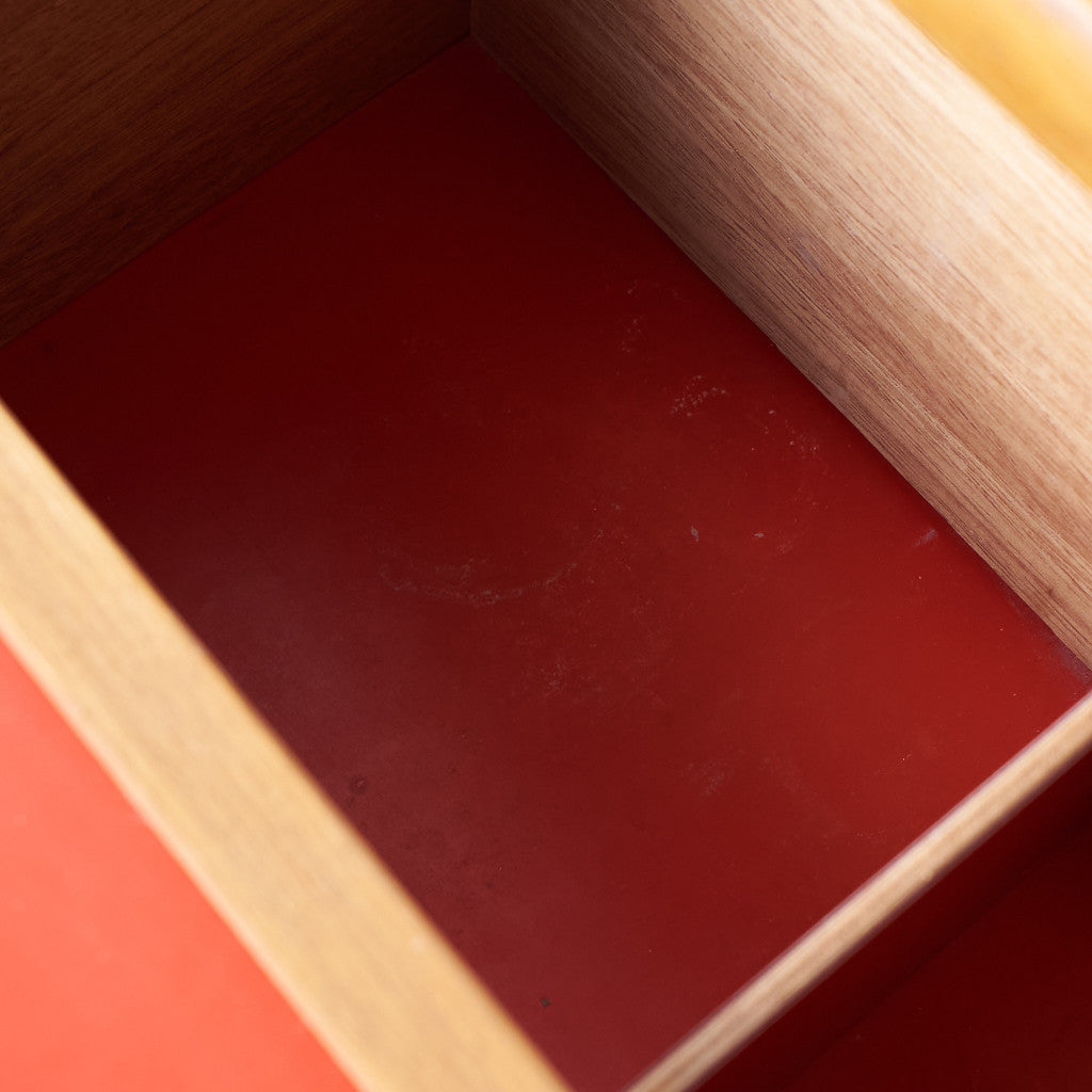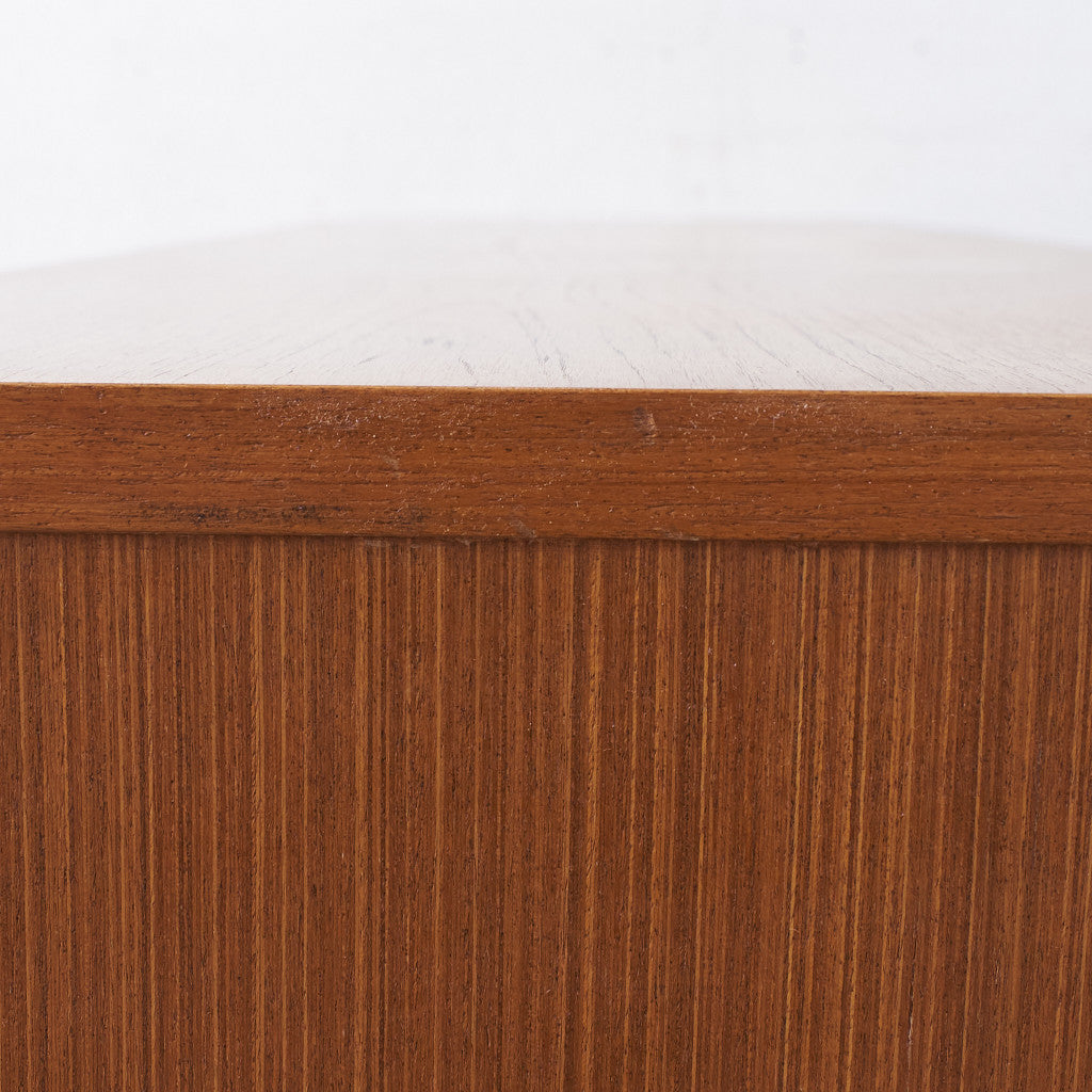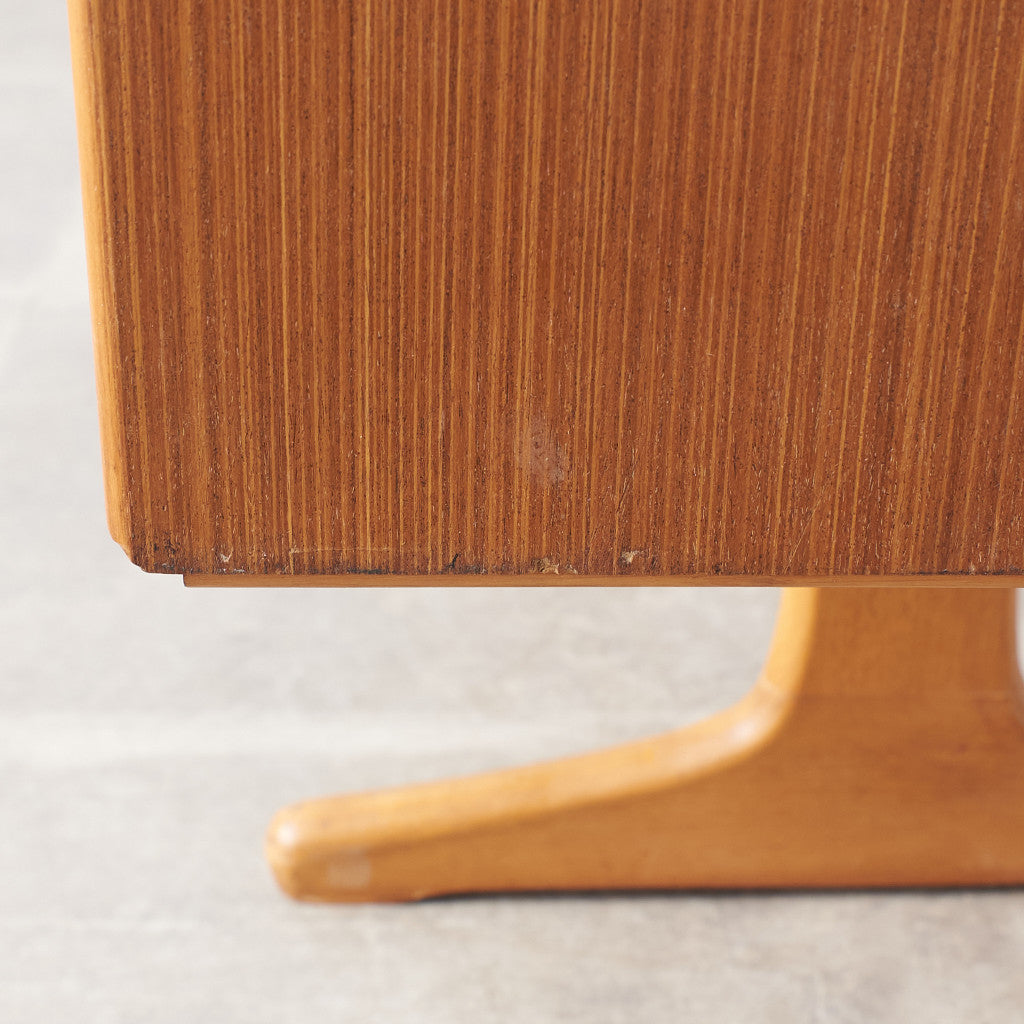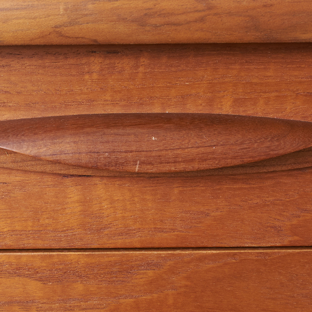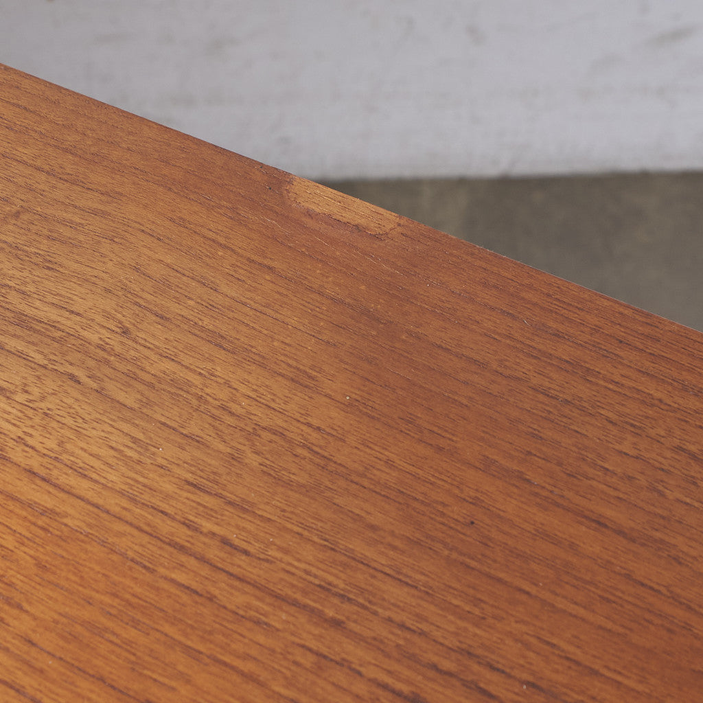 今では希少な高級材であるチーク材を使用した温かみのある褐色の木肌が印象的。研ぎ出された滑らかな取っ手など、実用的でありながらも作り手のこだわりを感じさせるヴィンテージファニチャーです。
