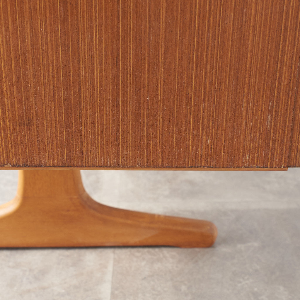 オースティン4兄弟によって1928年にロンドンで設立された家具メーカー。60年代に入るとG-PLANや A.H. Mcintosh同様にチークやアフロモシアを用いた北欧スタイルの家具を製作し、シンプルで高品質の家具が人気となりました。直線的なデザインに、脚や取っ手、天板のエッジやミラーの枠などワンポイントの曲線を入れるデザインが特徴です。