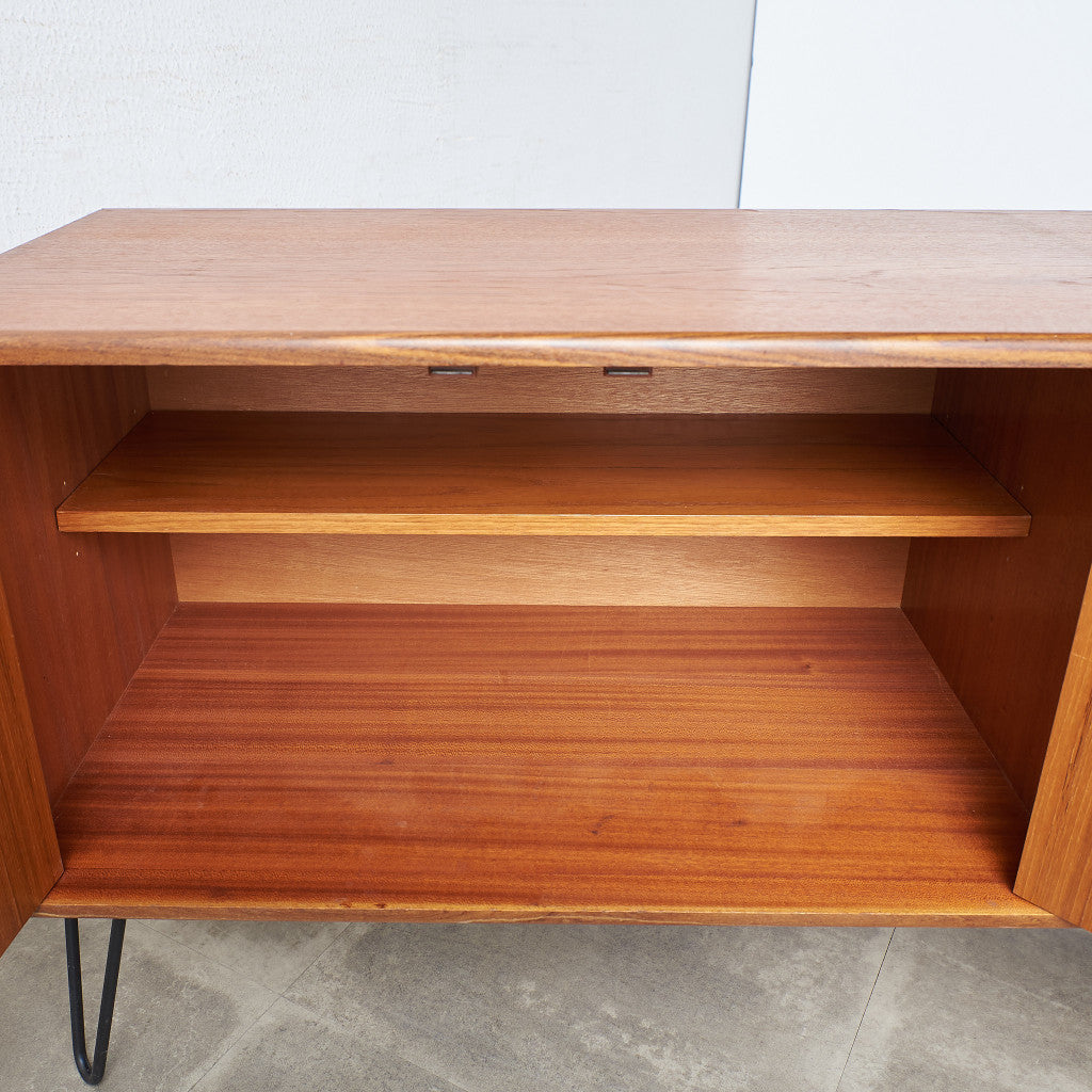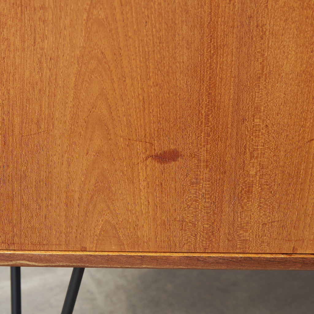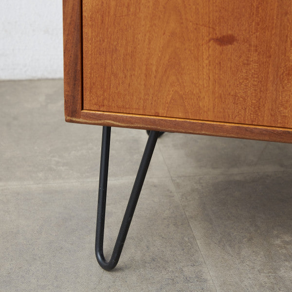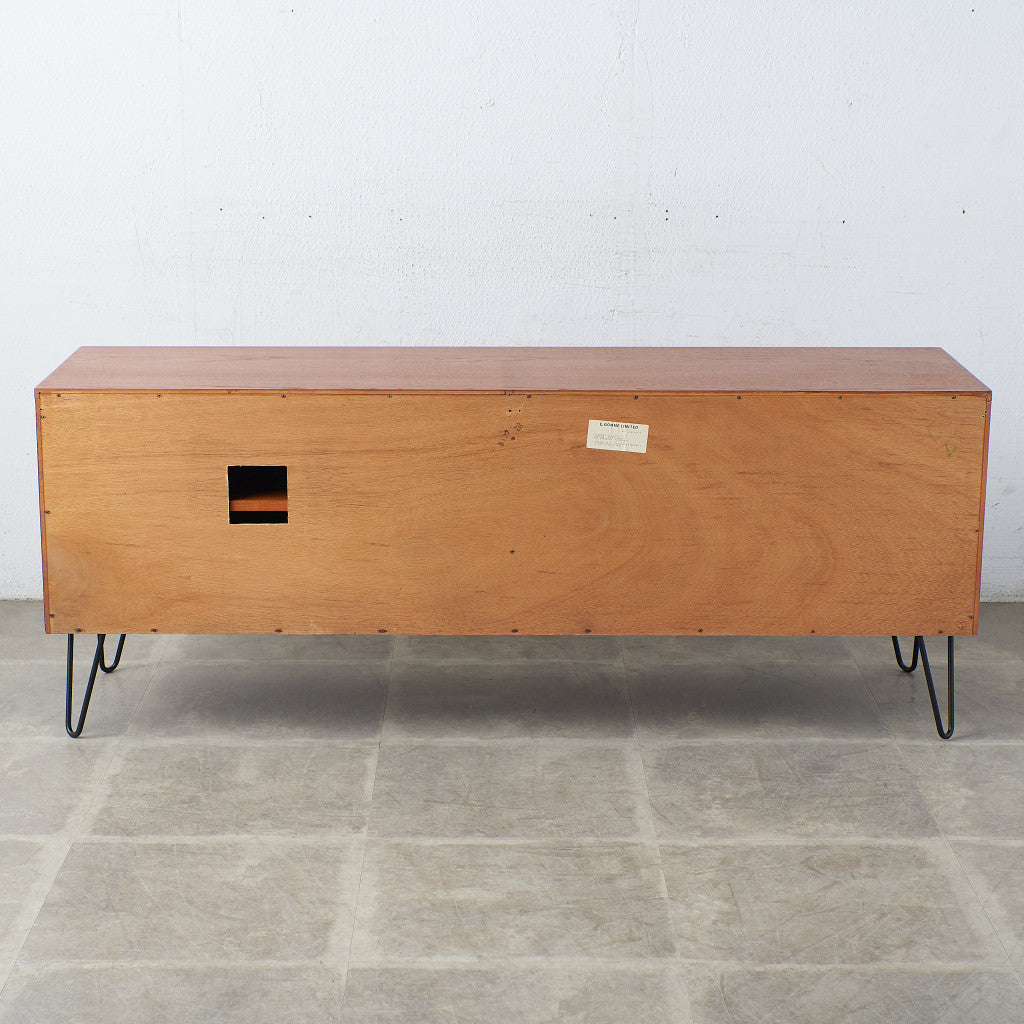 英国ミッドセンチュリーの筆頭ブランド、G-PLAN(ジープラン)による、Victor Bramwell Wilkins(ビクター・ブラムウェル・ウィルキンス)デザイン『Fresco(フレスコ)』シリーズ、カスタム アイアンレッグ サイドキャビネットです。