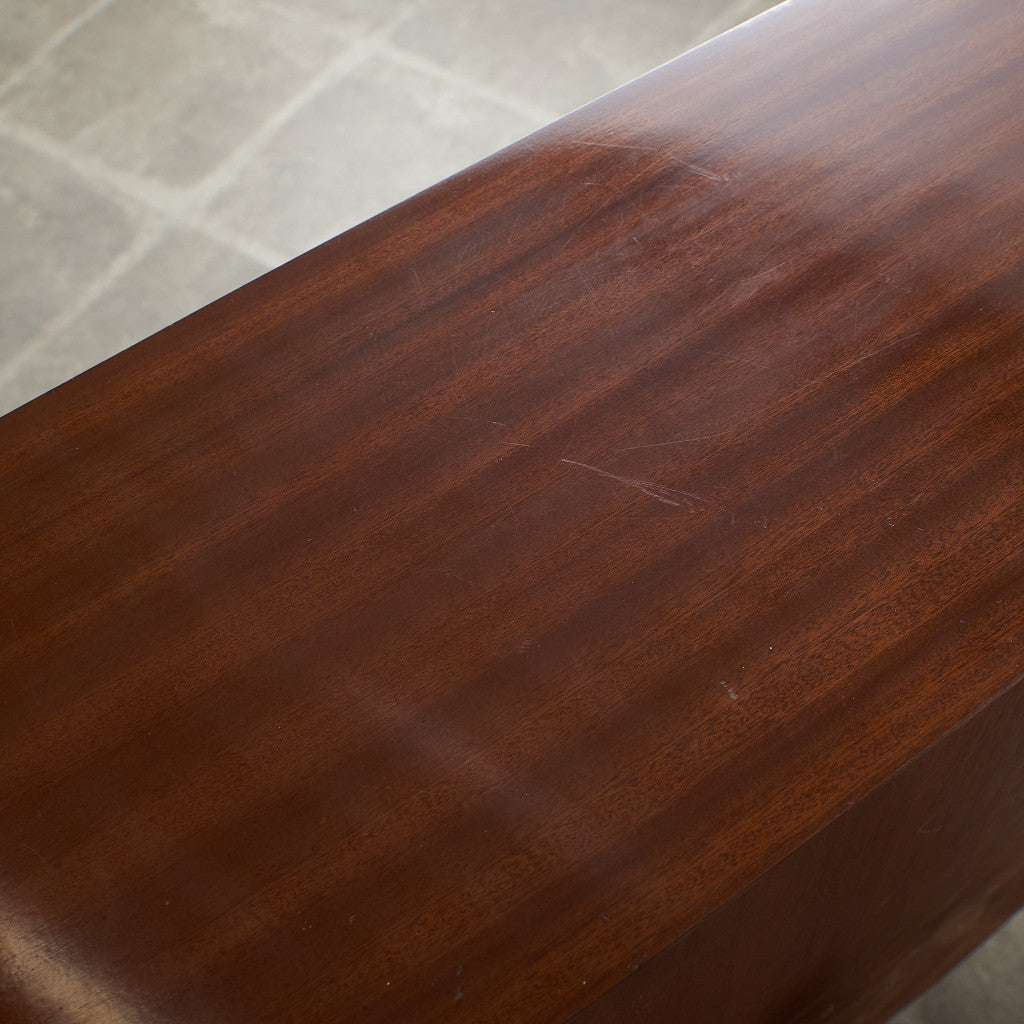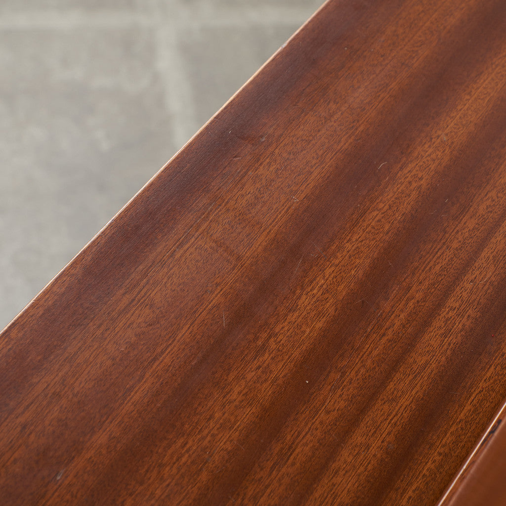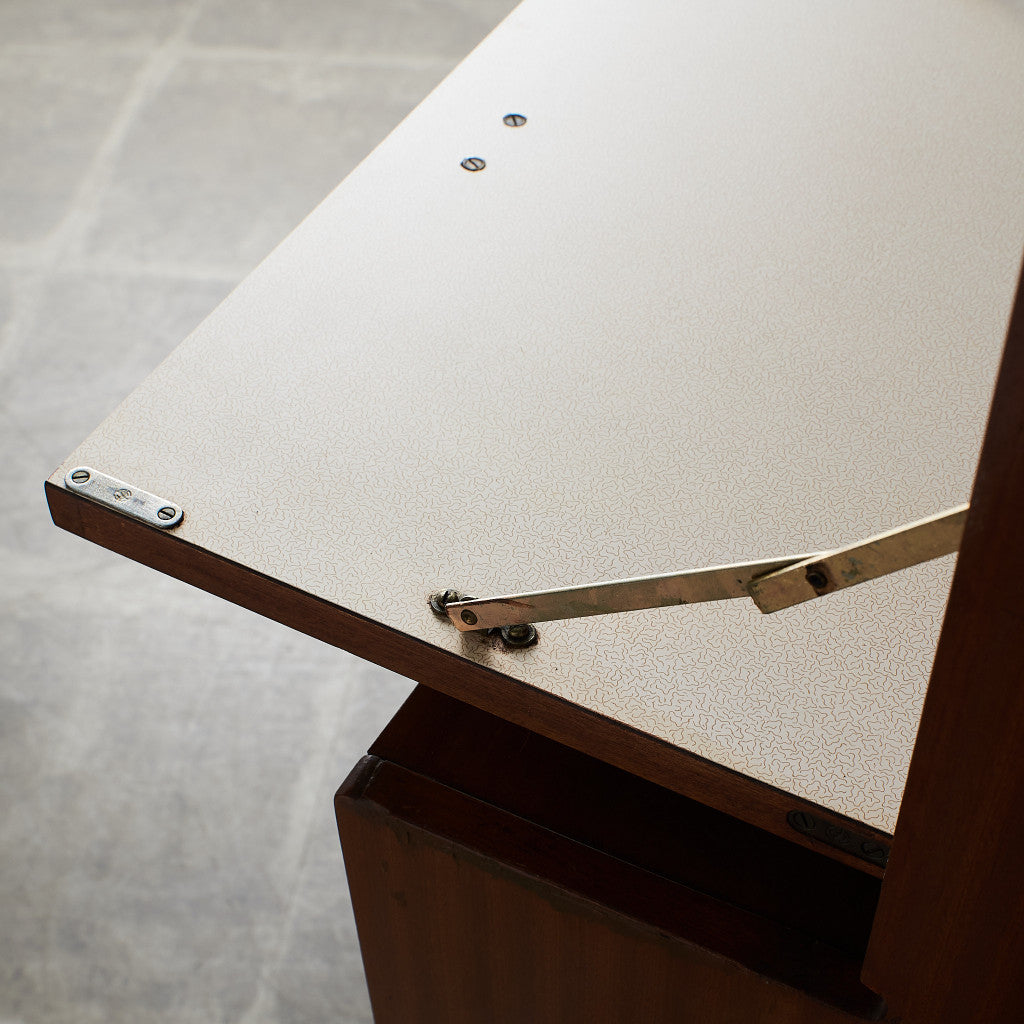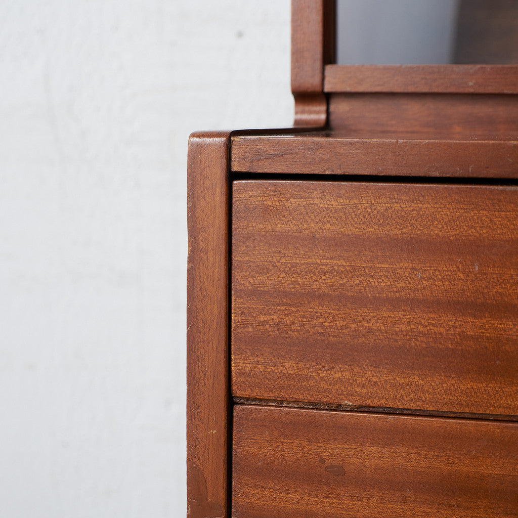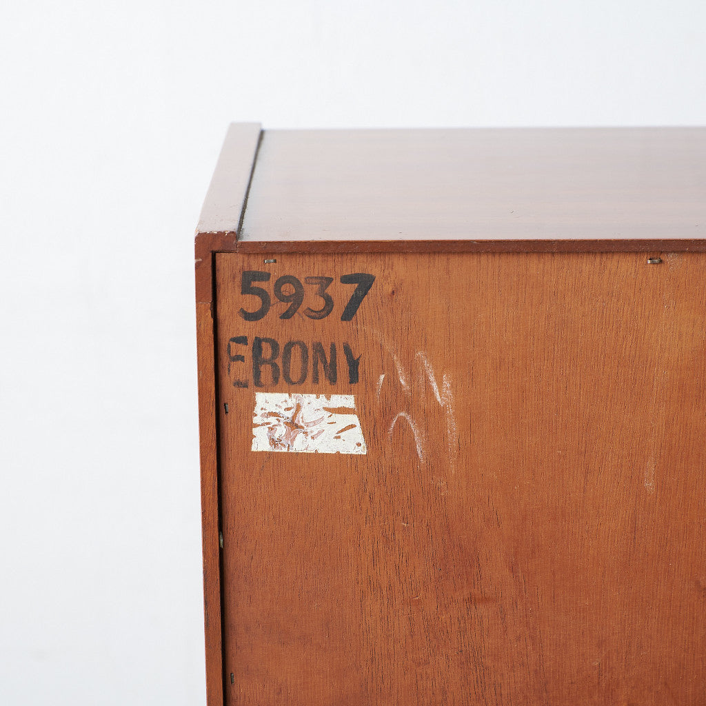 濃淡ある美しい木目が印象的。ヴィンテージならではの味わい深い質感と端正なシルエット、削り出された木製取手のバランスが上品なアクセントを添えています。小ぶりなサイズ感ながら抜群の収納力です。食器棚としてはもちろん飾り棚としてもおすすめです。