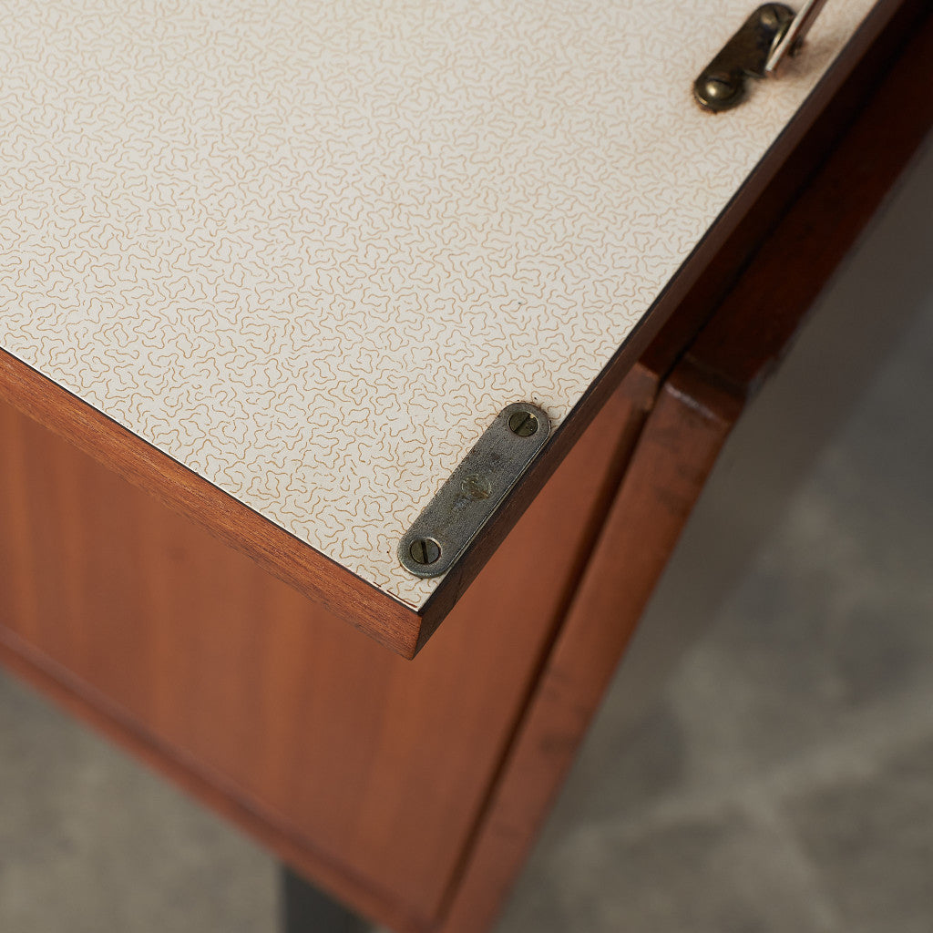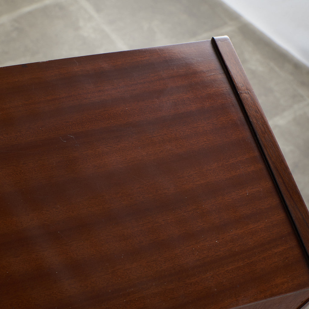 ネイサン社の創業は1916年、イギリス・ロンドンでロシア出身のバーネット・ネイサンが手作りの家具を製造したことに遡ります。1954年ニュー ヨークで開かれた家具展覧会においてイギリスを代表するデザインとして選ばれて一躍有名になり、チーク材の家具を本格的に生産。G-planシリーズで有名なエベネゼル・グーム社と並び、イギリスミッドセンチュリーを代表する家具メーカーへと発展しました。とくに「クラシックレンジ」シリーズは、時代を超越したデザインで優れた快適性と職人技が見事に融合。クラシックと北欧スタイルの折衷的な独自のデザインスタイルを生み出し、ジャコビアンドアスタイリングと美しいチーク材の組み合わせの自然な輝きがロンドンの都市生活者を虜にしました。