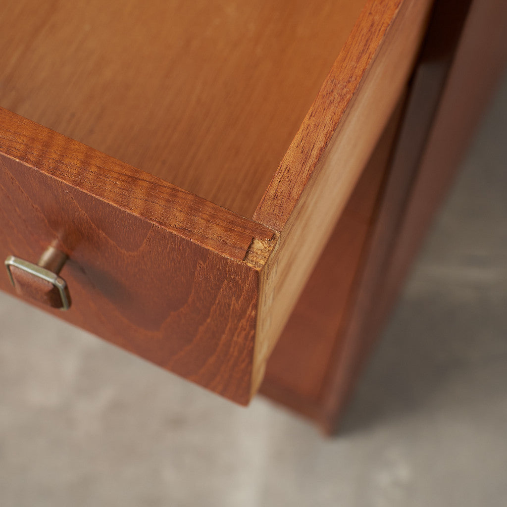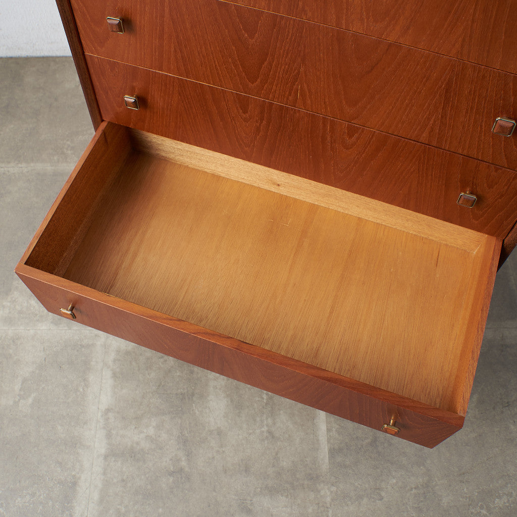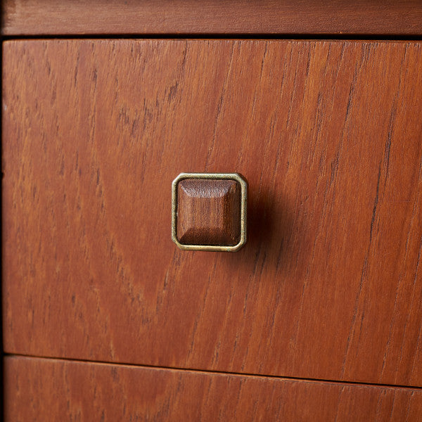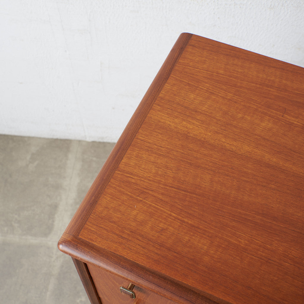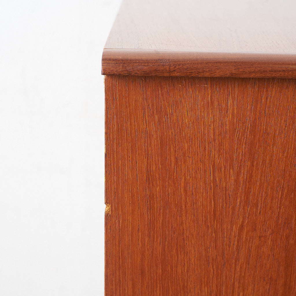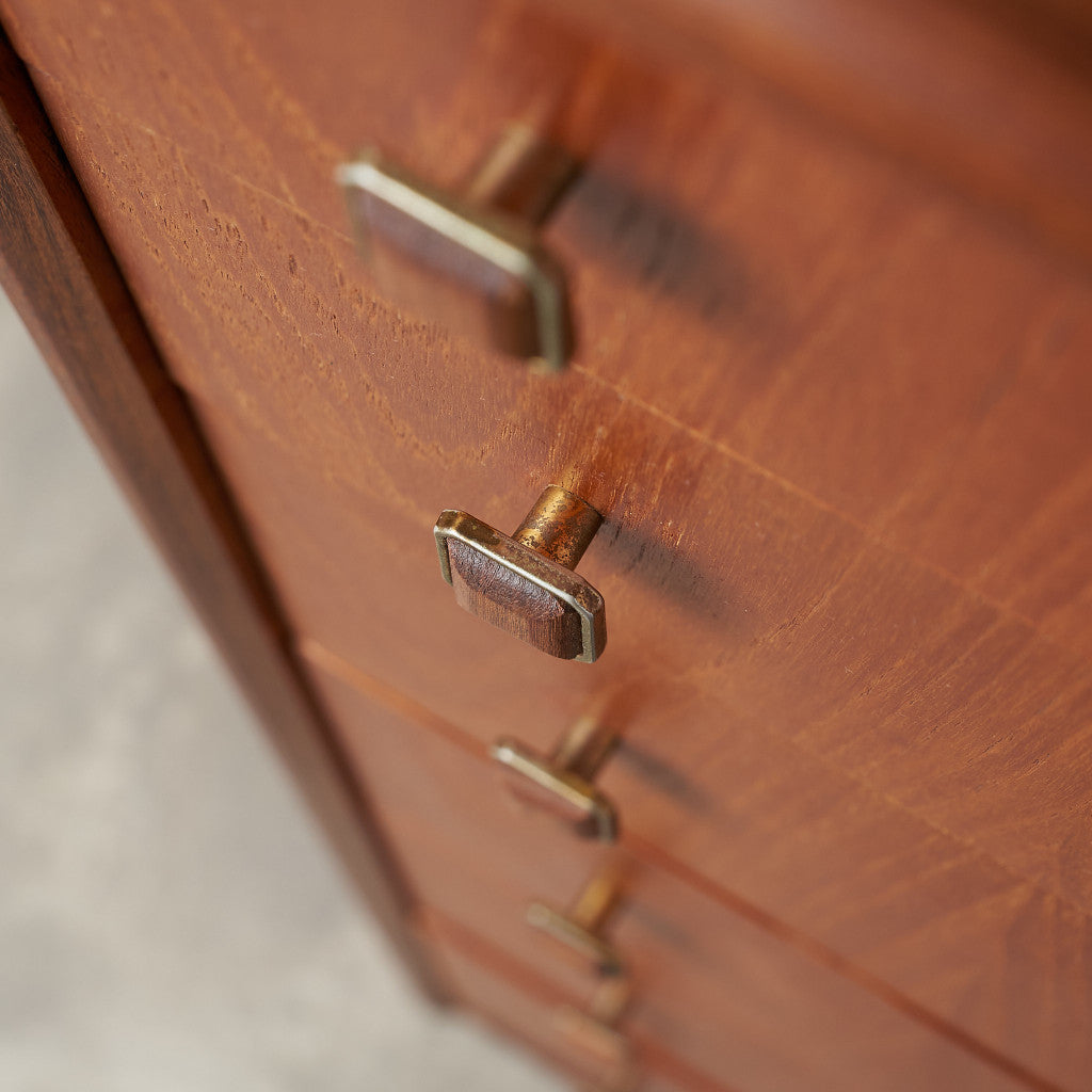 デンマークスタイルのデザインをルーツに、独自のアレンジが施されたヴィンテージチェスト。今では希少な高級材チークを使用した褐色の木肌が印象的です。