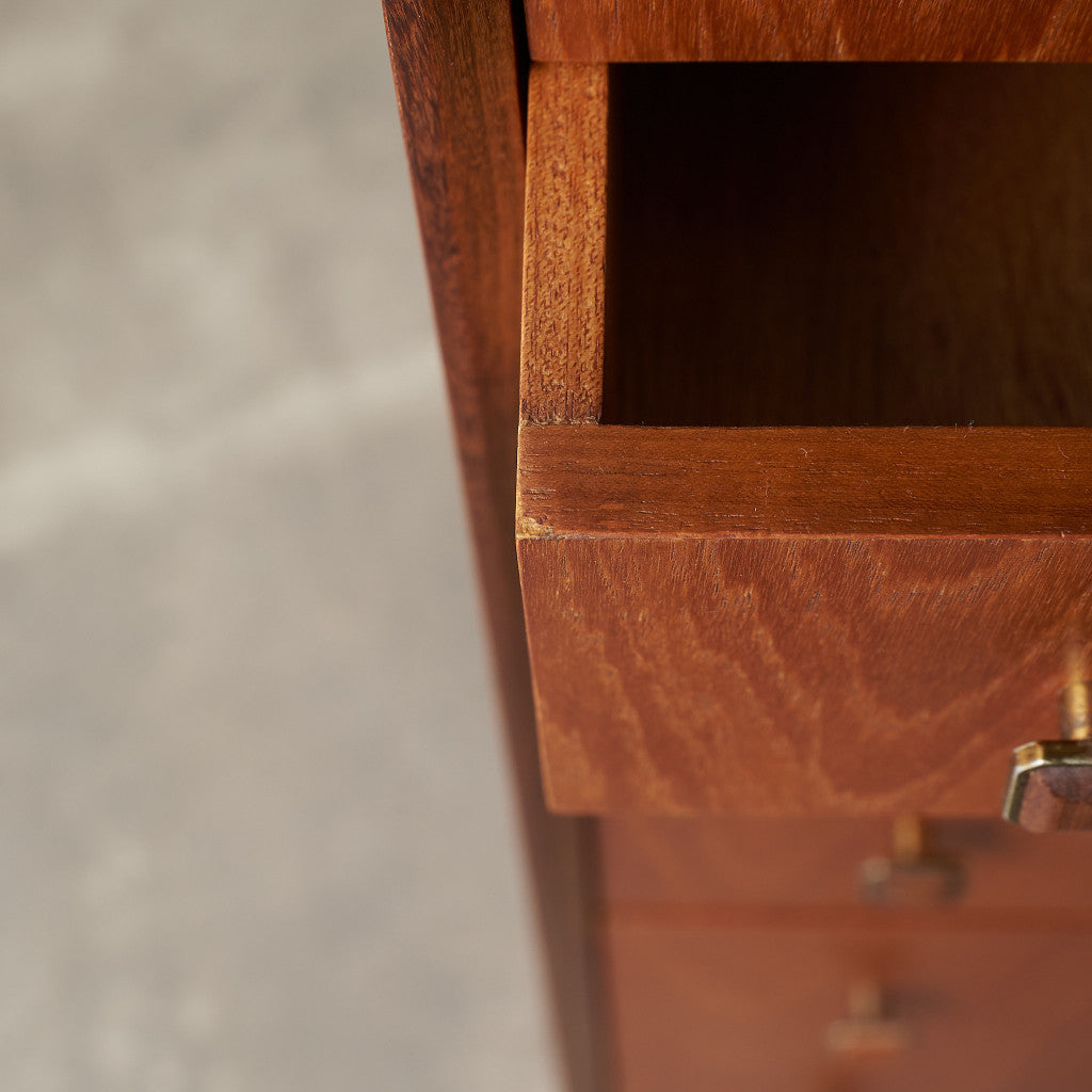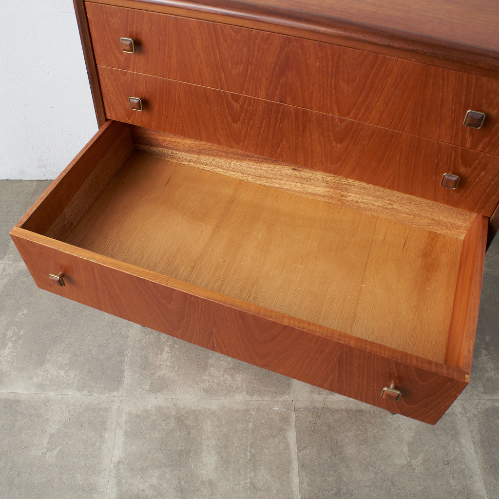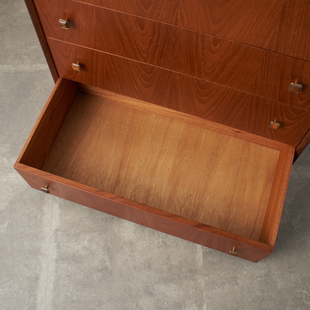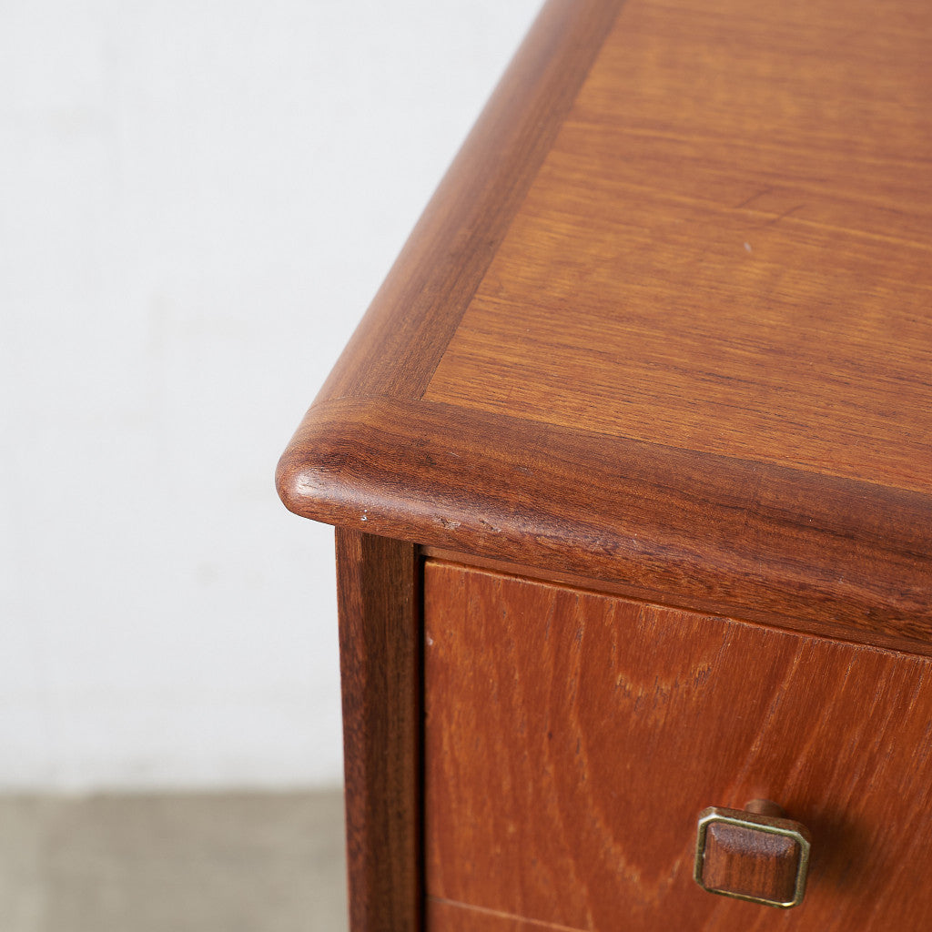 デンマークスタイルのデザインをルーツに、独自のアレンジが施されたヴィンテージチェスト。今では希少な高級材チークを使用した褐色の木肌が印象的です。