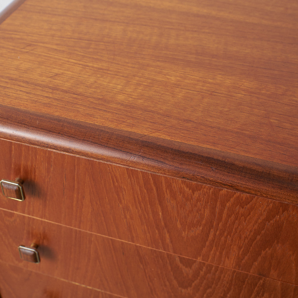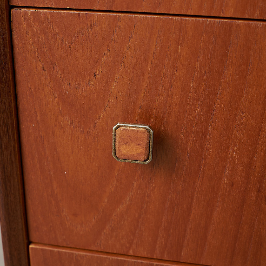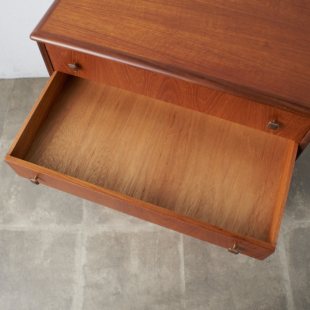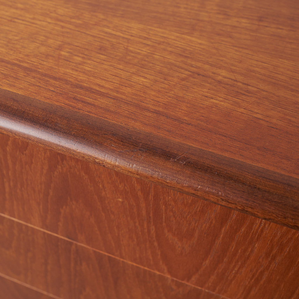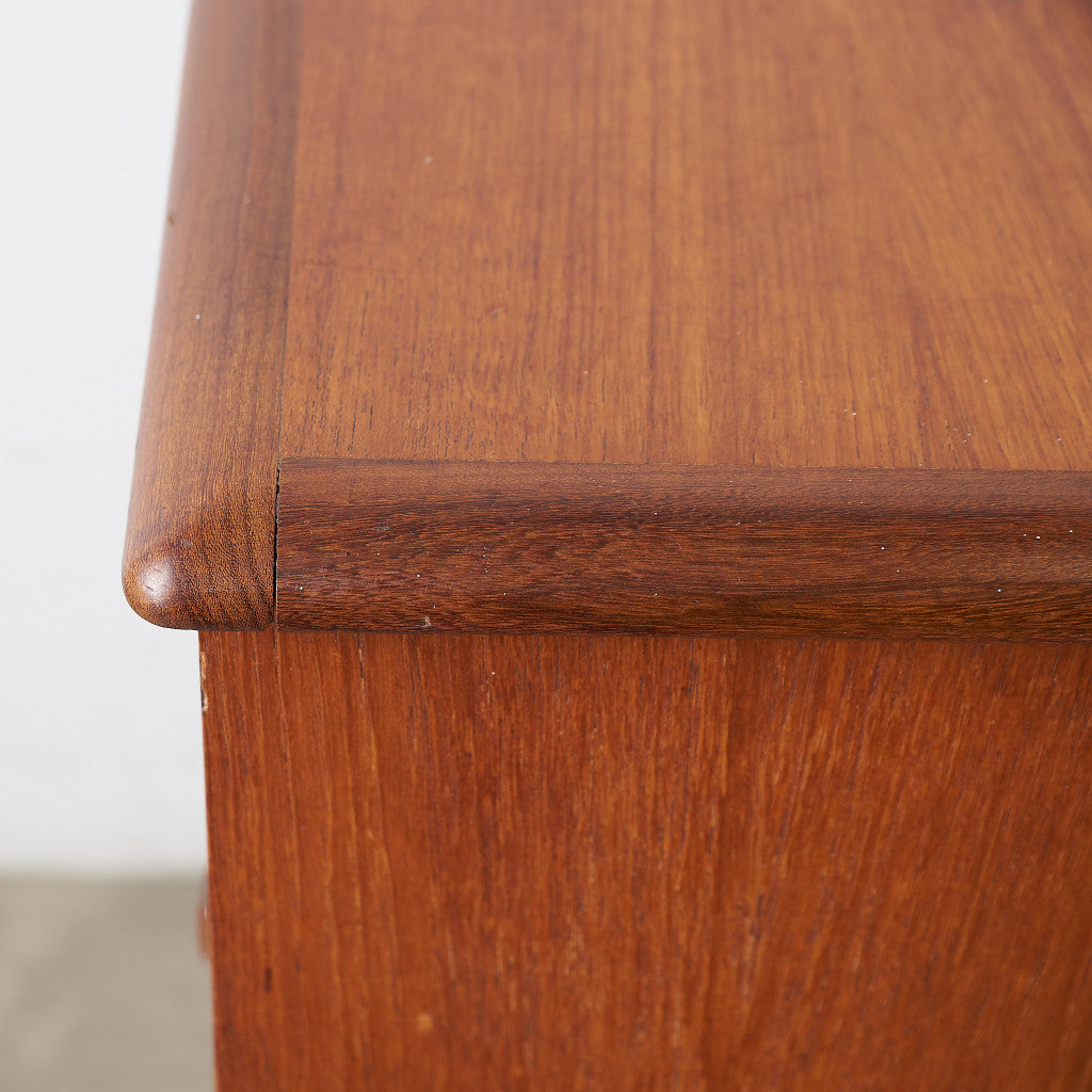 デンマークスタイルのデザインをルーツに、独自のアレンジが施されたヴィンテージチェスト。今では希少な高級材チークを使用した褐色の木肌が印象的です。