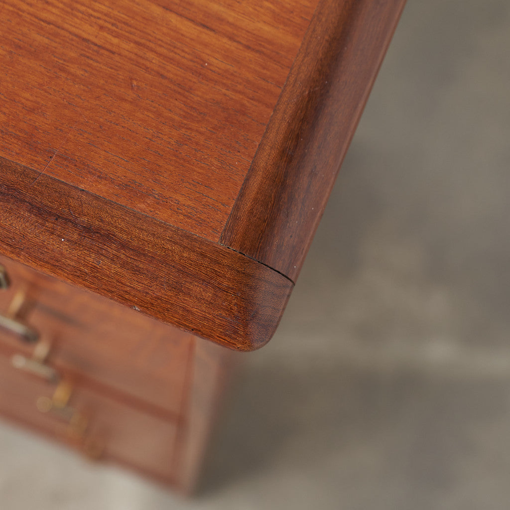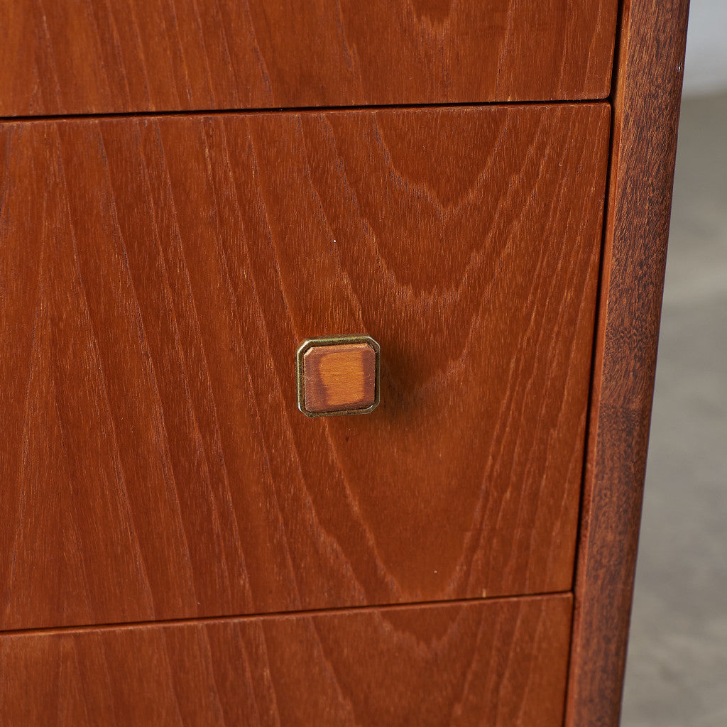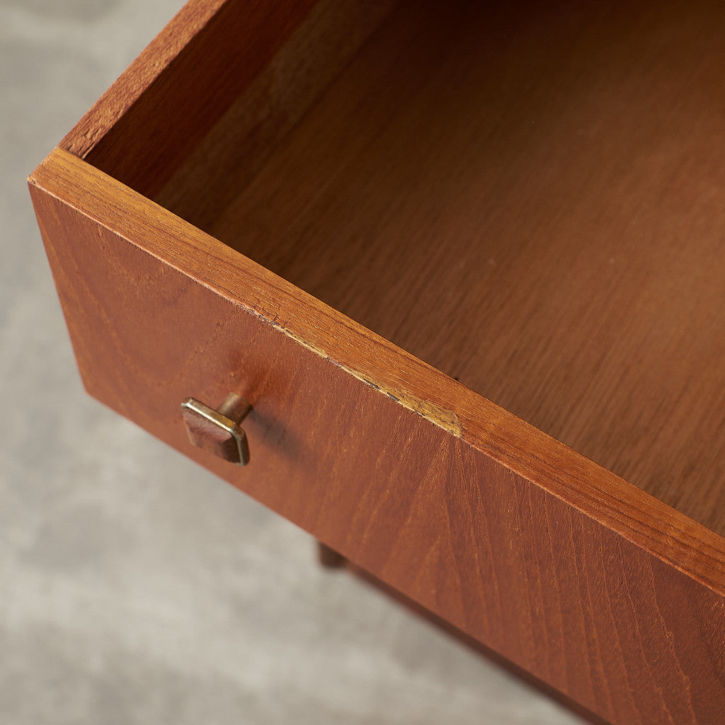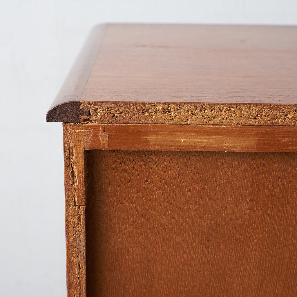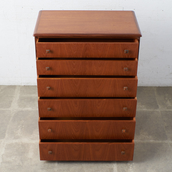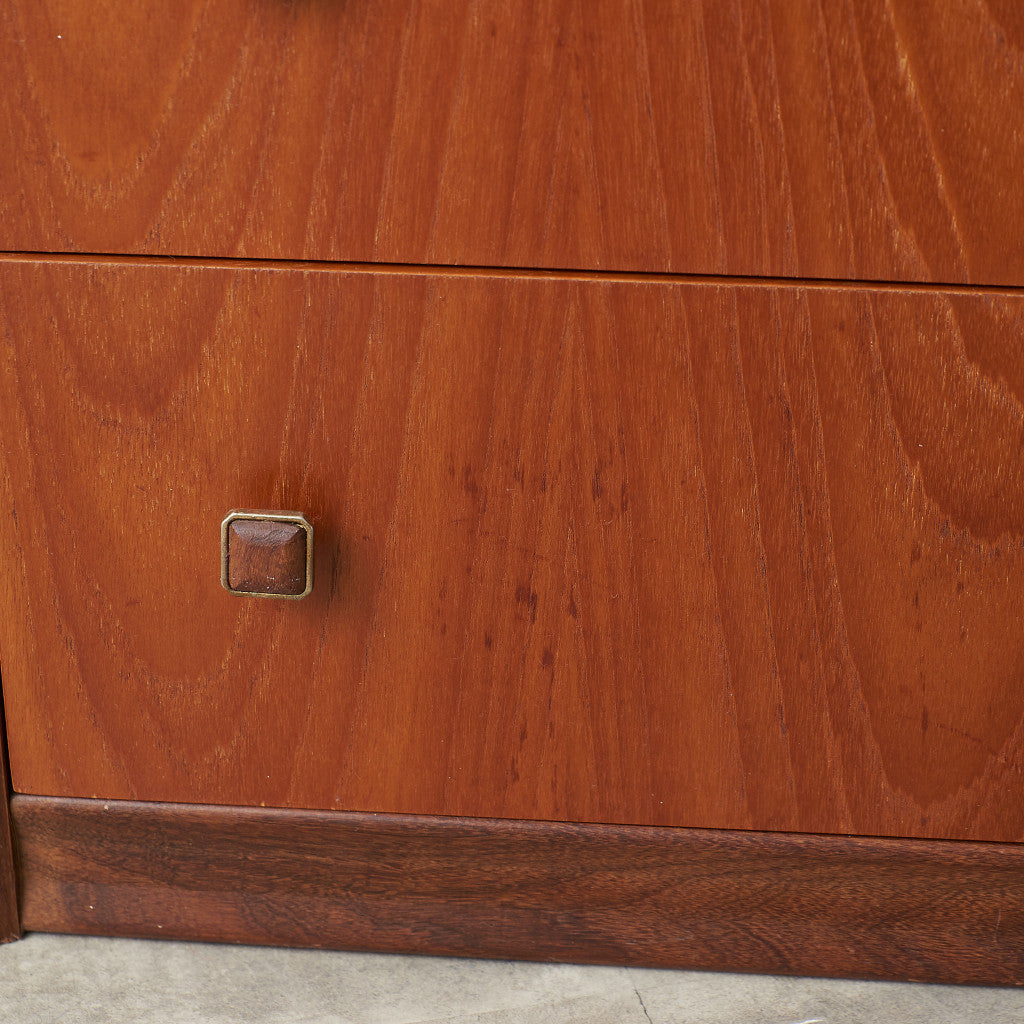 デンマークスタイルのデザインをルーツに、独自のアレンジが施されたヴィンテージチェスト。今では希少な高級材チークを使用した褐色の木肌が印象的です。