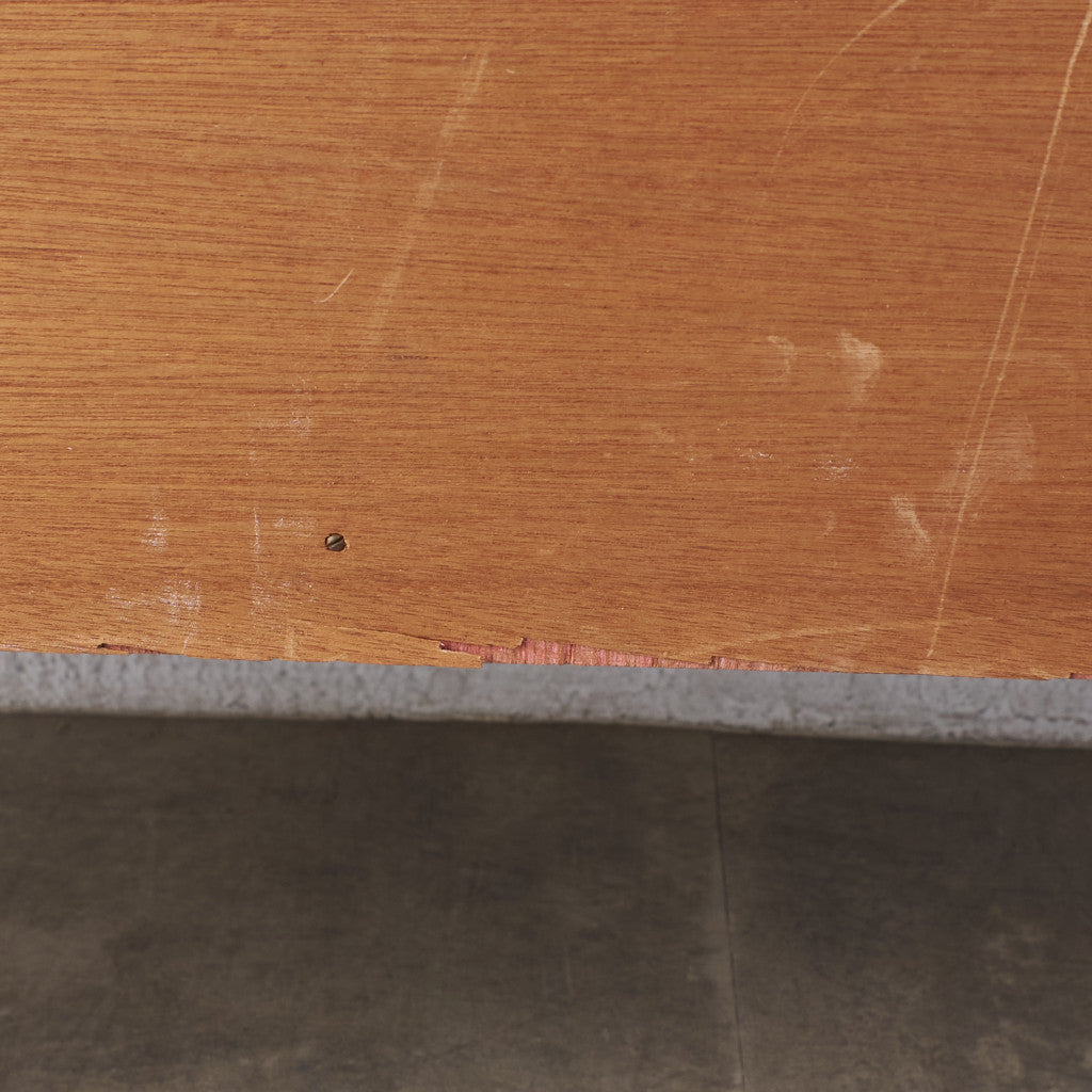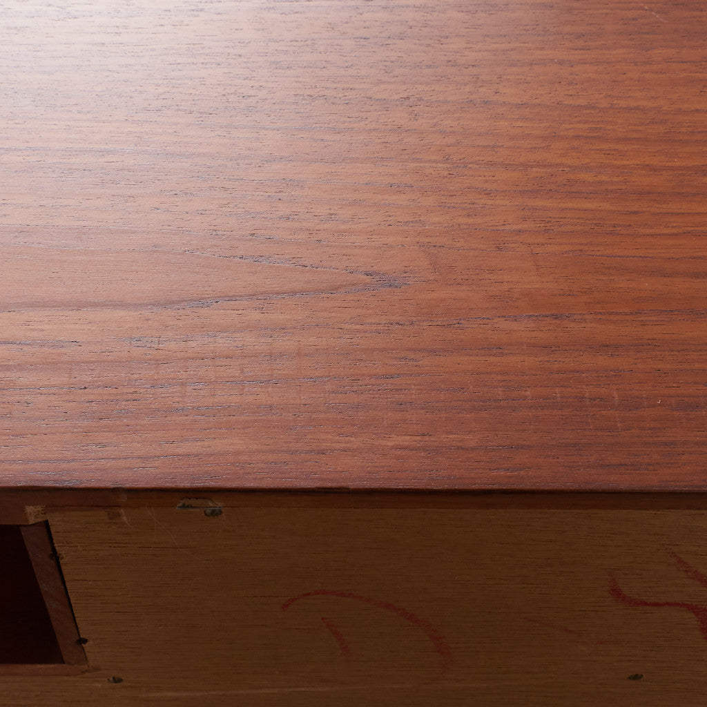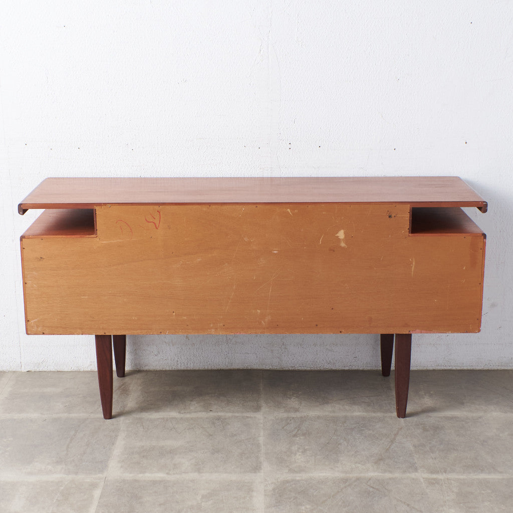 初期のフレスコシリーズドレッサーから脚が変更されたリファイン版、本来は可動式のミラーを備えたドレッサーとしてデザインされていますがミラーを排してデスクとしても利用されています。充実した収納スペースとバランスの取れたデザインが美しい一品です。