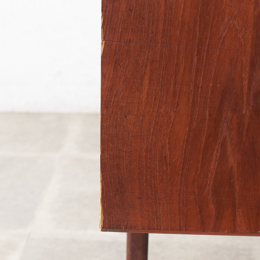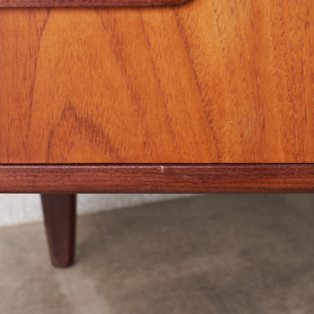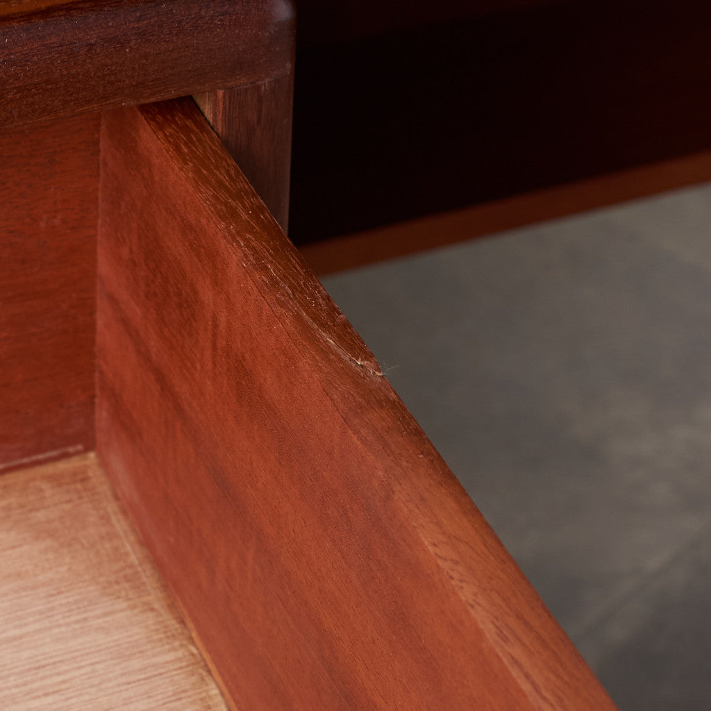 初期のフレスコシリーズドレッサーから脚が変更されたリファイン版、本来は可動式のミラーを備えたドレッサーとしてデザインされていますがミラーを排してデスクとしても利用されています。充実した収納スペースとバランスの取れたデザインが美しい一品です。
