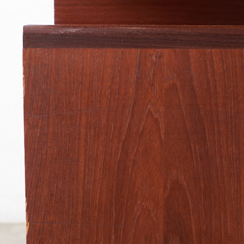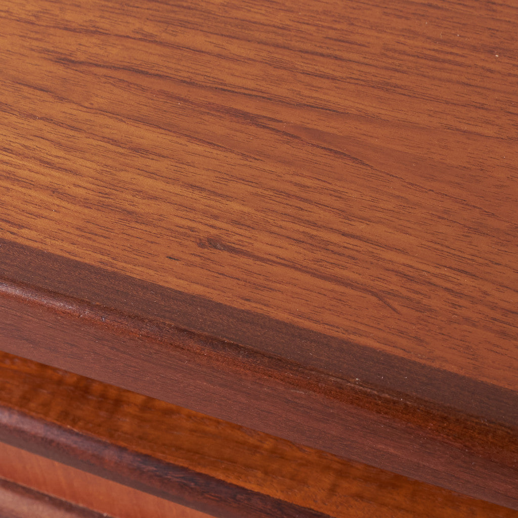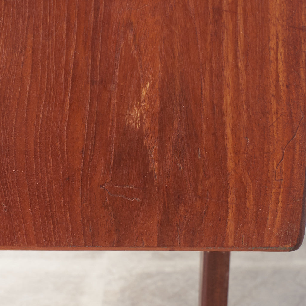 タイ北部からミャンマー産のチーク材は厳しい環境の中、ゆっくりと油分を蓄えながら育ち、鉄の防腐食作用、耐水、防腐、防虫作用が強く、収縮率が少なく木肌も詰まって美しい為、ブラジリアンローズ、ホンジュラスマホガニーと並ぶ世界三大銘木のひとつとして珍重されてきました。この地域のチーク材は「巻き枯らし」と呼ばれる3~5年をかけて立木のまま水抜きをする特殊な伐採手順を踏んでおり非常に素直な加工に適した木質となっています。また、この手順から(ドライチーク)とも呼ばれています。北欧家具や高級家具の素材として使われてきたチーク材ですが、現在は個体数が激減し極めて稀少価値の高い存在となっております。現在流通するチーク材は人工栽培されたインドネシア、ジャワ産の「インドネシアチーク」が主流になっていますが、成長がはやく若木のうちに伐採されるため、木目の美しさや耐久性に劣ります。