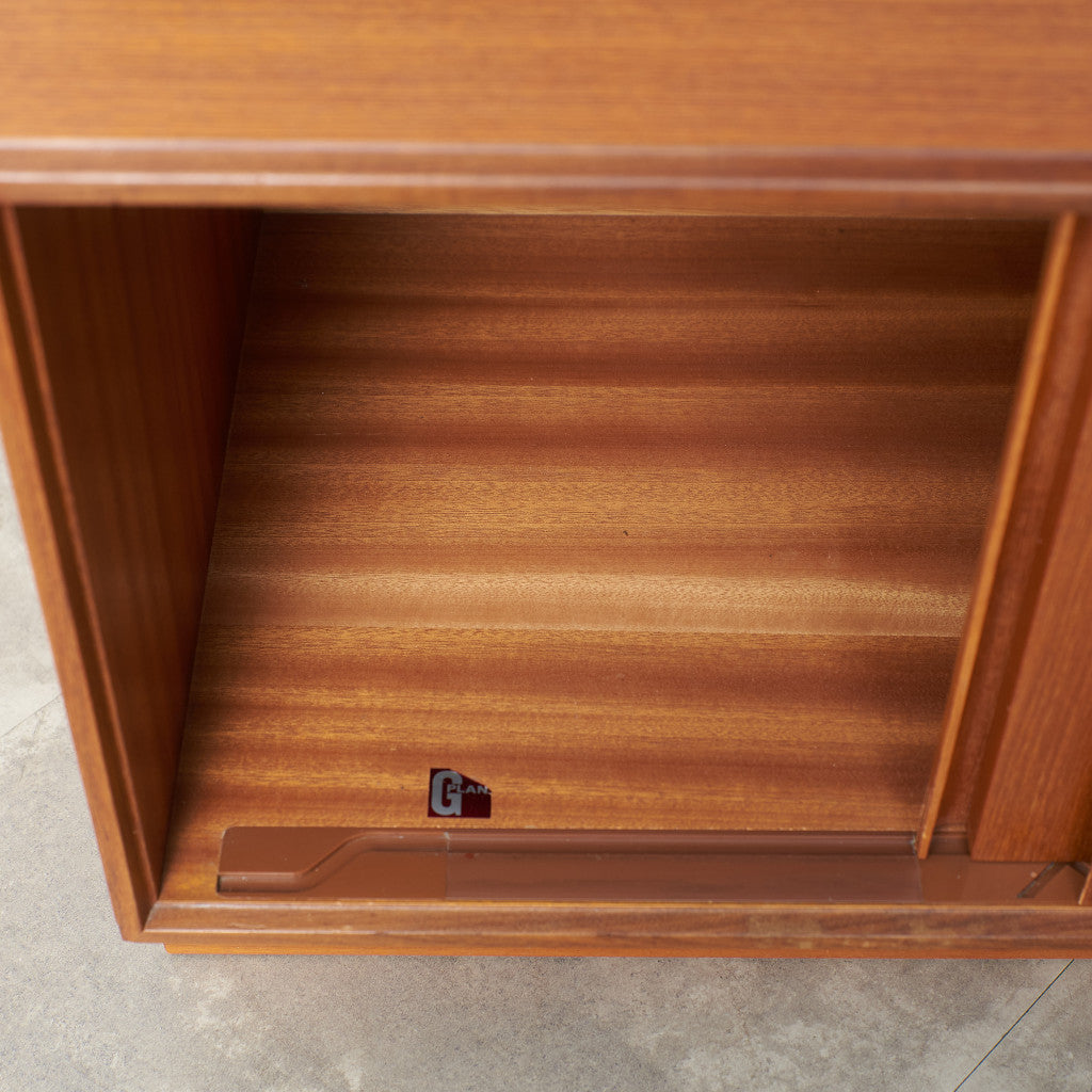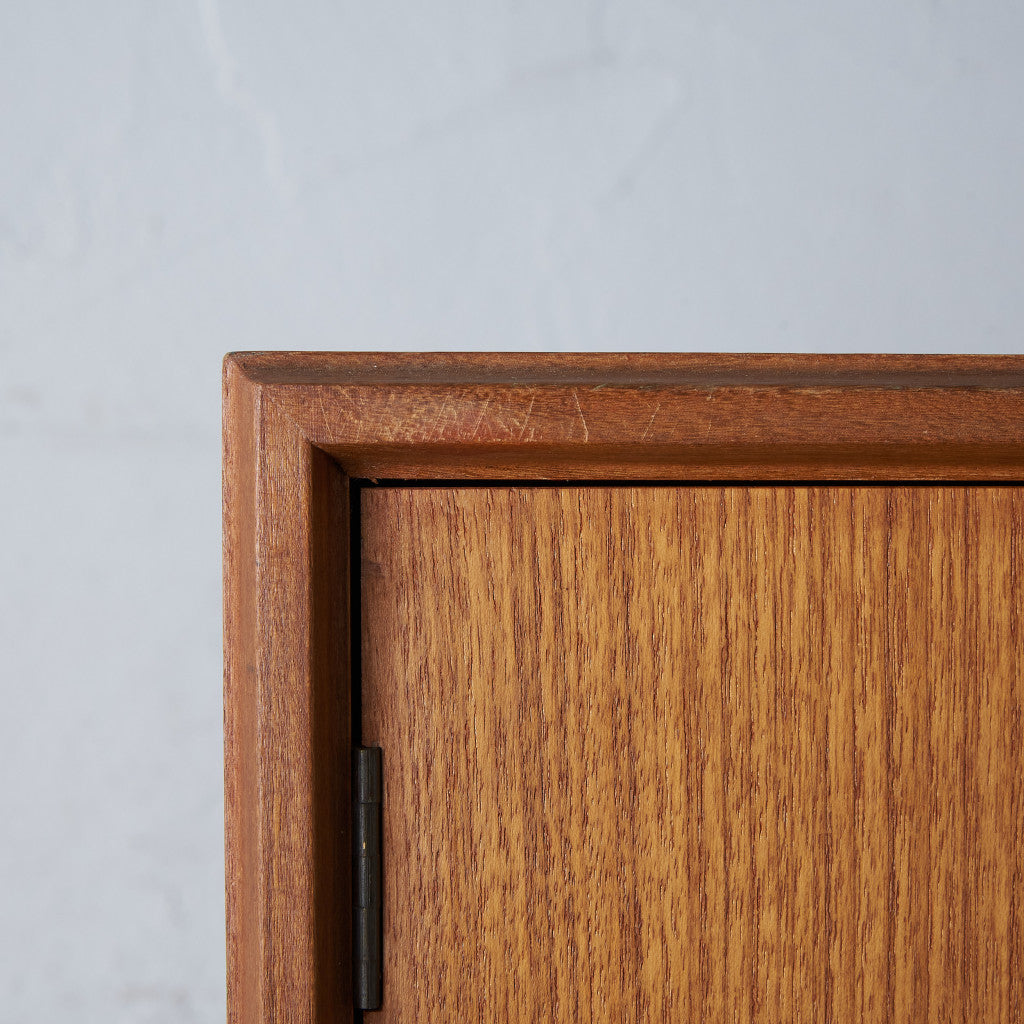 1967年に発表されたRoger BennettデザインのForm FIVE。直線を基調としたシンプルなデザインで、かっこよく洗練された佇まいが魅力です。取っ手が無い、よりシンプルなデザインと、堅牢な正方形の真鍮製ハンドルがアクセントの取っ手付きデザインの2パターンが存在します。※取手無し仕様のキャビネット引扉は閉めている時、2枚の扉が段差なしでフラットな面になる特殊なレール構造が採用されています。日本国内での流通は極少数なので、めぐり逢うことが大変困難な希少なお品です。
