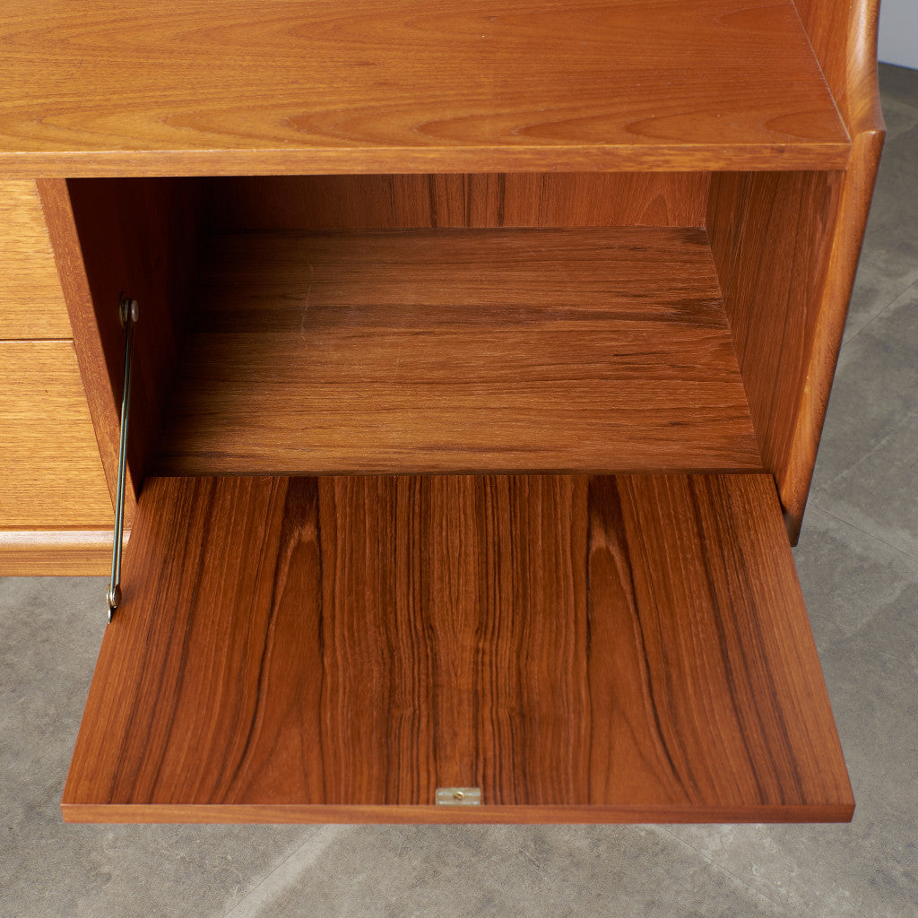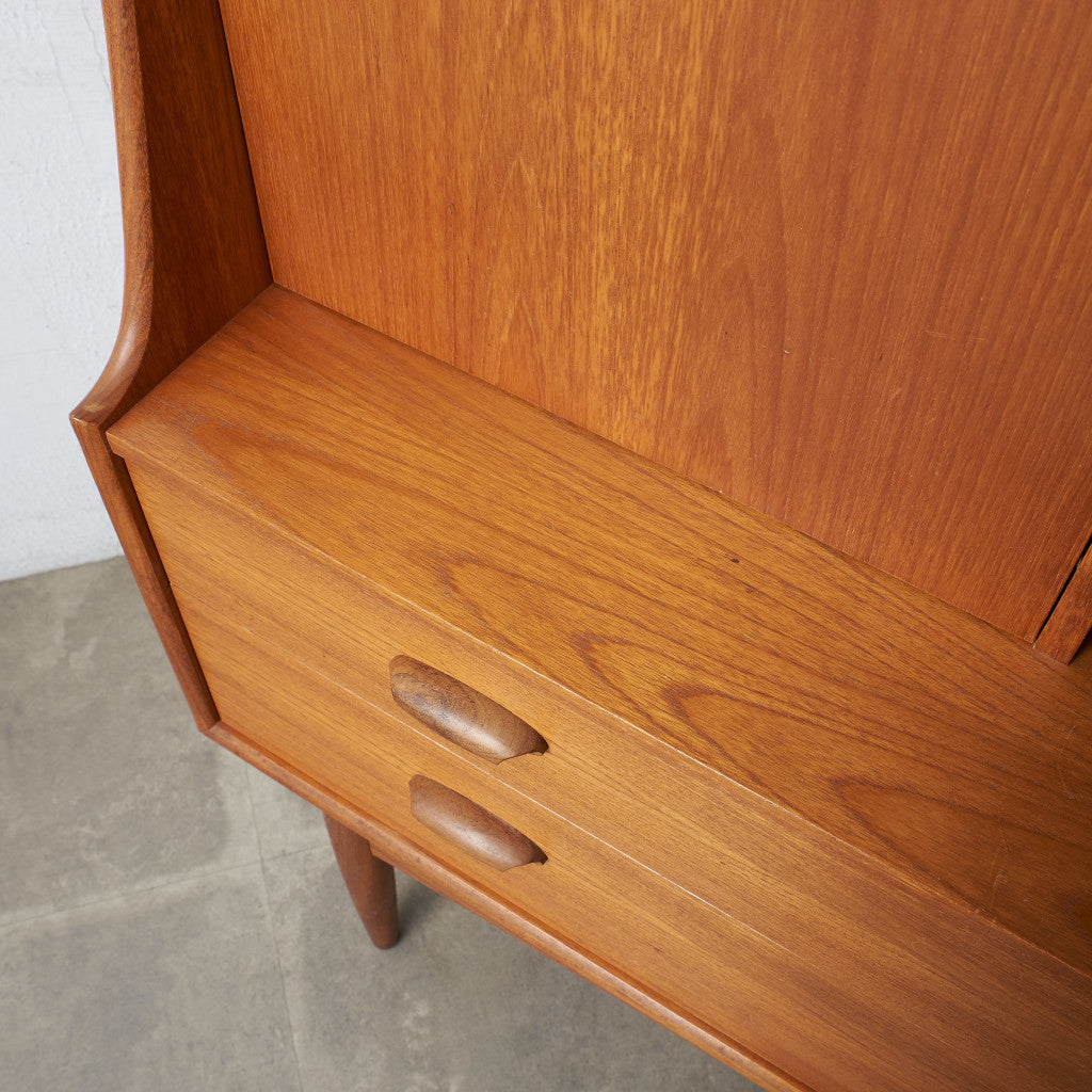 ブラジリアシリーズの中でも人気の高いハイサイドボード。一般的なサイドボードより背の高いハイタイプで、大容量の収納を備えています。開閉式のデスクスペース(ビューロ)、オープンな収納スペースがあるのでディスプレイも楽しむことができ、食器棚、リビングの補助収納、書斎の本棚兼デスクなど、様々な用途に合わせお使いいただけます。艶のある無垢材で作られた巻貝のような削り出し取っ手、脚と脚をつなぐ緩やかなカーブが美しい貫のデザイン、スラリと伸びたテーパードの脚など、シンプルなデザインながら機能性と個性が光る名品です。