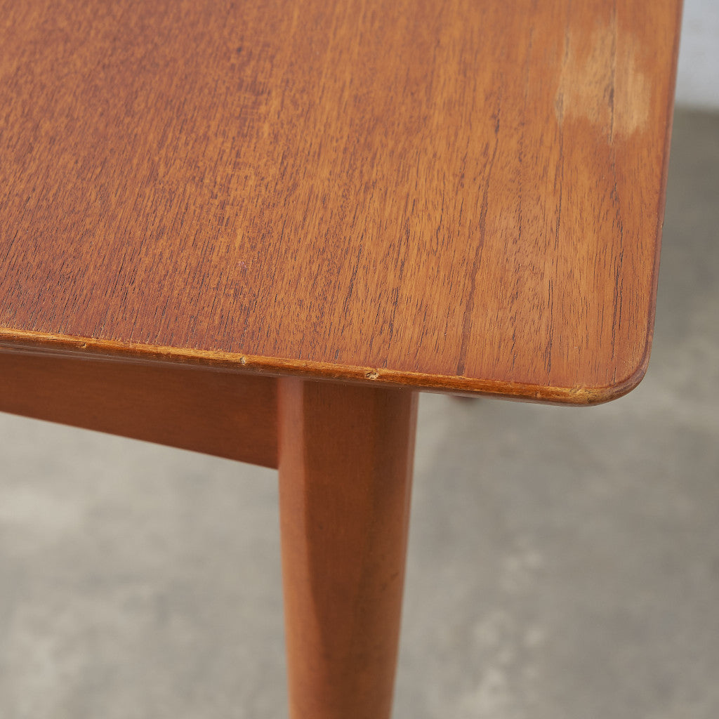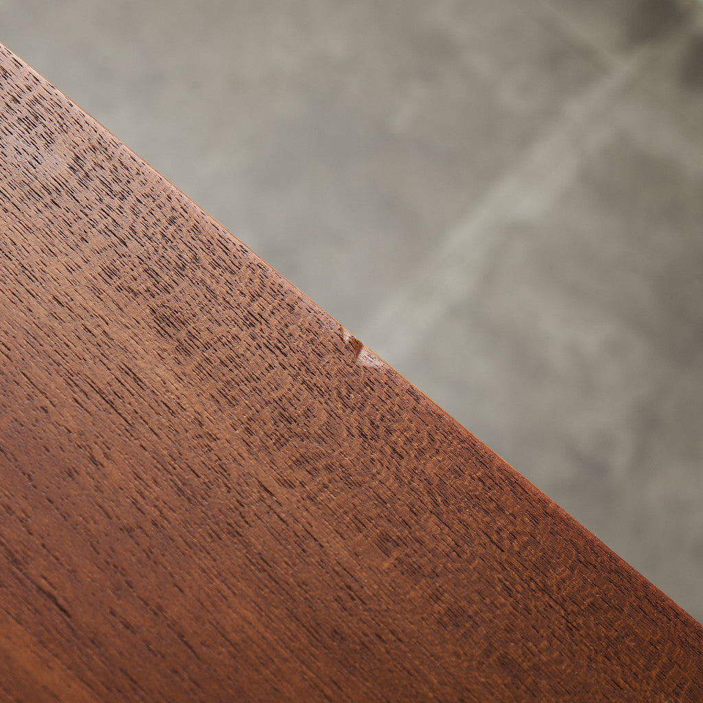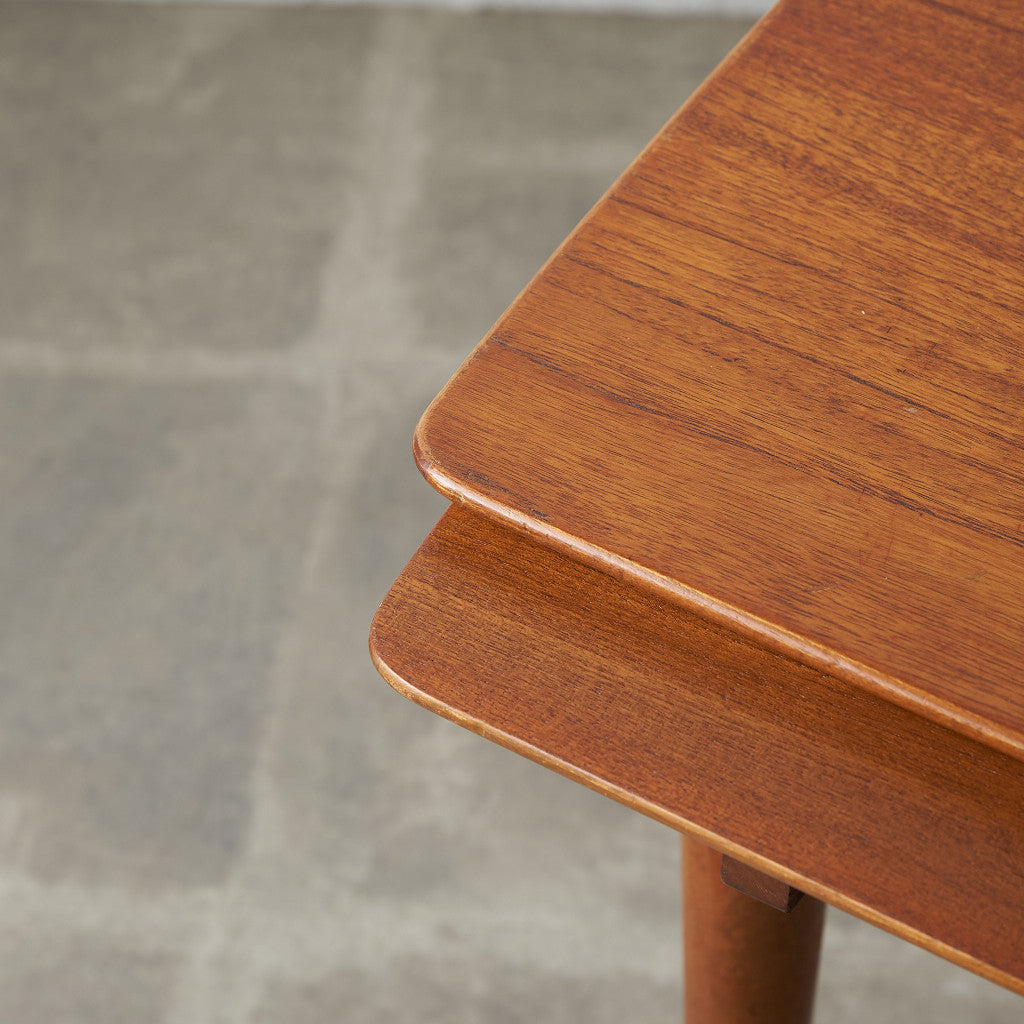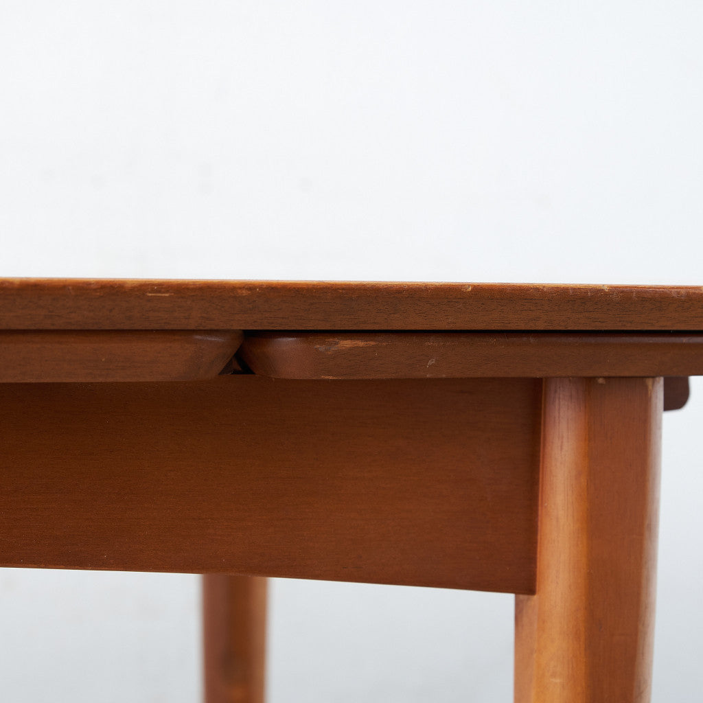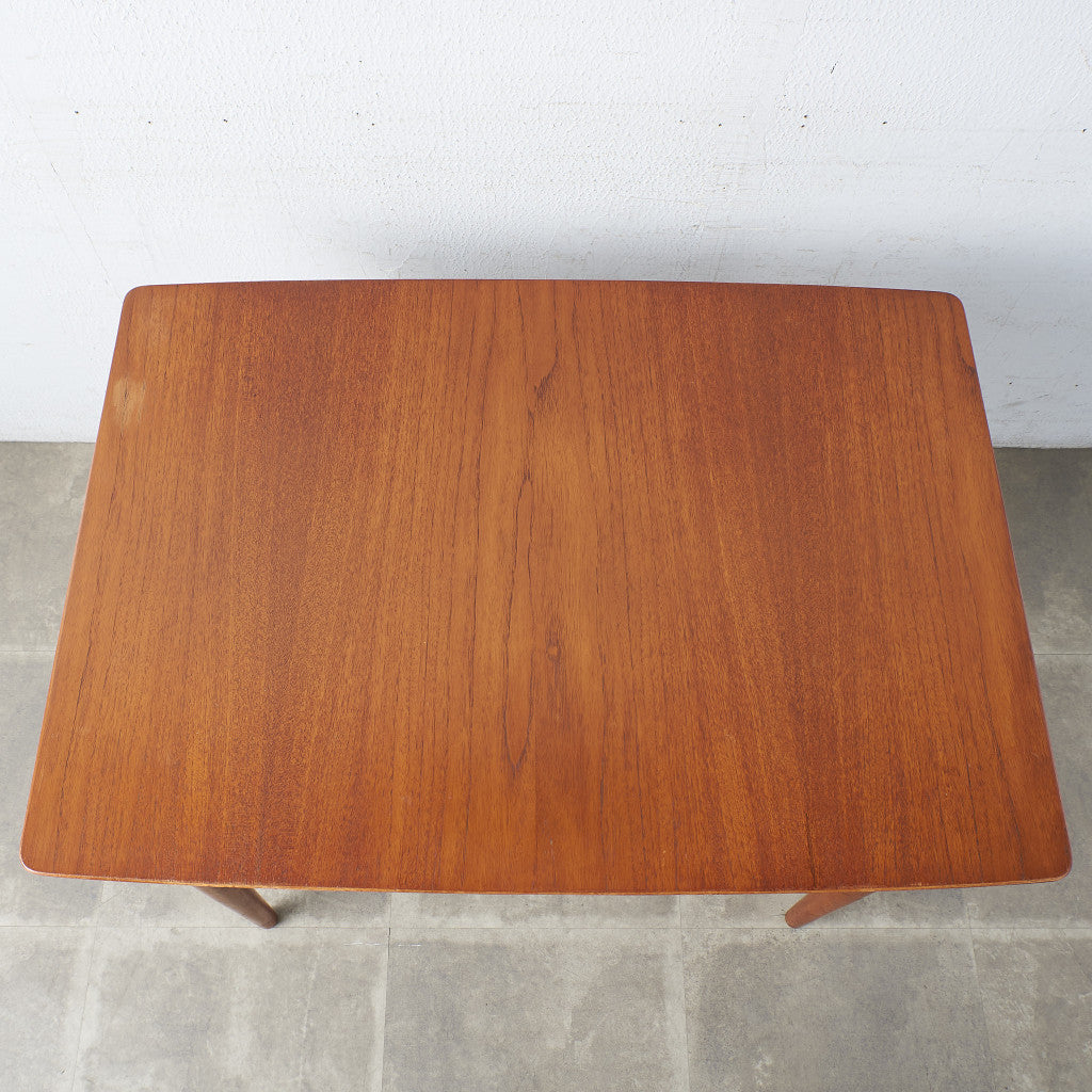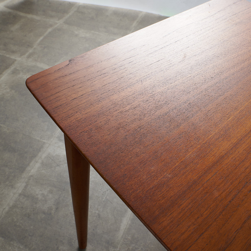 天板下に収納された副天板を両サイドからスライドさせることでテーブルの上はそのままに簡単にサイズの拡張が可能なドローリーフテーブルです。片側天板だけを引き出して使うなど、必要に応じて便利にお使いいただけます。普段は2人〜4人用、来客時などは天板をさっと広げて6人用としてもお使いいただけます。実用的でありながらも作り手のこだわりを感じさせる北欧の年代物とも相性の良いヴィンテージファニチャーです。