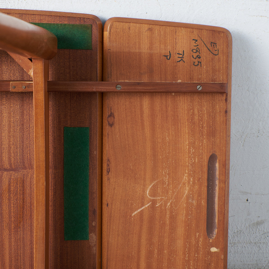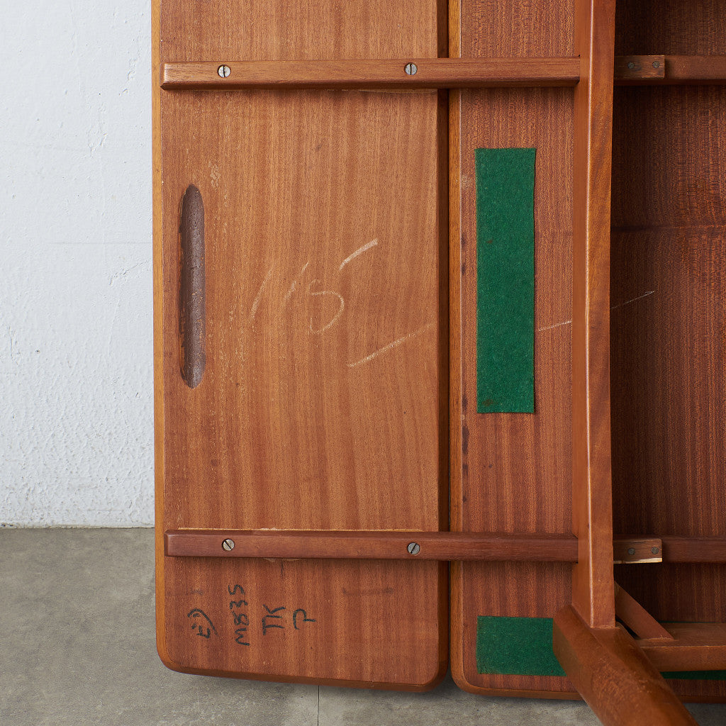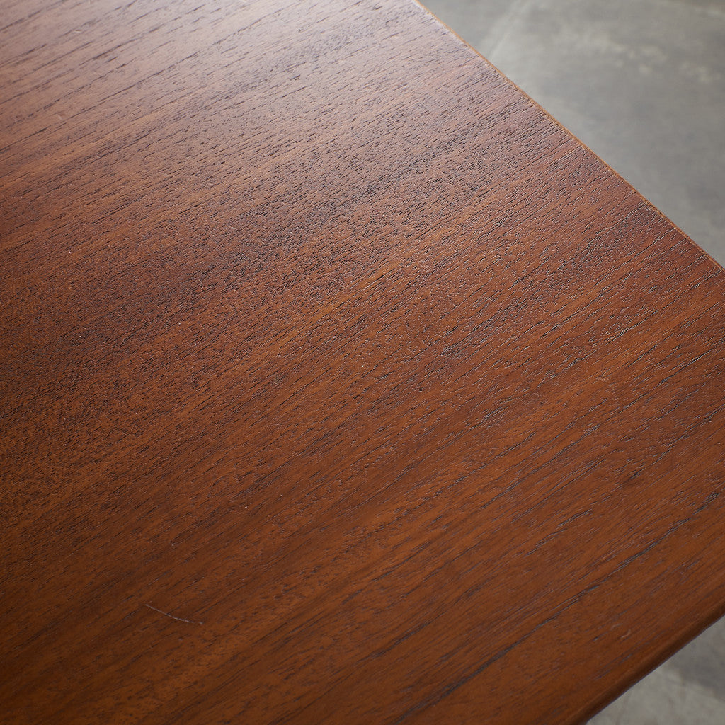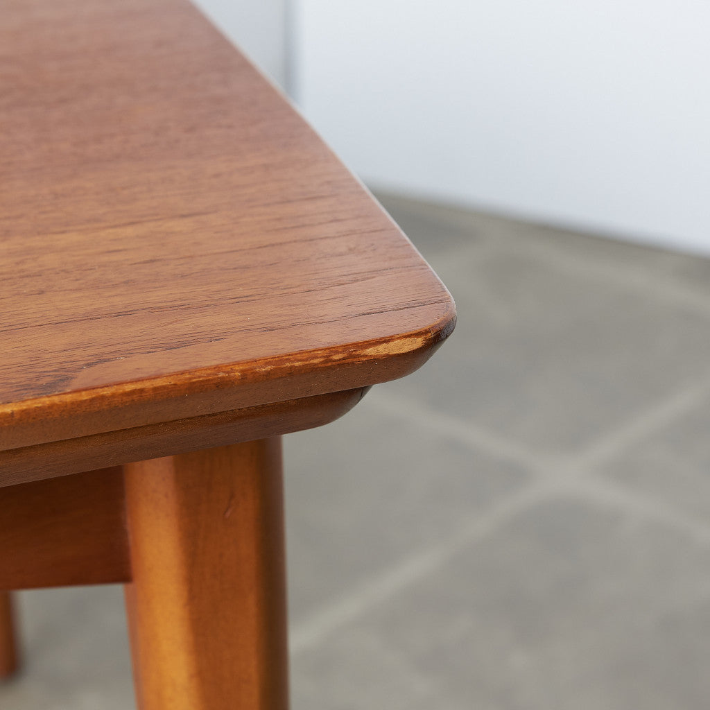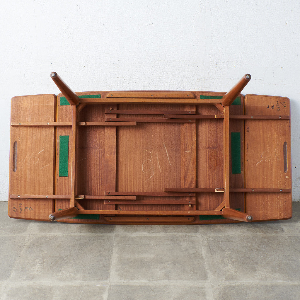 天板下に収納された副天板を両サイドからスライドさせることでテーブルの上はそのままに簡単にサイズの拡張が可能なドローリーフテーブルです。片側天板だけを引き出して使うなど、必要に応じて便利にお使いいただけます。普段は2人〜4人用、来客時などは天板をさっと広げて6人用としてもお使いいただけます。実用的でありながらも作り手のこだわりを感じさせる北欧の年代物とも相性の良いヴィンテージファニチャーです。