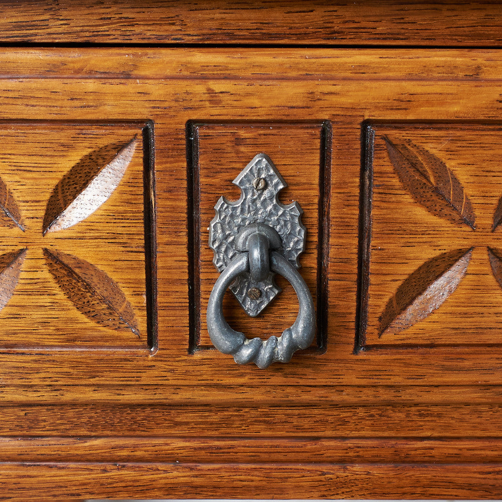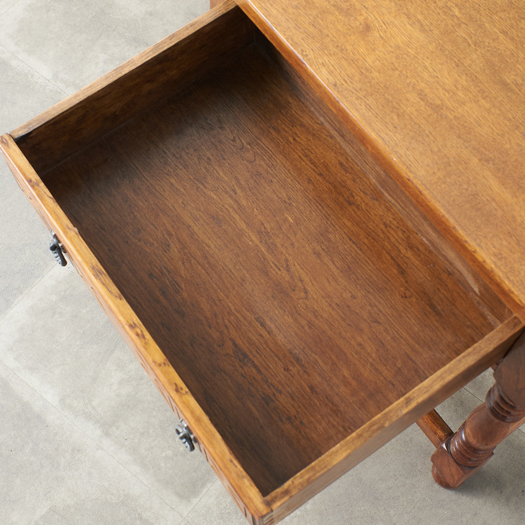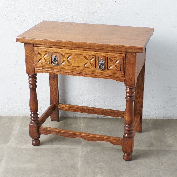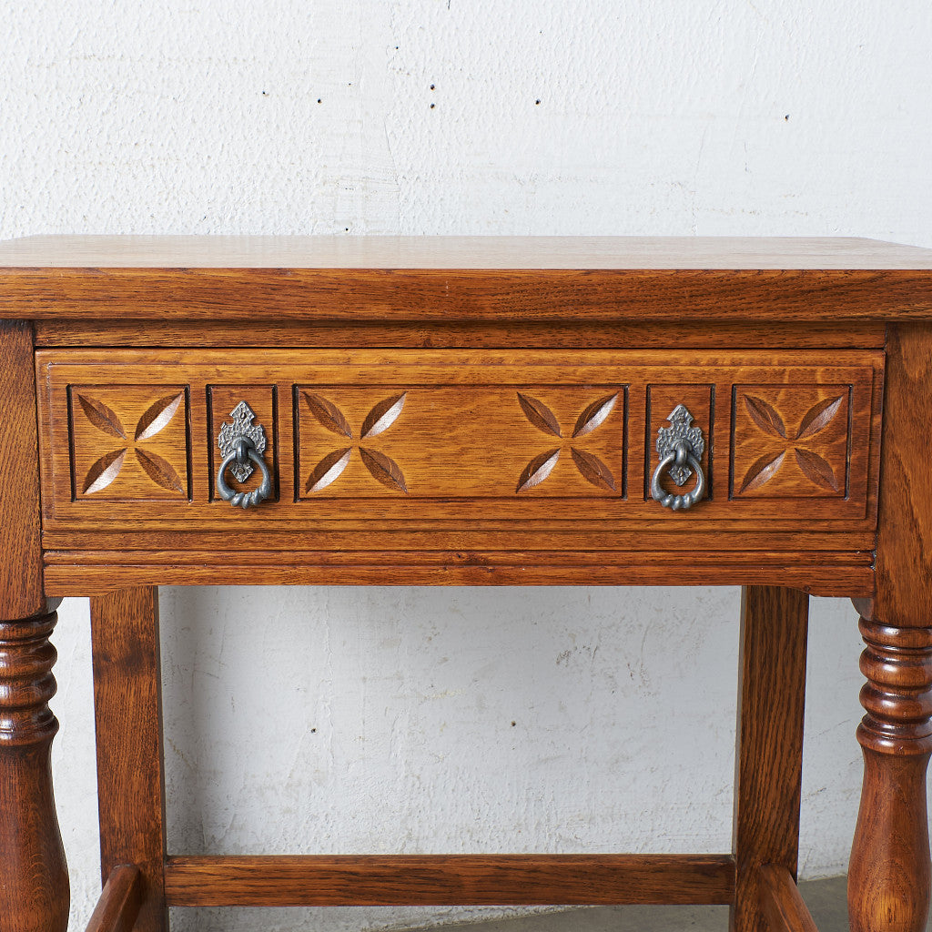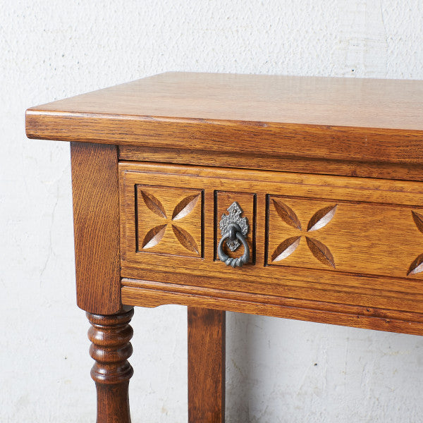 深みのあるオーク材を使用し、美しいディテールを随所に備えたコンソールテーブル。小物を収納するドロワーやサイドテーブルとしてお使いいただけます。