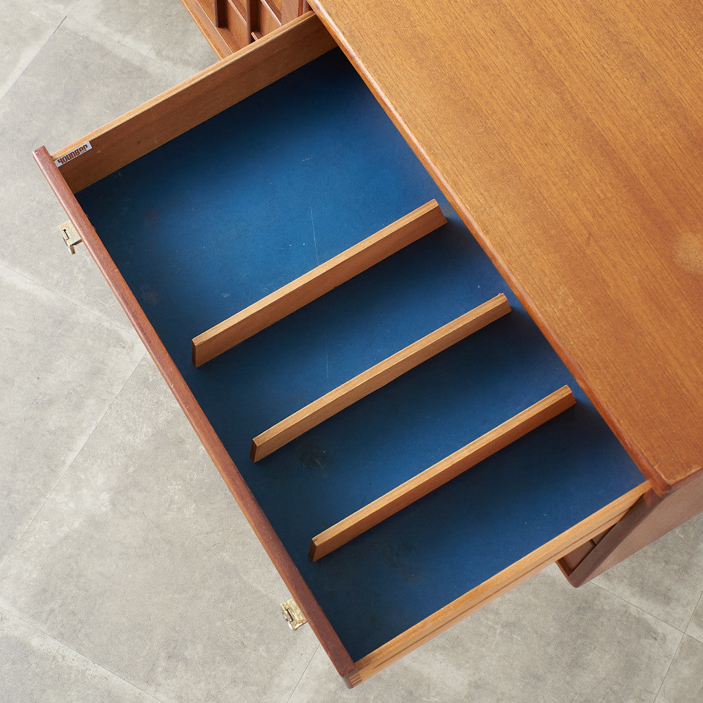 50年代〜70年代、英国のスカンジナビアスタイルブームを駆け抜けたブランド。デザインディレクターJohn Herbert(ジョン・ハーバート)によって高品質な品物を少量生産するスタイルで市場のトップエンドを目指しました。1960年代には家具メーカーギルドから3つの賞を受賞。質実共に英国ミッドセンチュリーを代表するトップブランドの地位を得ました。ヴィンテージ市場においてはG-PLANと比べ流通する数が少なく知名度は低いものの富裕層をターゲットに贅と技工を凝らした製品のクオリティは群を抜いています。