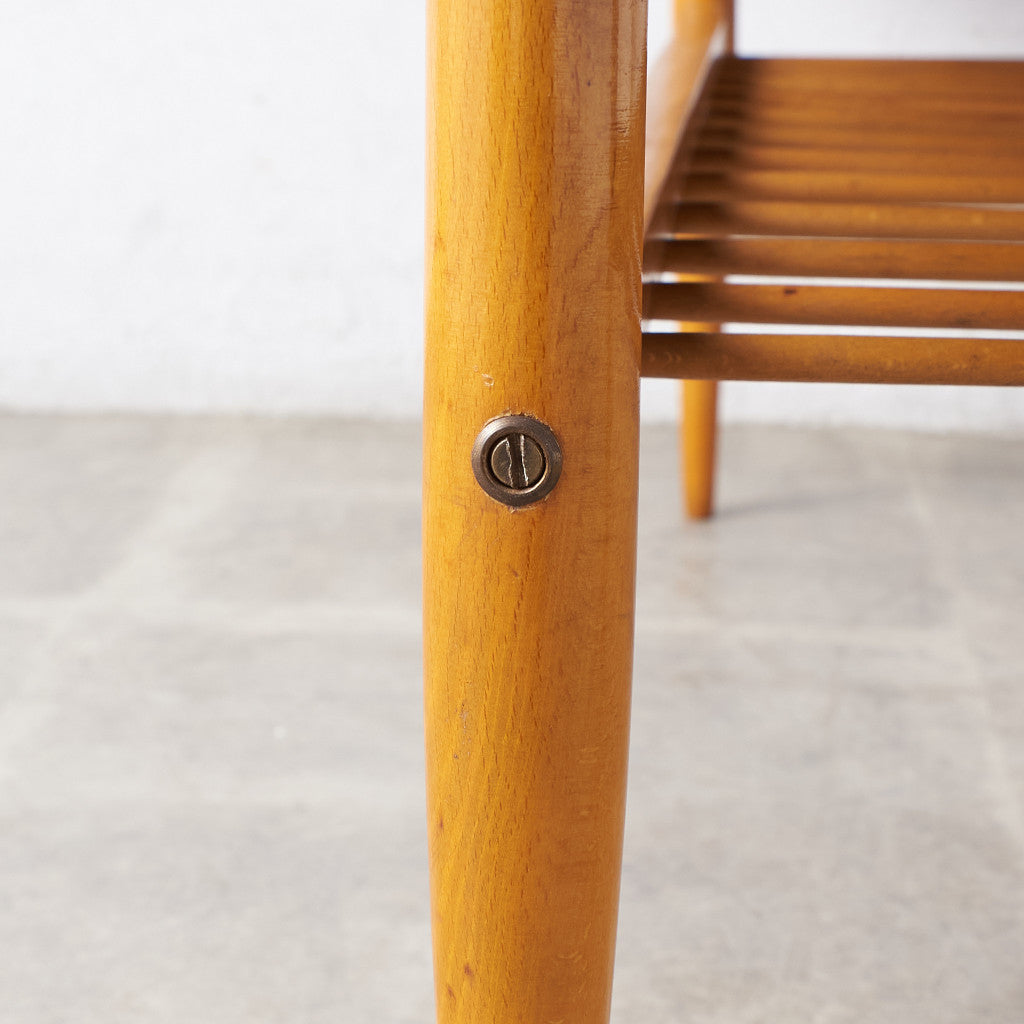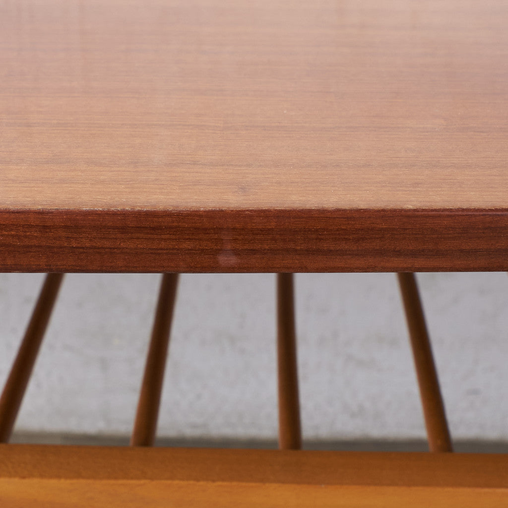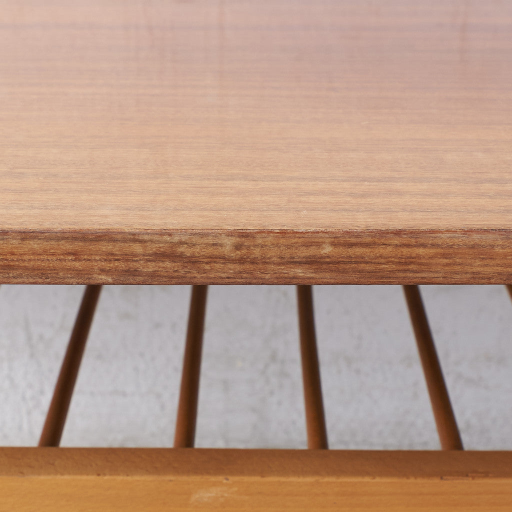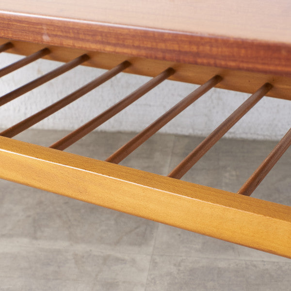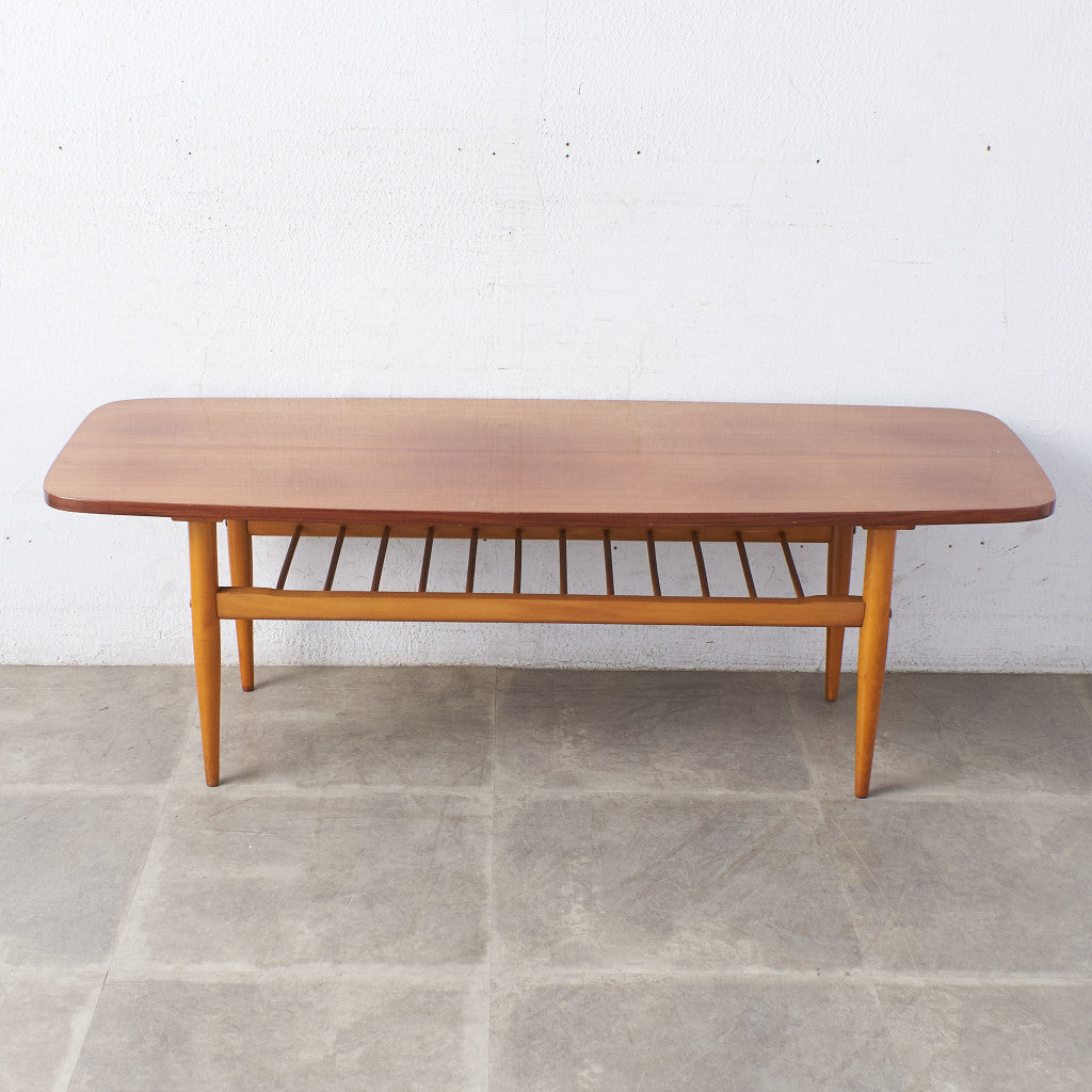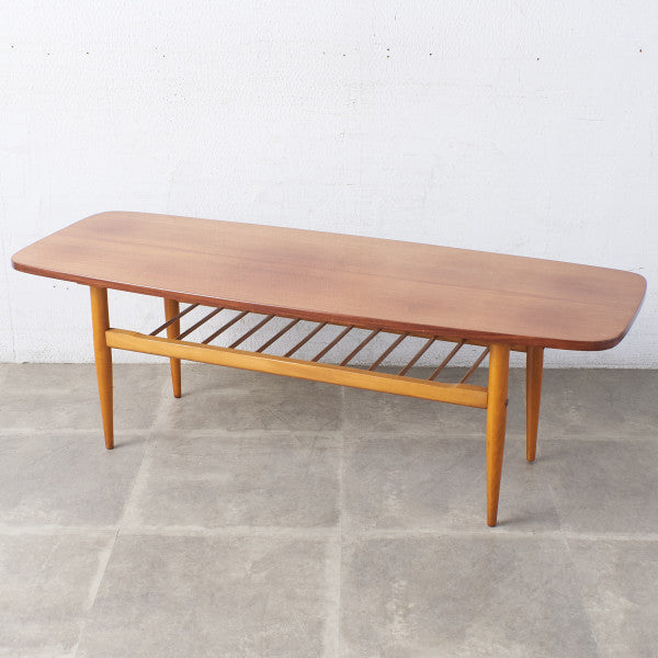 褐色の木肌が味わい深い一品。マガジンラック付きで便利にお使いいただけます。サイズ感も良く、コーヒーテーブルやサイドテーブルなどフレキシブルにお使い頂けます。北欧の年代物とも相性の良い上質なヴィンテージファニチャーです。