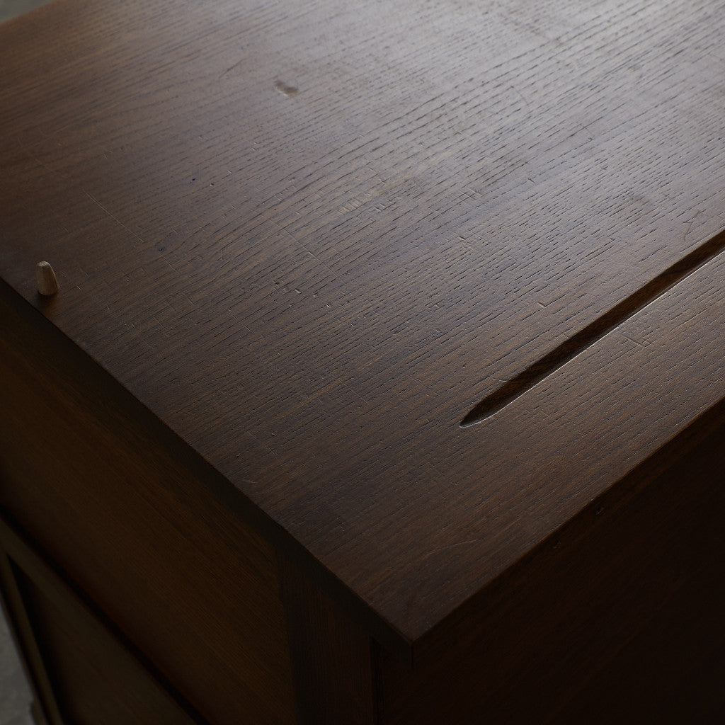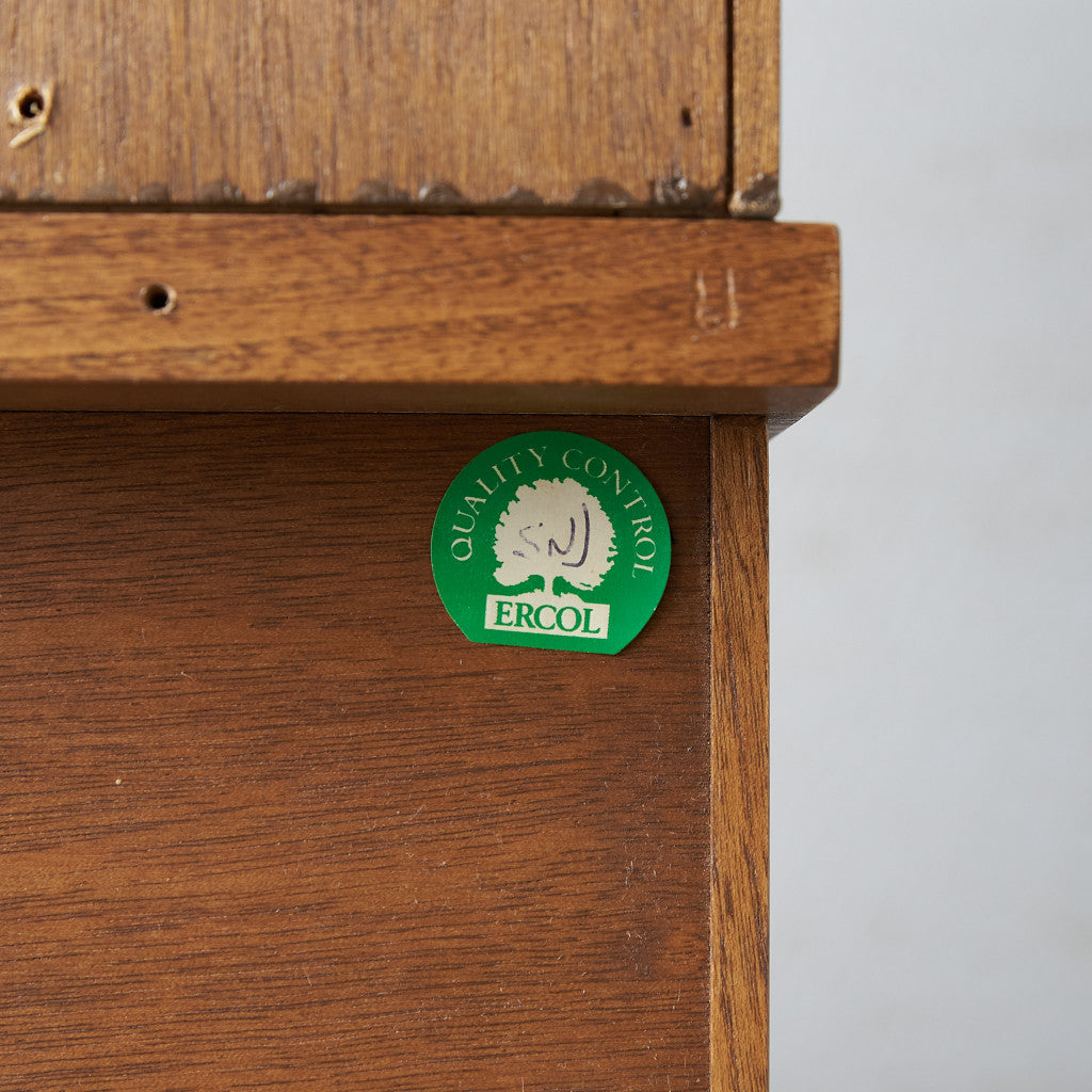 ERCOLの珍しいウォールキャビネット。スリム型なので使い勝手が良く、デッドスペースを有効活用できます。幅狭な反面、高さがあるので収納力も豊富に備えており、実用性充分です。作り込みの取っ手がチャームポイントになった上質な一品は、アーコールデザインと温かい木肌が優しいムードを漂わせます。