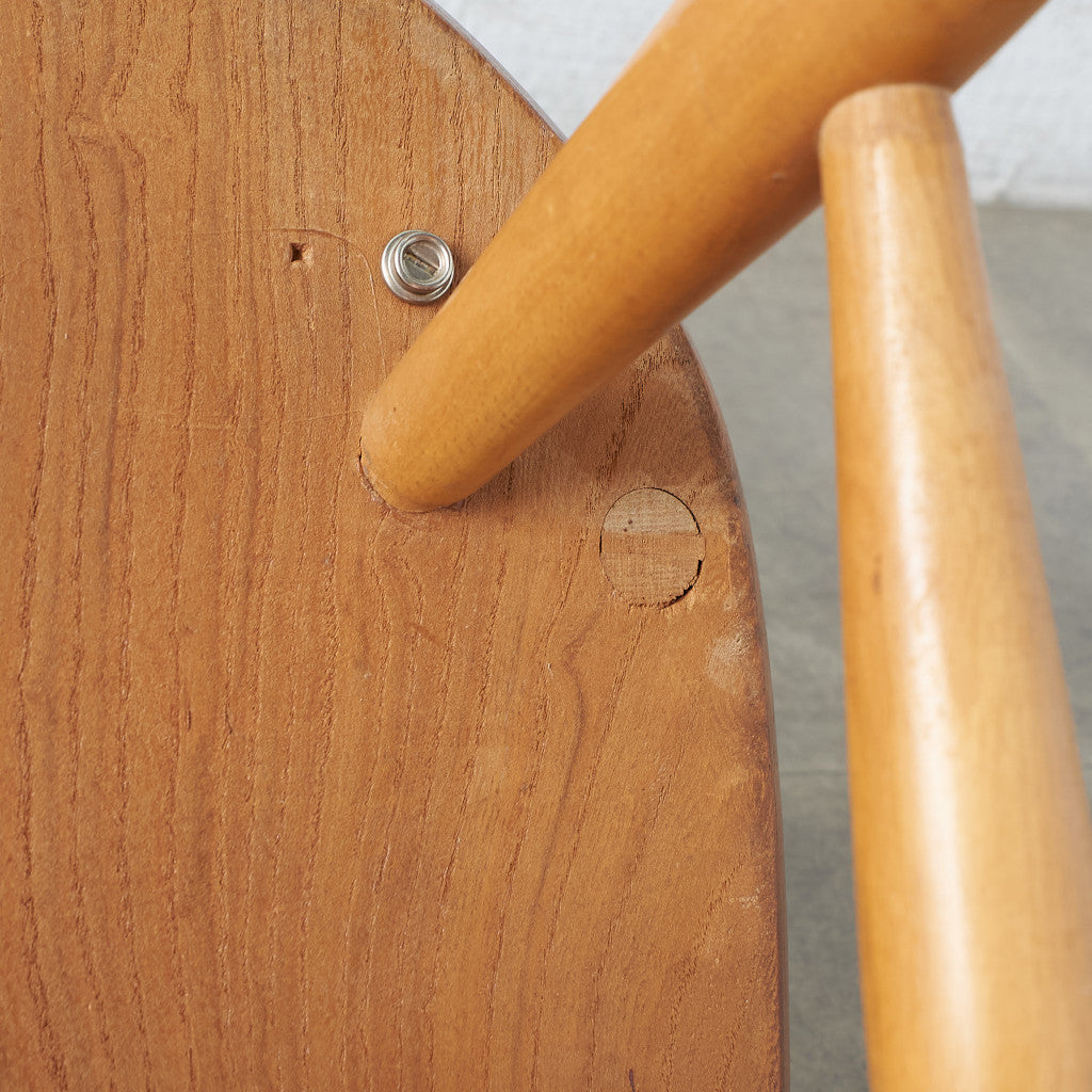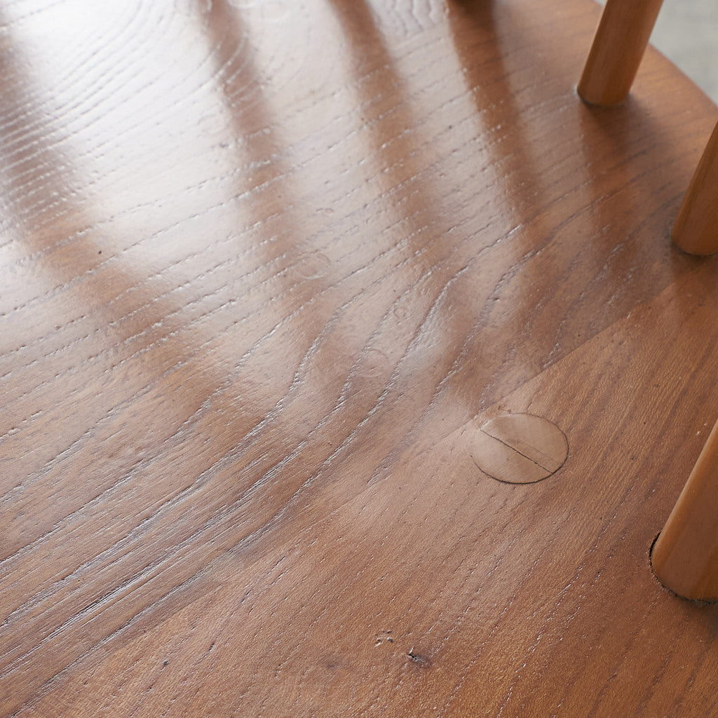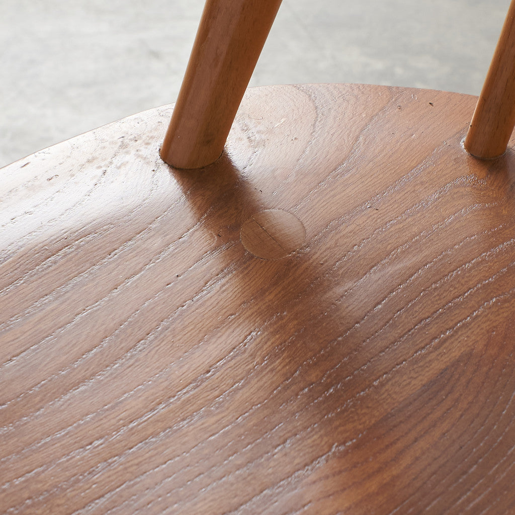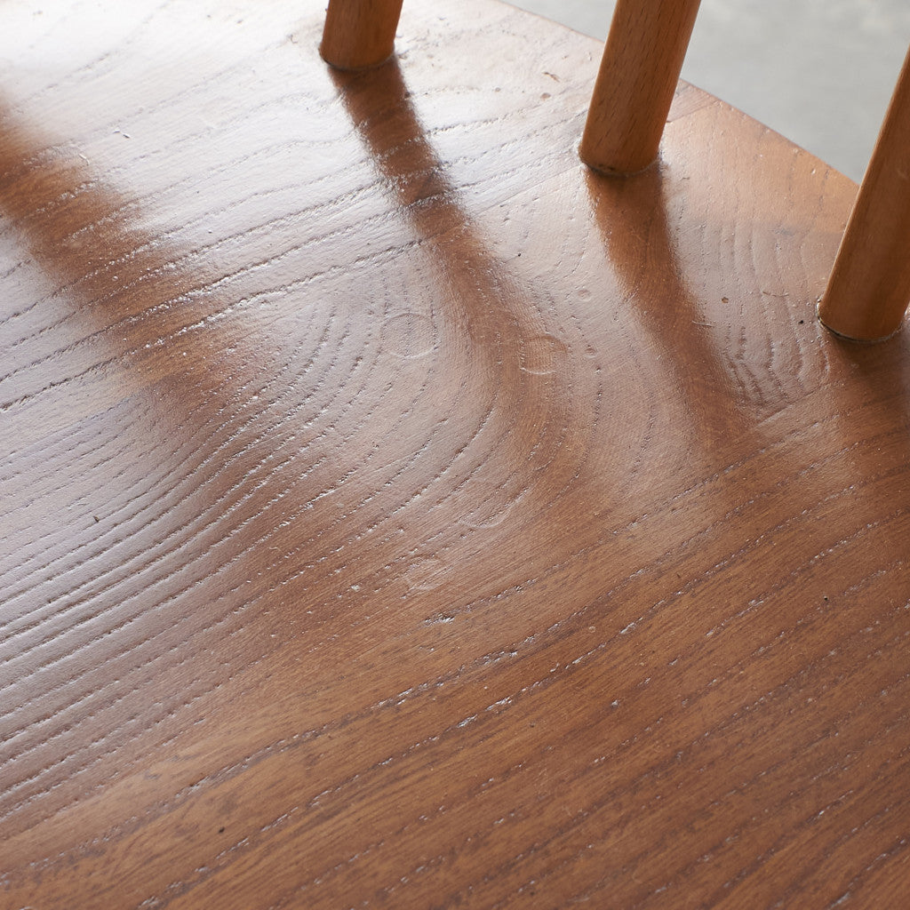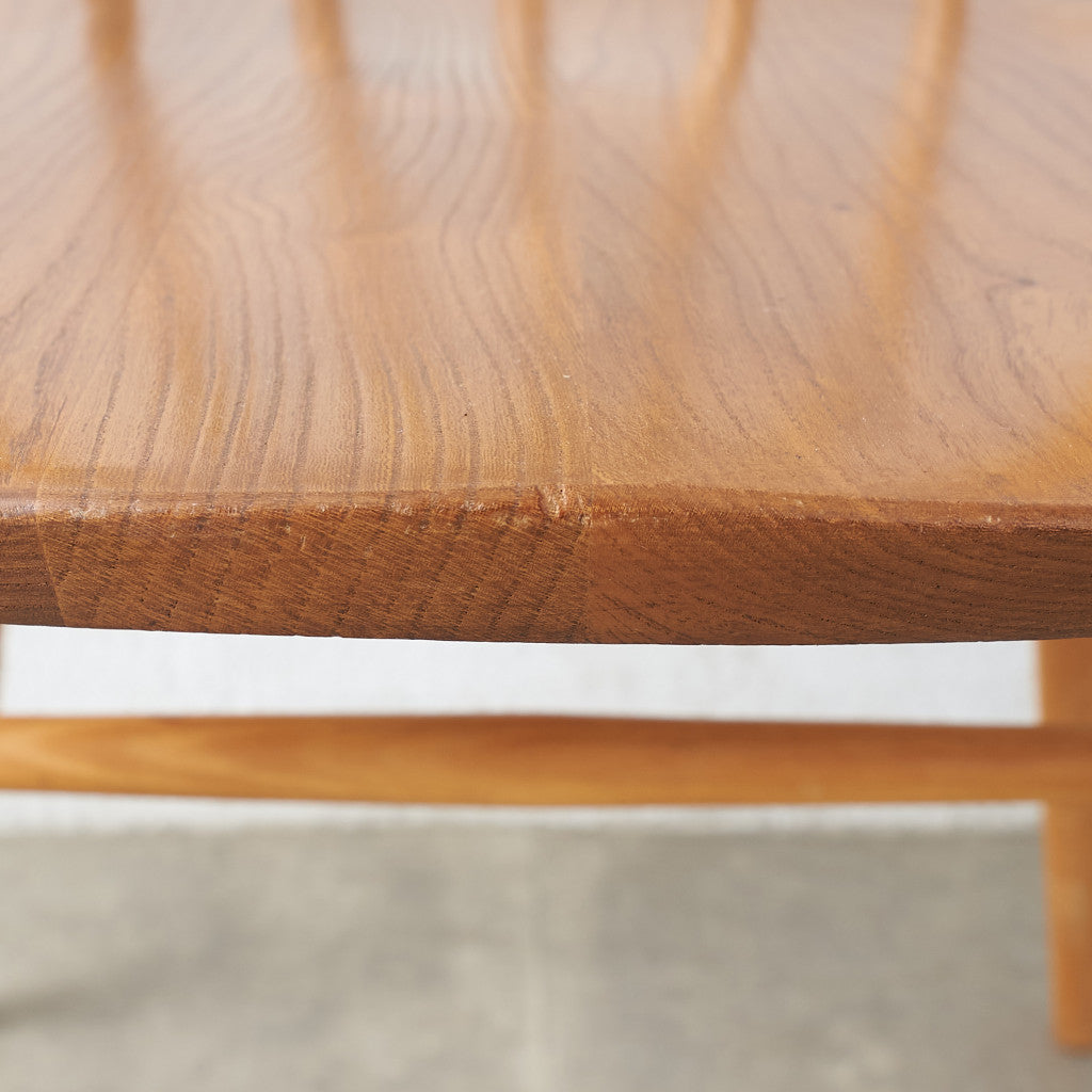 伝統的なウィンザーボウバックチェアをリデザインしたシャープな背面のシルエットが印象的なクエーカーチェア。曲げ木加工による美しい一本の曲線が形作る独特のフォルム。背もたれが高く、ゆったりと寛げる座り心地のよい設計で、アーコールの中でもロングセラーのデザインです。復刻品とヴィンテージ品で背もたれのスポークの数が異なり現行品は6本、ヴィンテージ品は5本となります。うねったような木目が印象的なエルム材座面仕様はヴィンテージ品のみです。