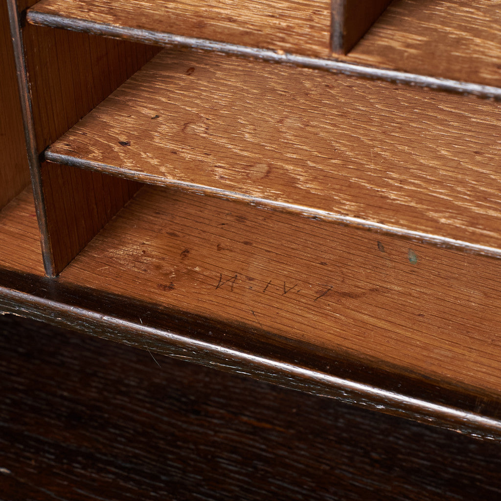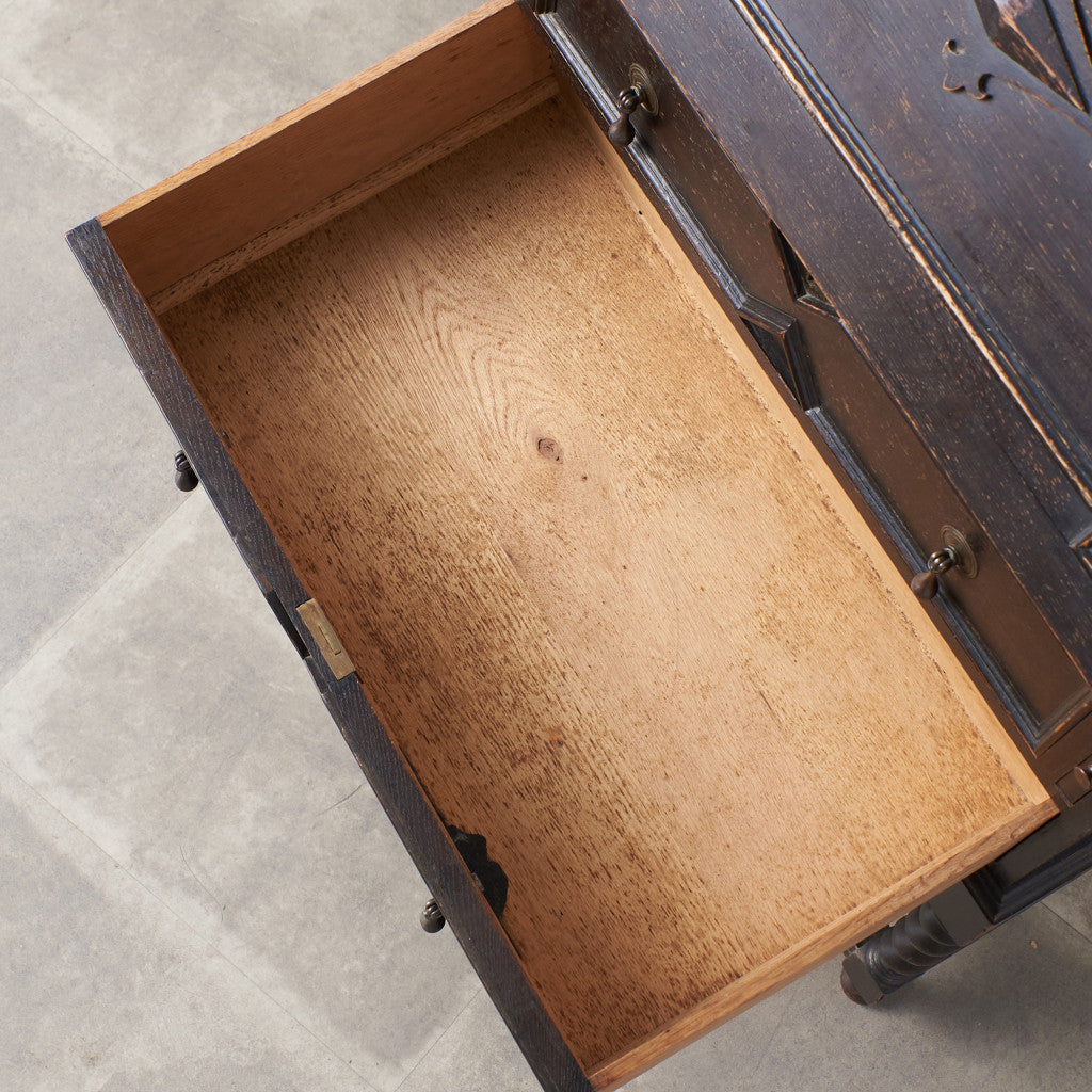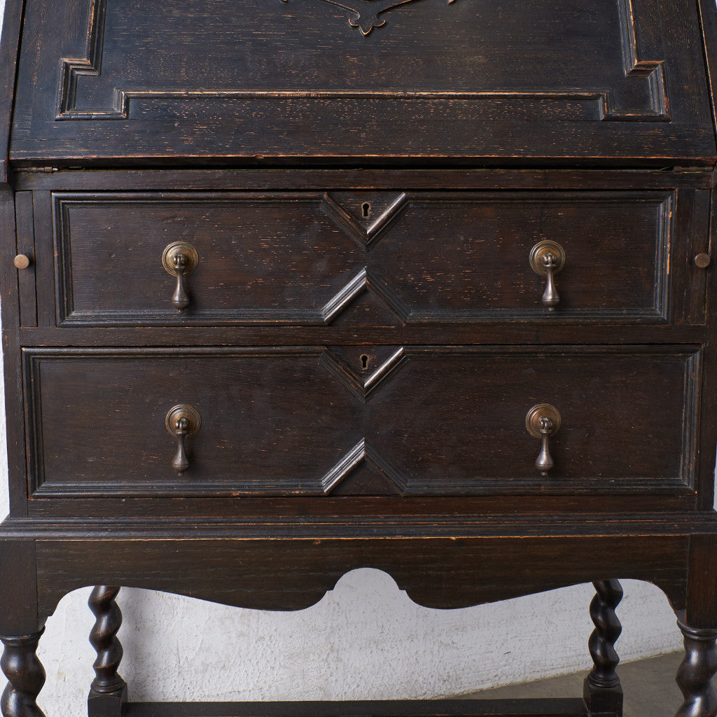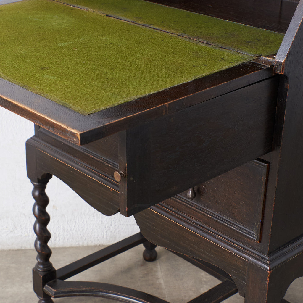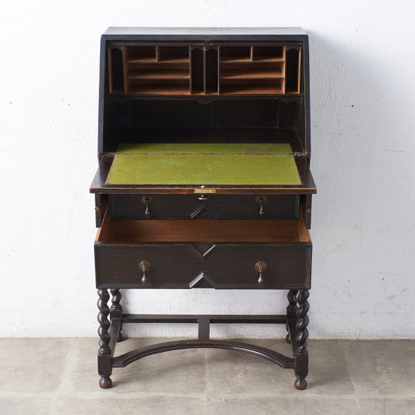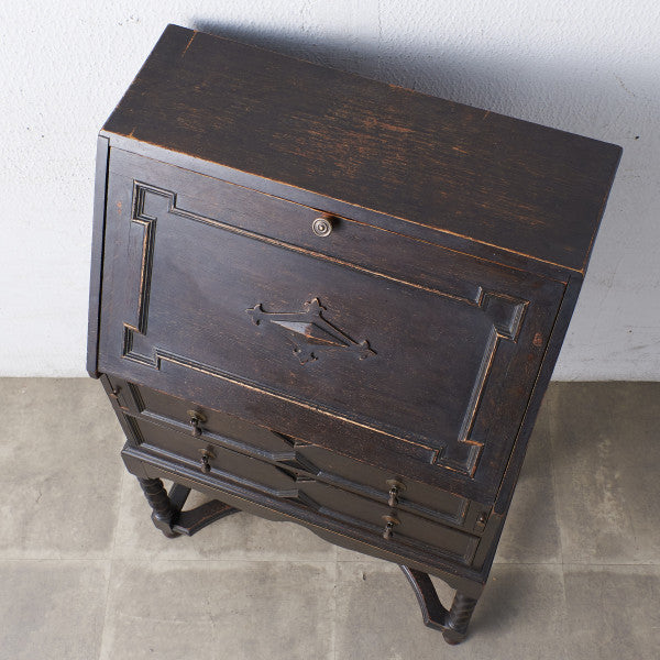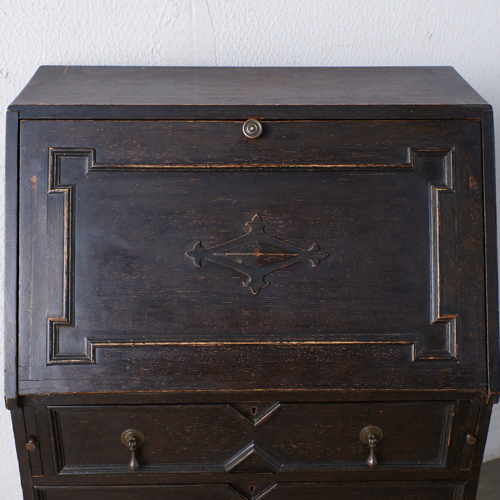 必要時に天板を展開することで空間の一角を書斎に変えるライティングビューロー。急な来客時など作業の途中でも天板をさっと閉じることで空間の美観を損ないません。