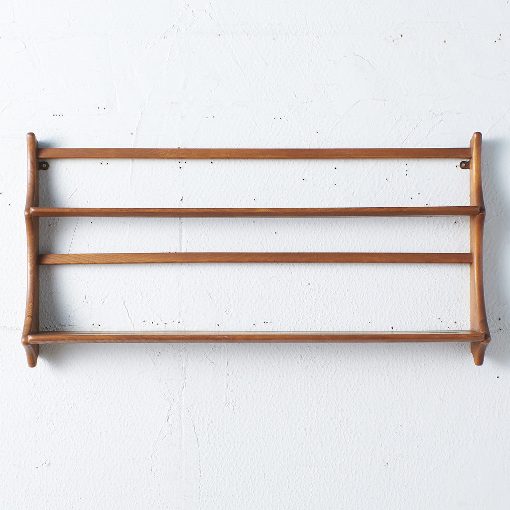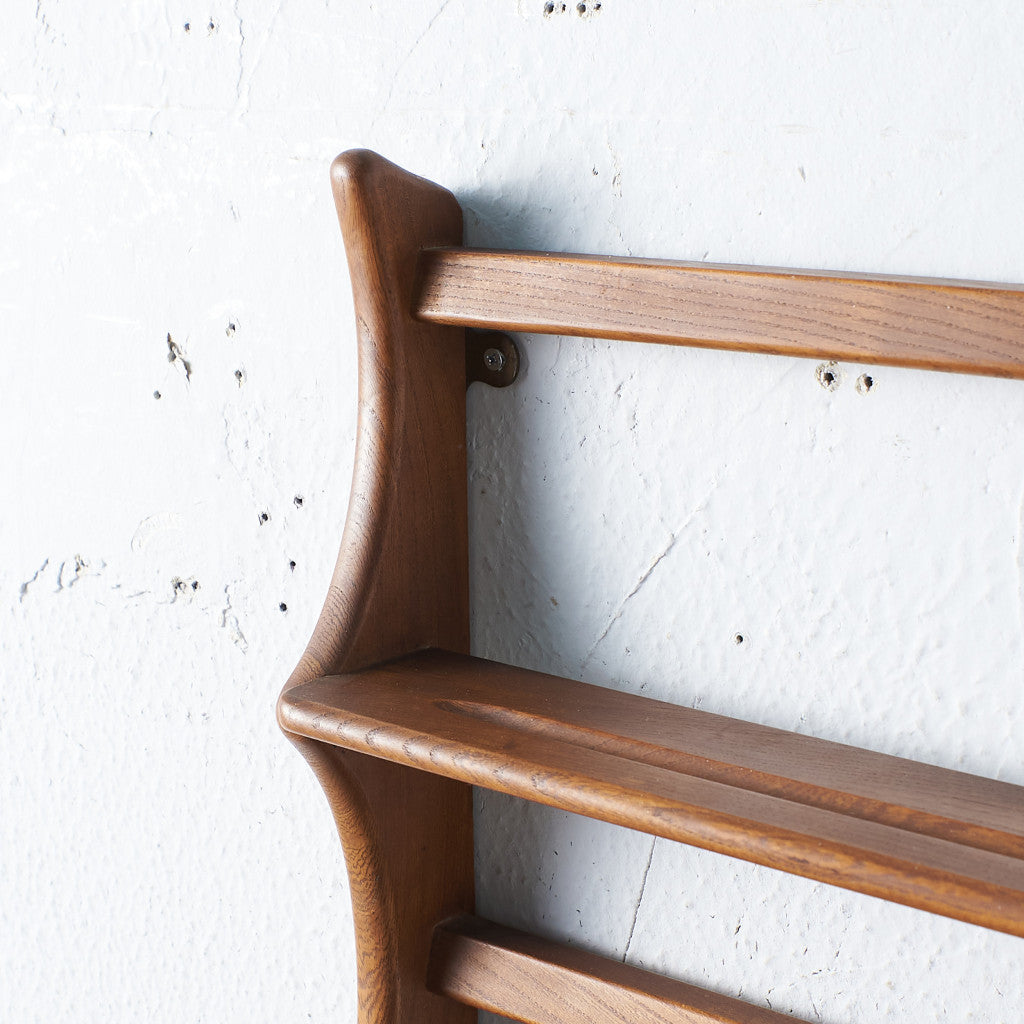 ラダーバックカウホーンチェアの背もたれを彷彿させる波型のシェイプが施された薄型のオープンウォールラック。チェアやテーブルと同じく角に丸みをもたせた繊細なデザインはアーコールならではのものです。本来は名前の通りプレート(お皿)を飾るための棚ですが、ある程度奥行きがあるので小物雑貨やフォトフレーム等をディスプレイ可能、スパイスラックとしてもお使いいただけます。