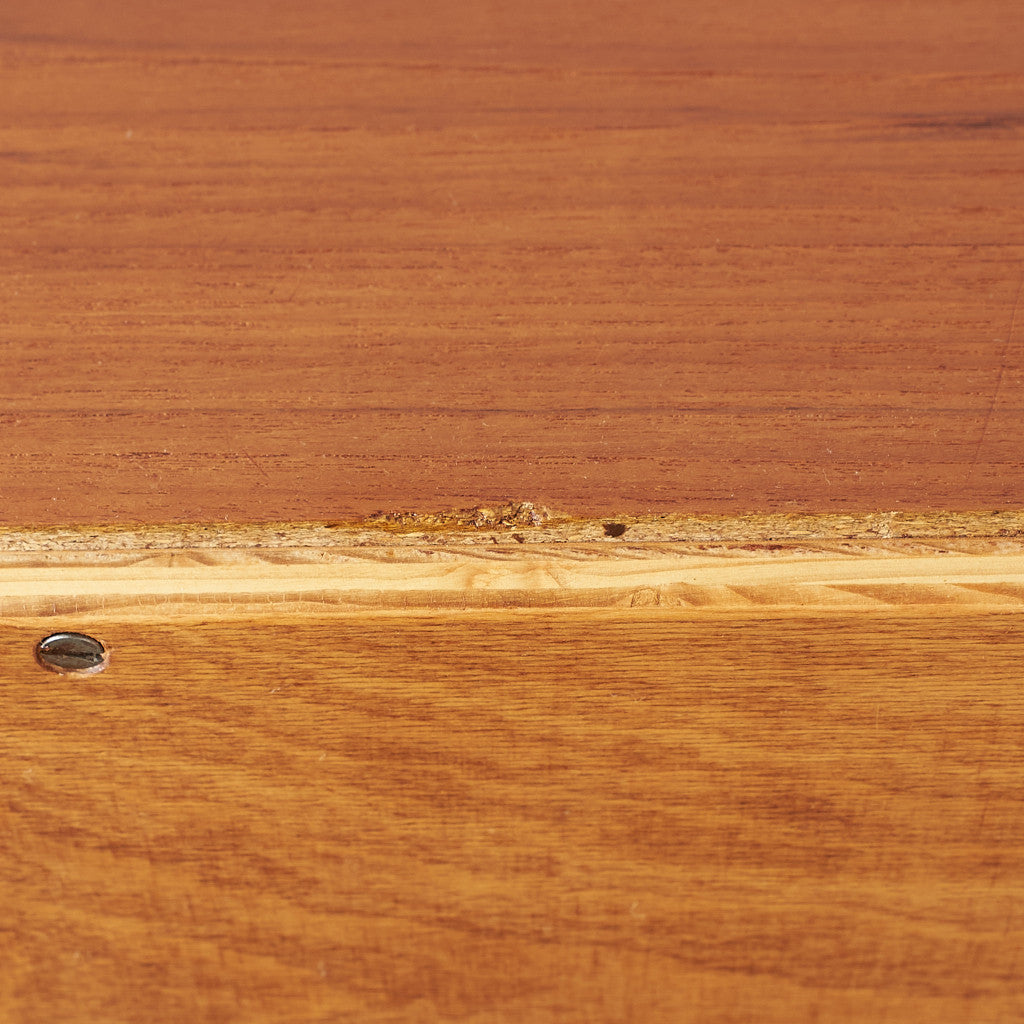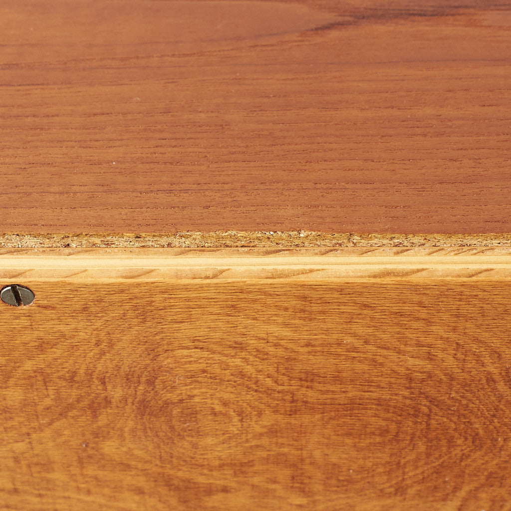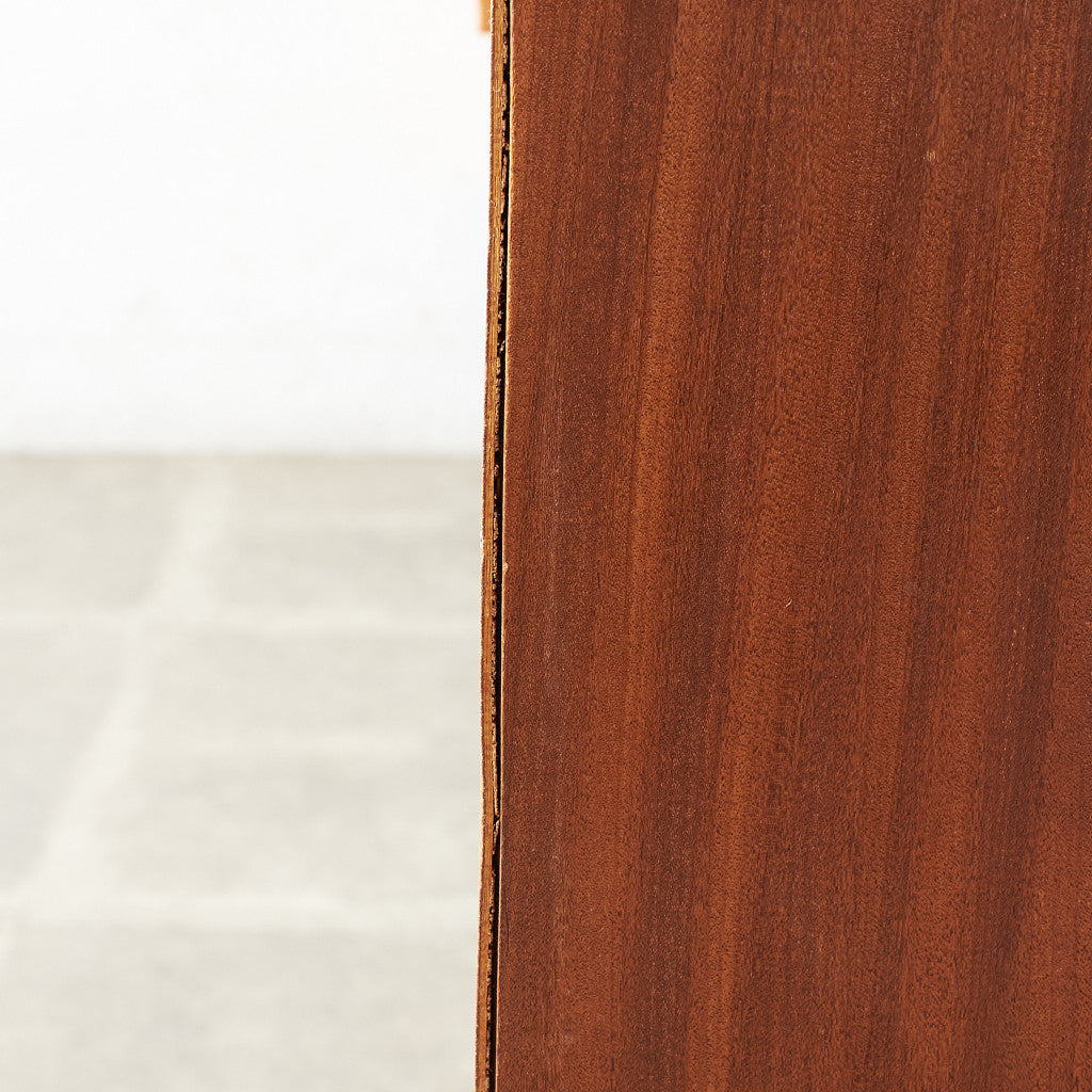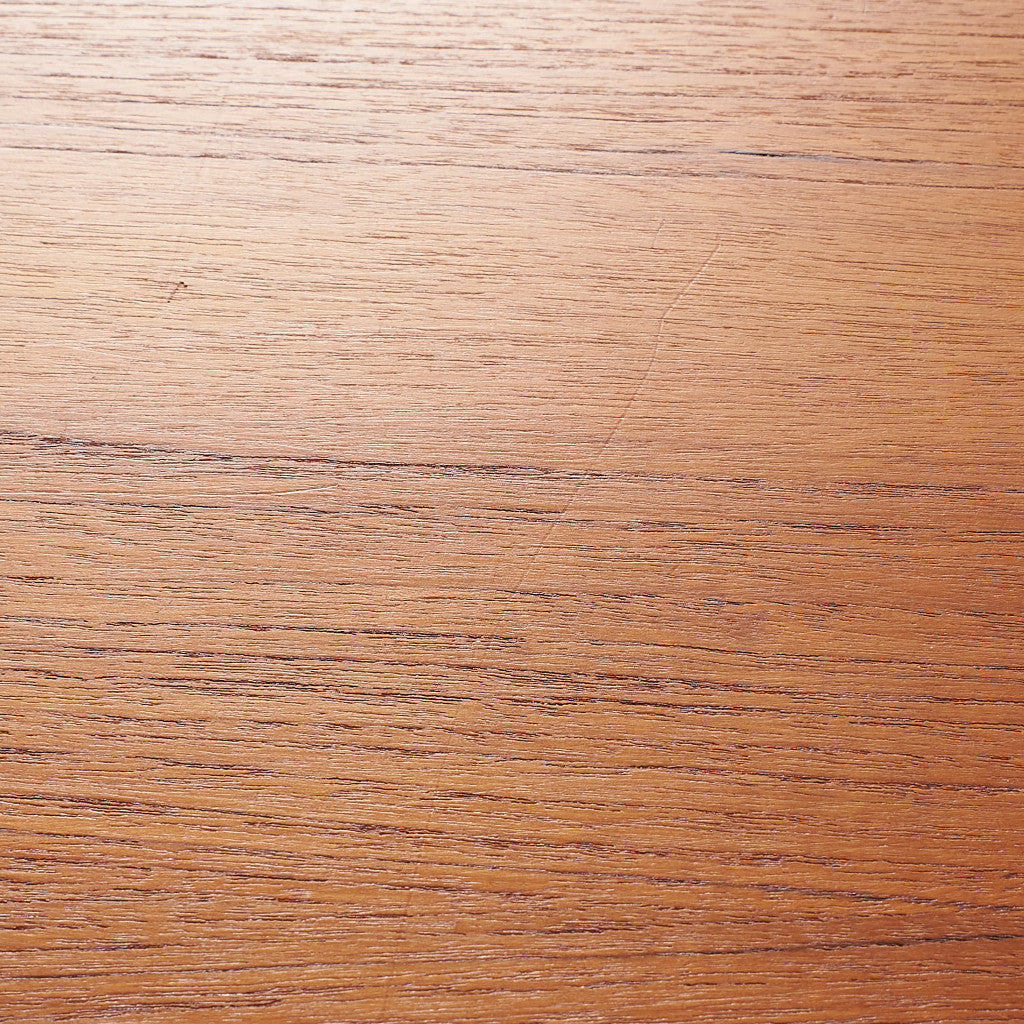 今では希少な高級材であるチーク材を使用した温かみのある褐色の木肌が印象的。研ぎ出された滑らかな取っ手など、実用的でありながらも作り手のこだわりを感じさせるヴィンテージファニチャーです。