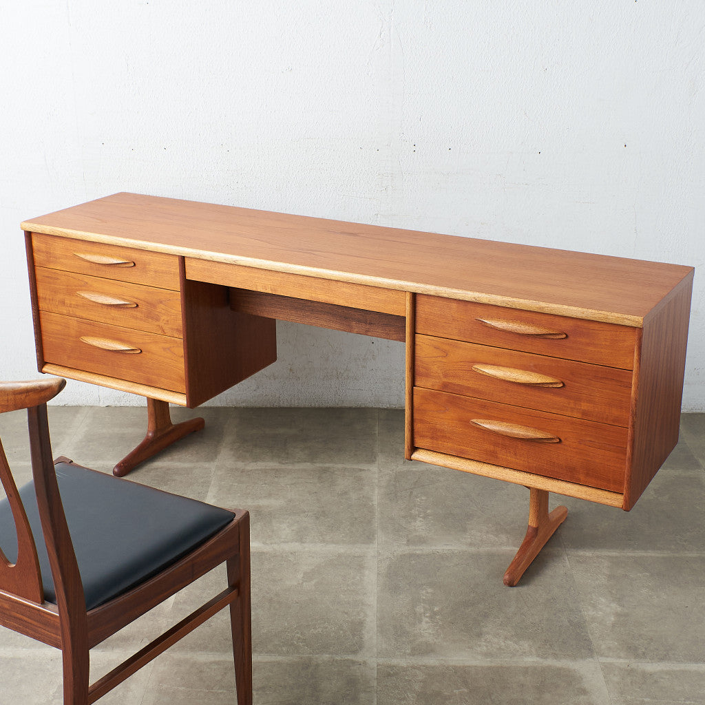 イギリスミッドセンチュリー期の家具メーカー、Austinsuite (オースティン・スイート) による、チーク材を使用したヴィンテージデスクです。