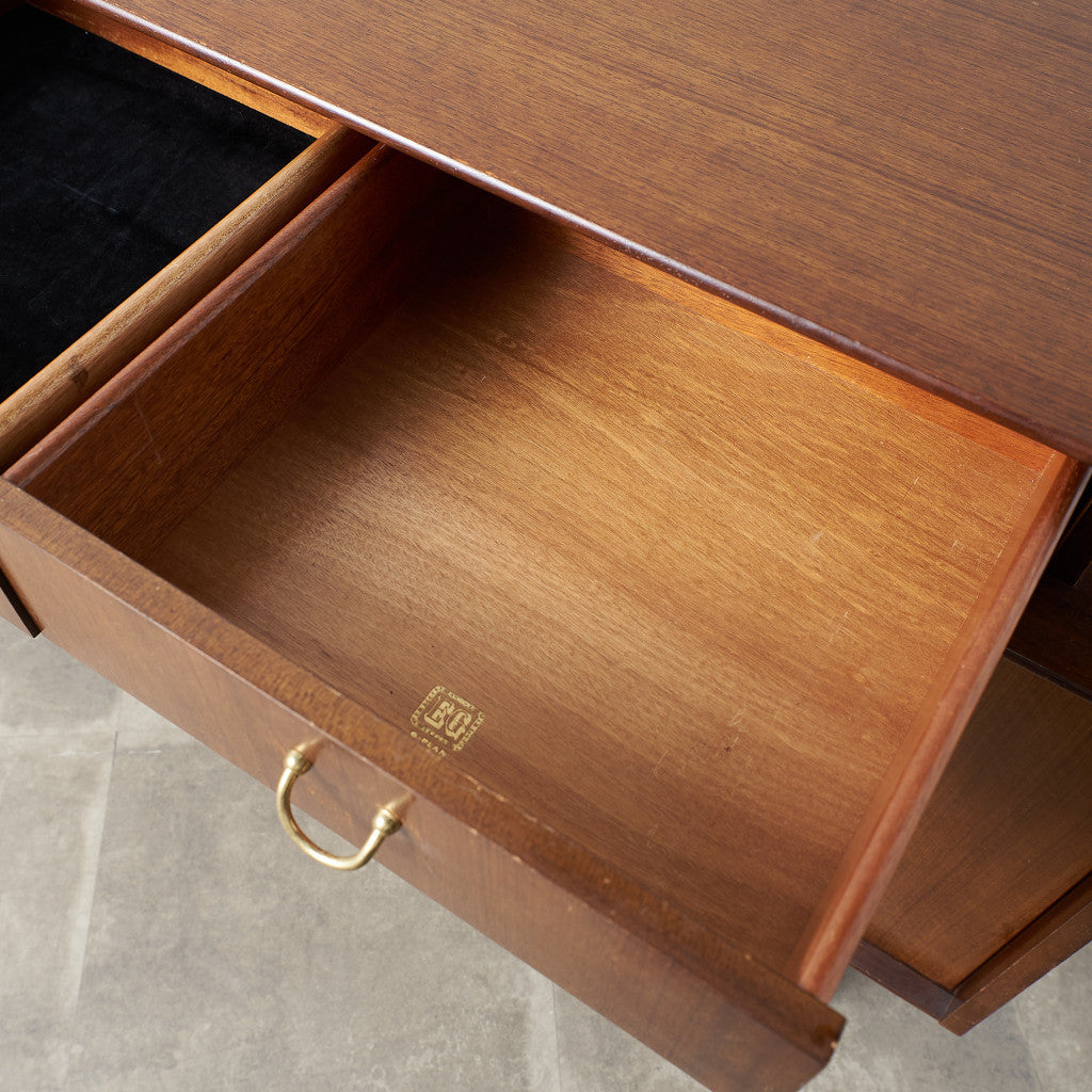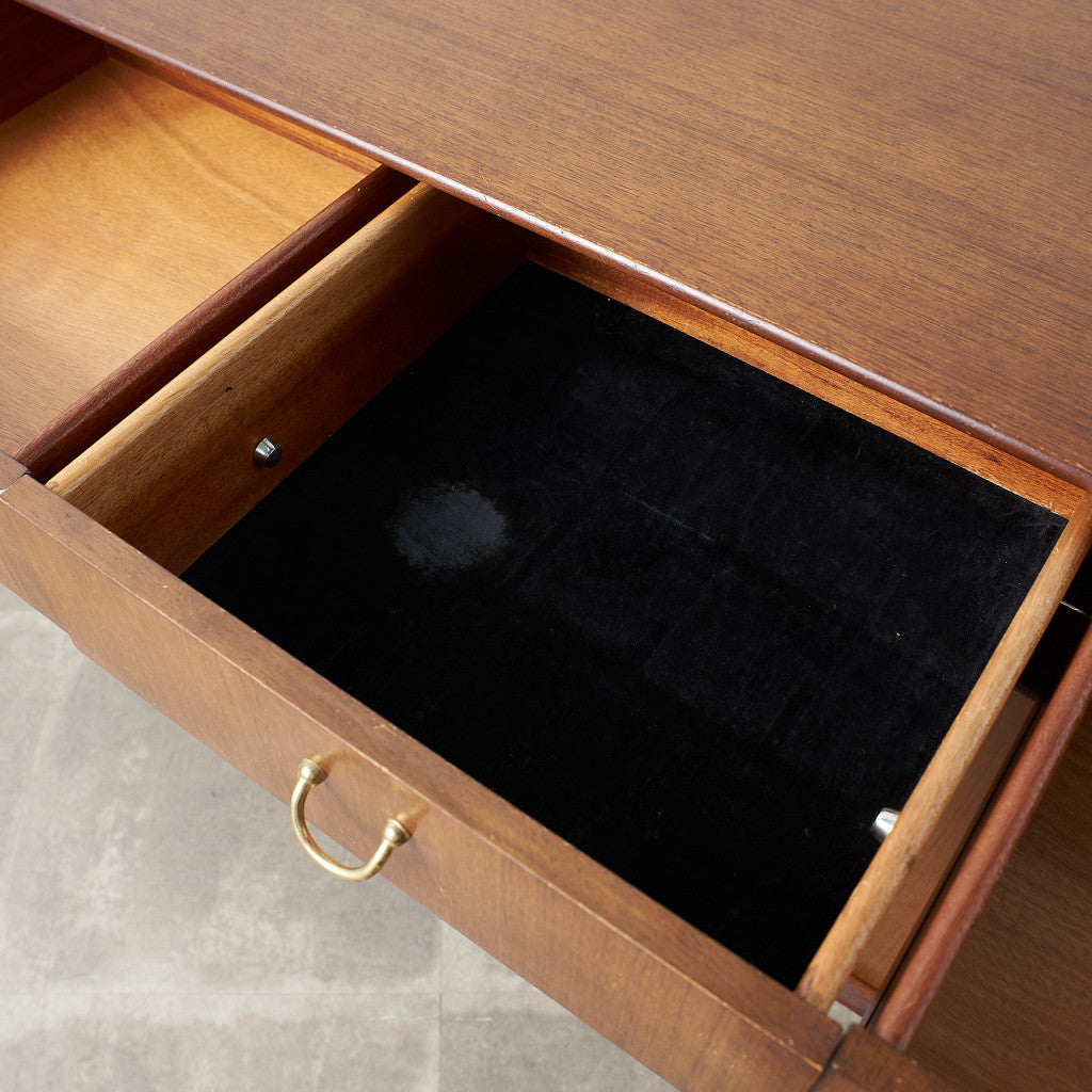 1958年に発売されたTola&Black(トーラ&ブラック)。日本の漆塗りに着想を得てヨーロッパで黒塗りの家具が流行した1950年代に展開されたシリーズです。スタイリッシュで洗練された雰囲気が印象的で、トーラ材の美しい色調とブラックペイントや、真鍮メッキのゴールドのコントラストが目を惹きます。別名BB(Black&Brass)シリーズとも呼ばれ、現在でも人気の高いTola&BlackはG-PLANの中でも流通量が少なく、なかなか手に入りにくい希少価値の高いシリーズです。