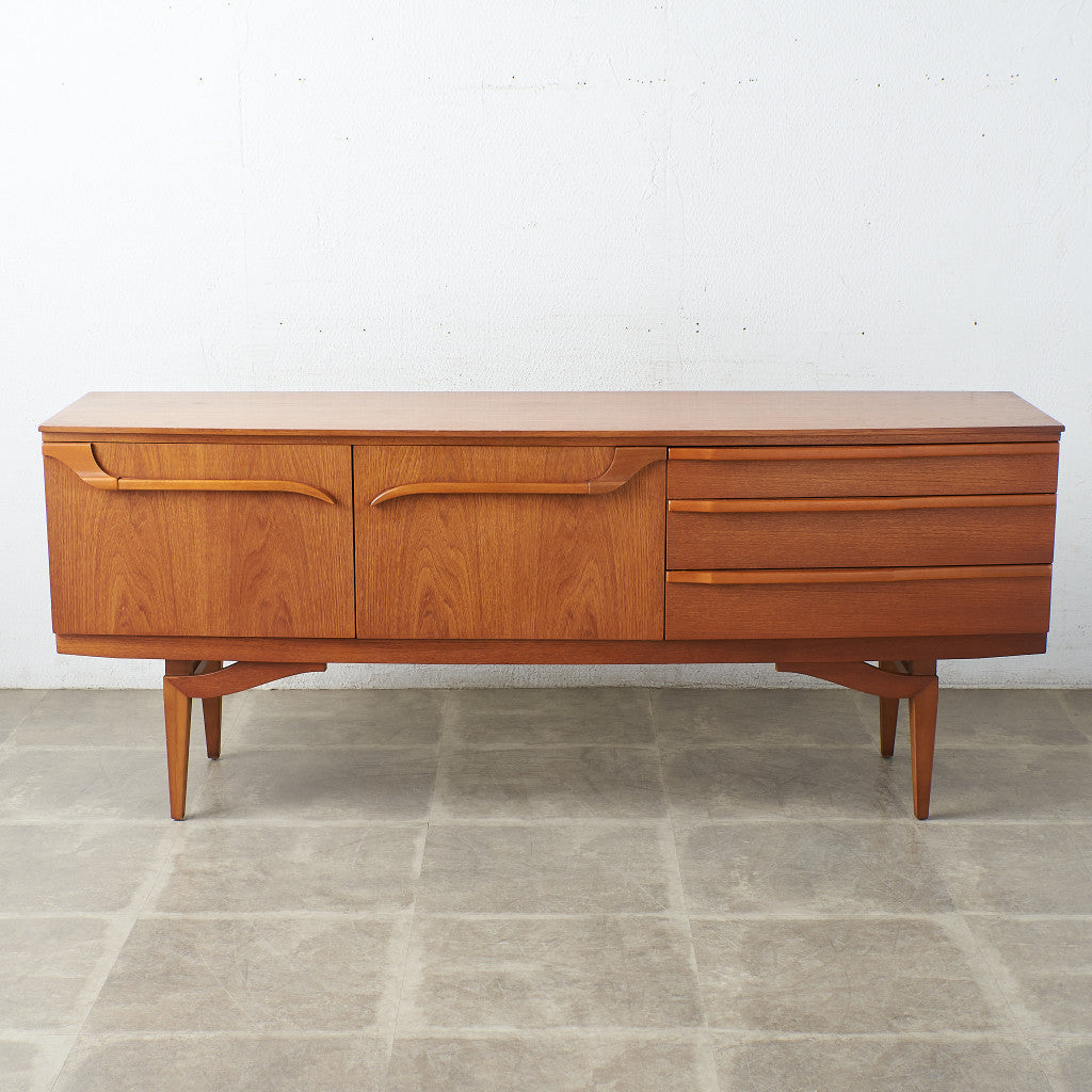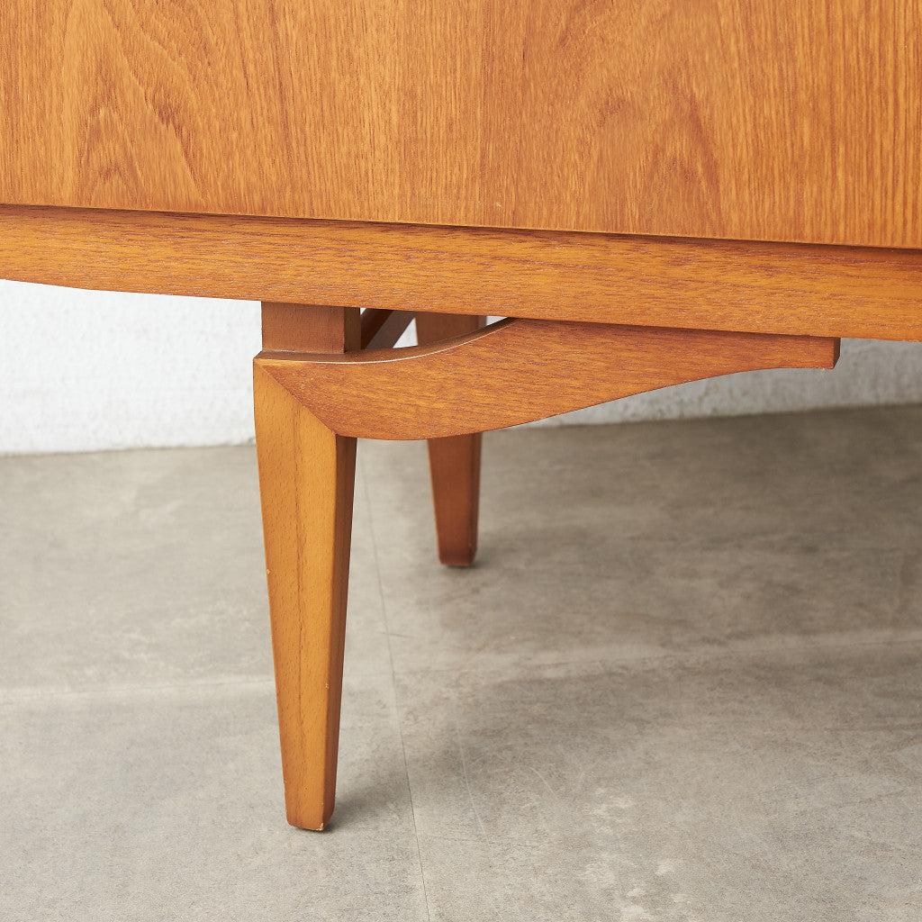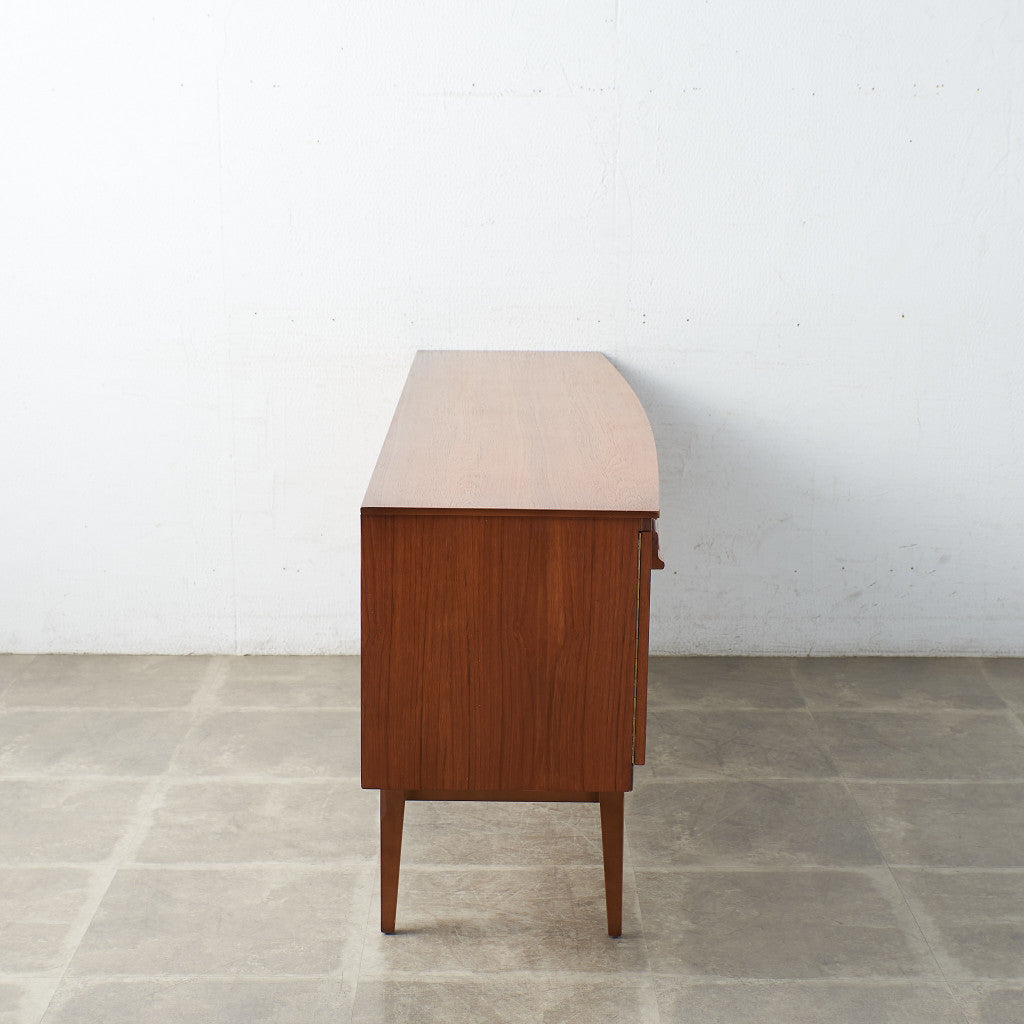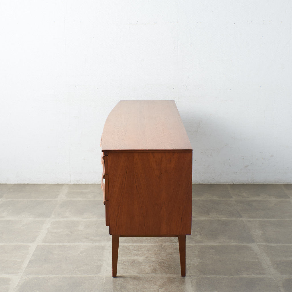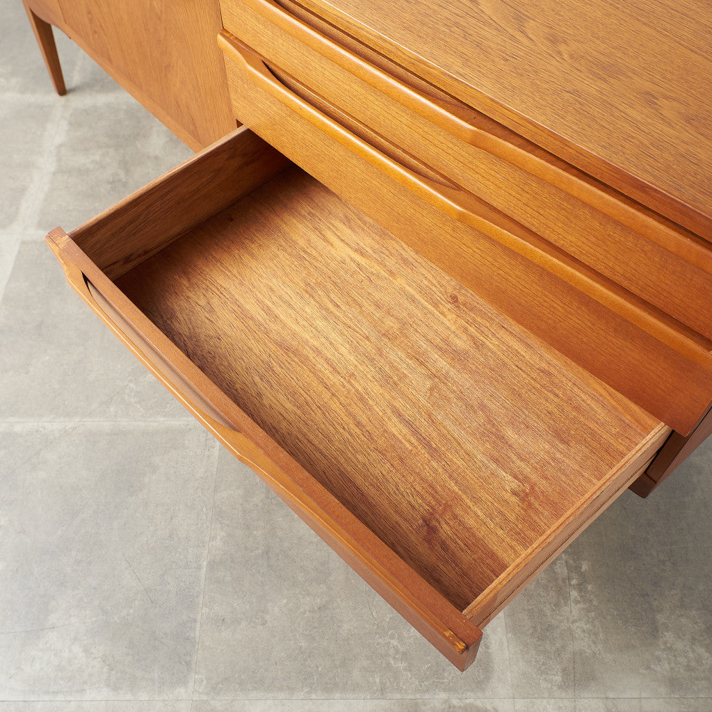 チーク材を用い、デンマークスタイルに独自のアレンジが施されたサイドボード。G-PLANやMcIntoshと比べて流通が少ないこともコレクター心をくすぐります。