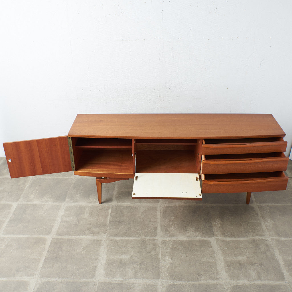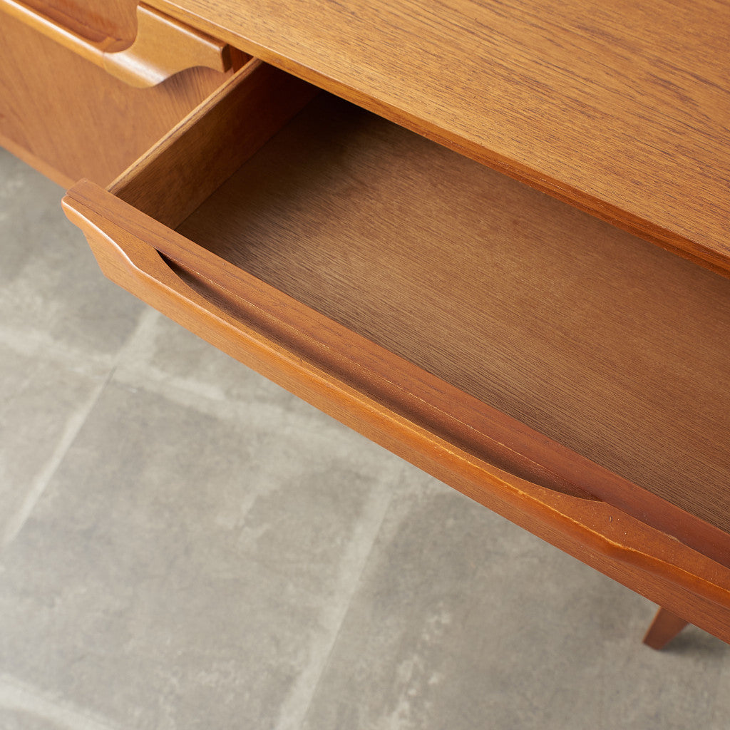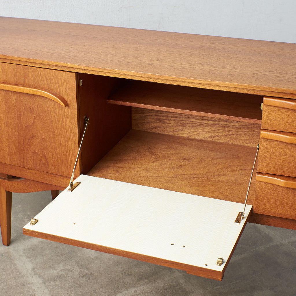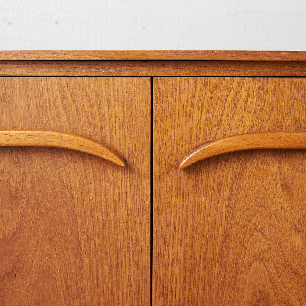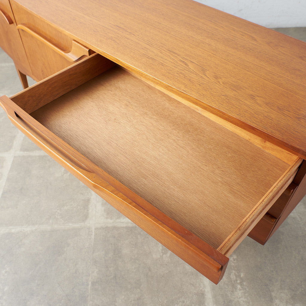 チーク材を用い、デンマークスタイルに独自のアレンジが施されたサイドボード。G-PLANやMcIntoshと比べて流通が少ないこともコレクター心をくすぐります。