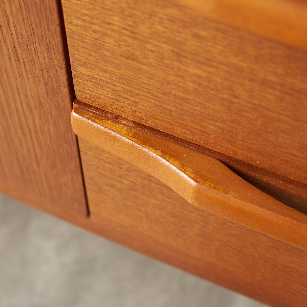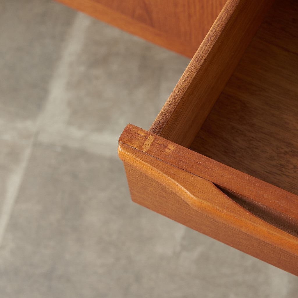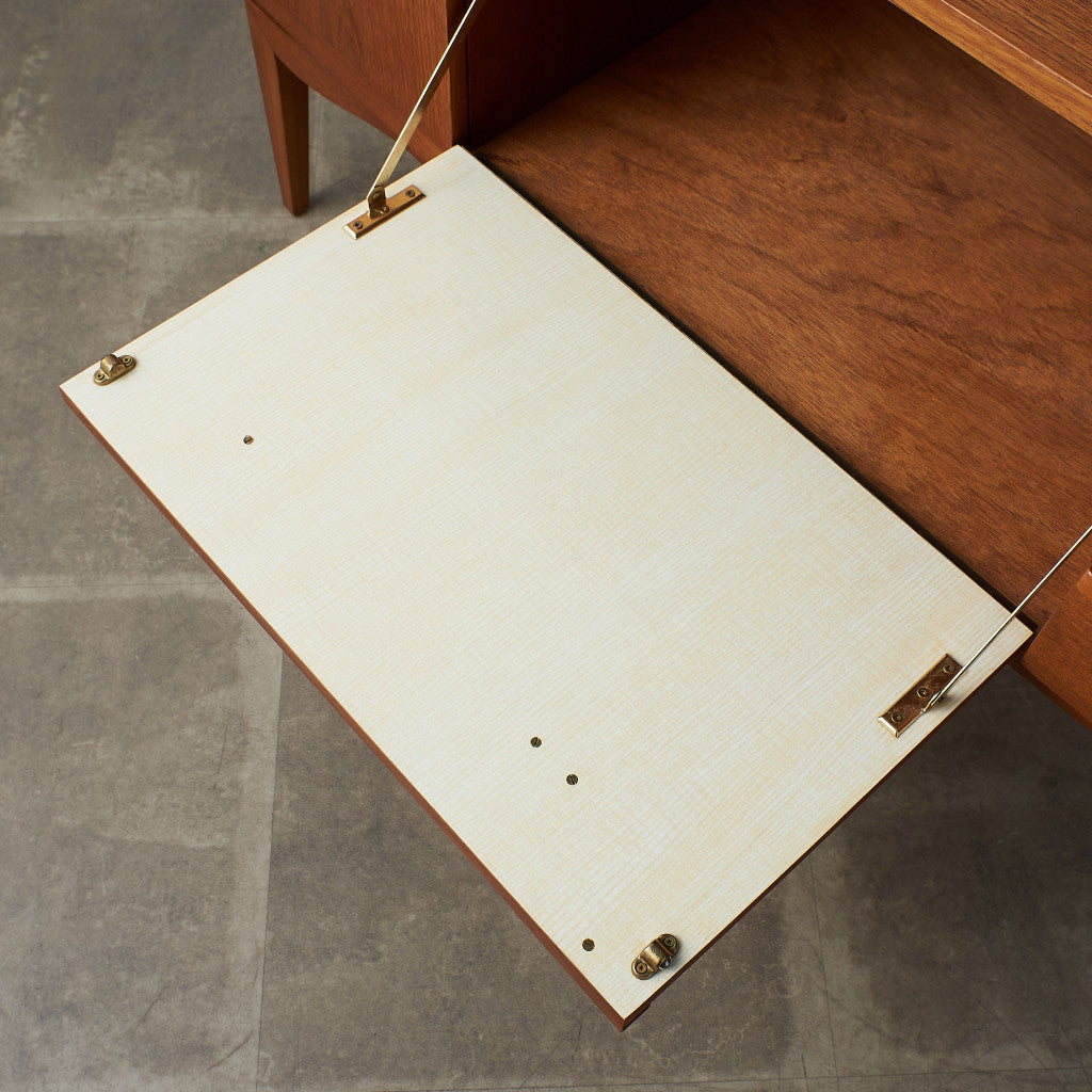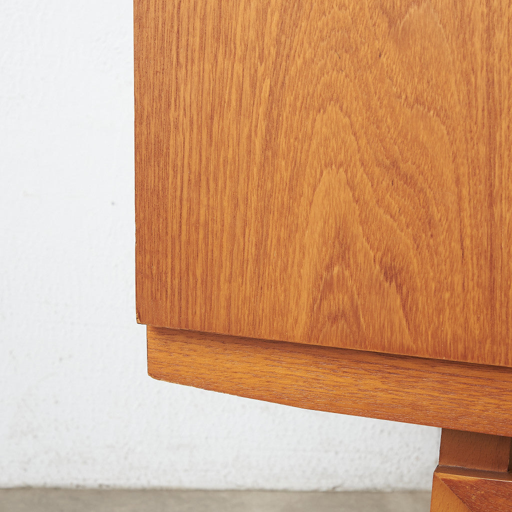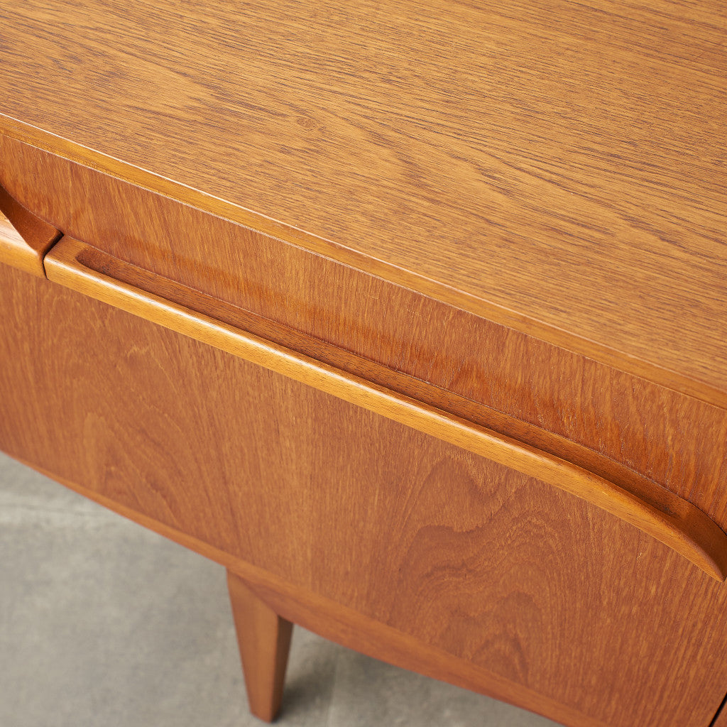 チーク材を用い、デンマークスタイルに独自のアレンジが施されたサイドボード。G-PLANやMcIntoshと比べて流通が少ないこともコレクター心をくすぐります。