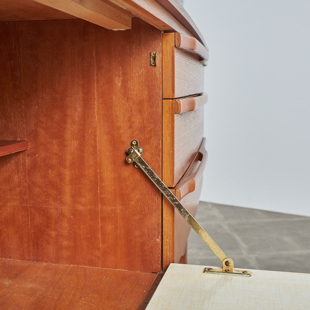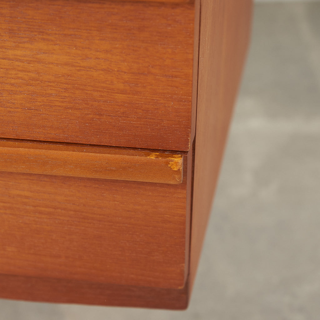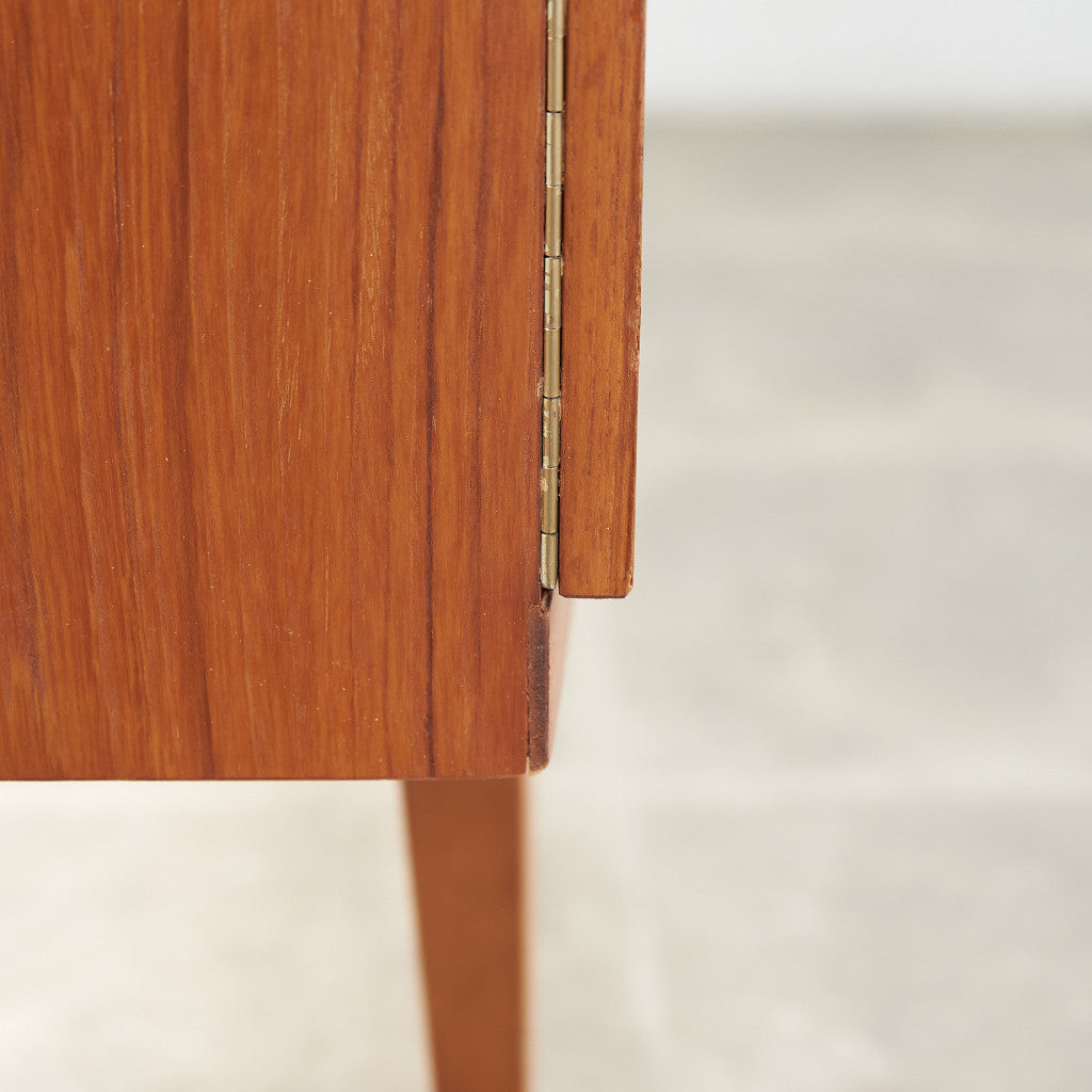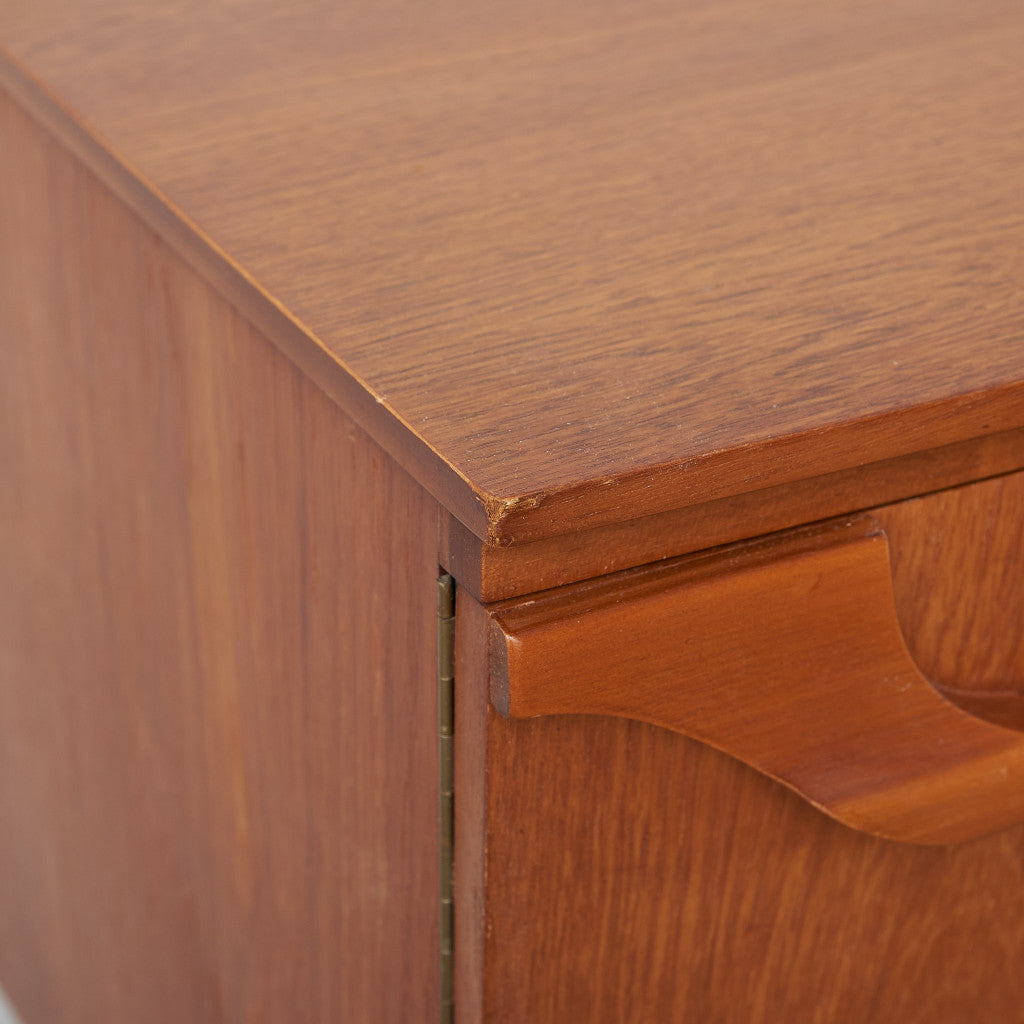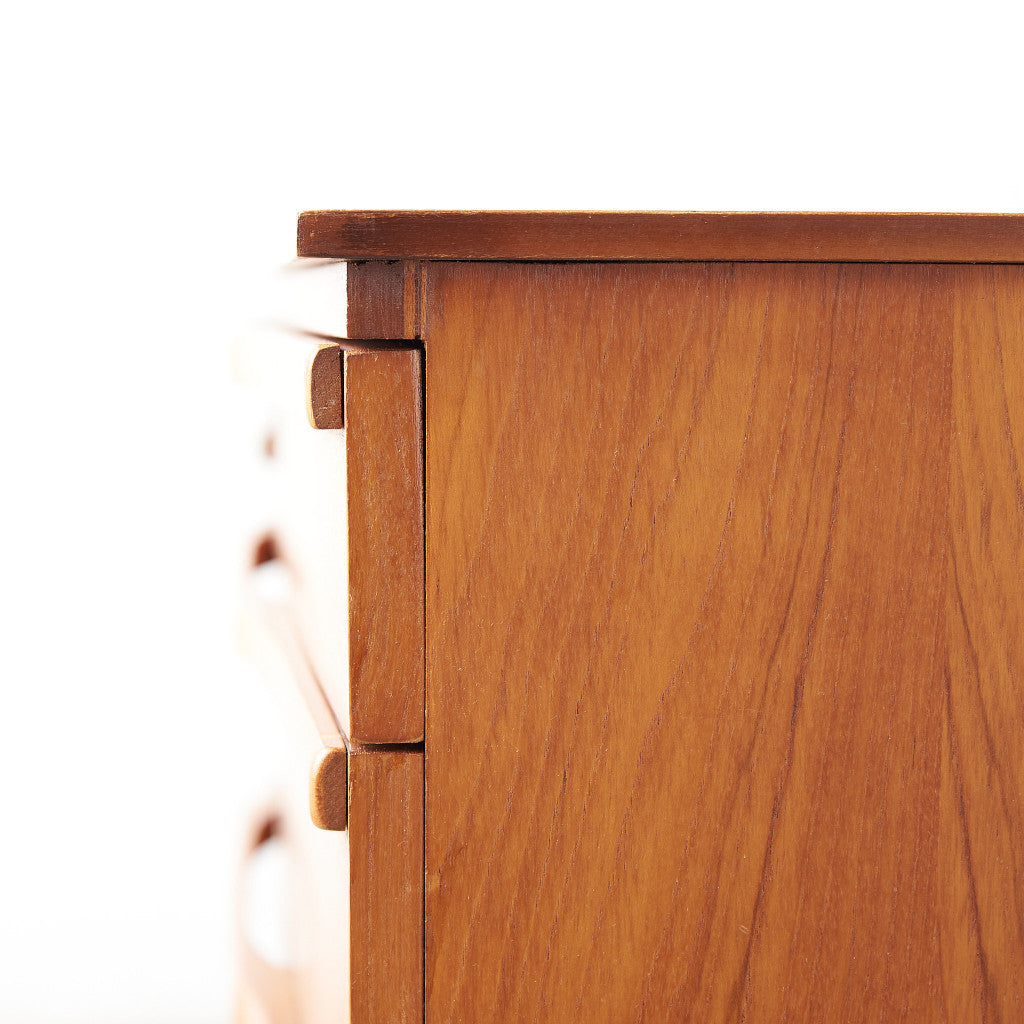 チーク材を用い、デンマークスタイルに独自のアレンジが施されたサイドボード。G-PLANやMcIntoshと比べて流通が少ないこともコレクター心をくすぐります。