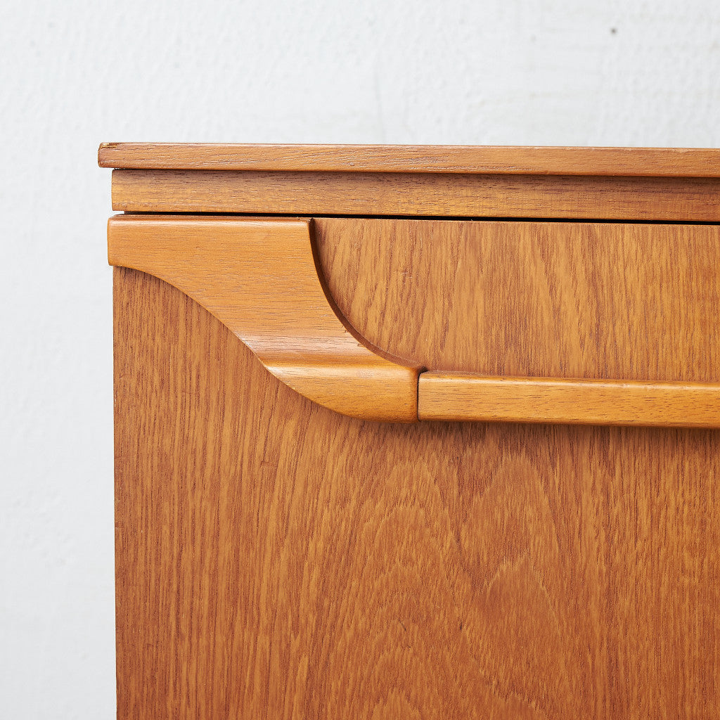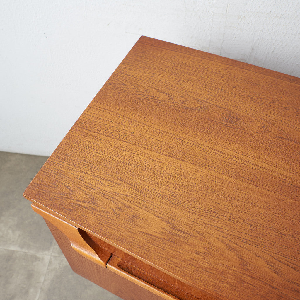 Beautility社はG-PLAN、McIntoshと並びイギリスのミッドセンチュリーを代表する、老舗の家具メーカー。1896年、サイモン・サドフスキーが"Sadovsky" Cabinet Makersを設立。その後、1929年に「Beautility Furniture」に改名しました。バラエティに富んだ個性的な取っ手や、すっきりとしたスタイリッシュな脚のデザインが特徴です。