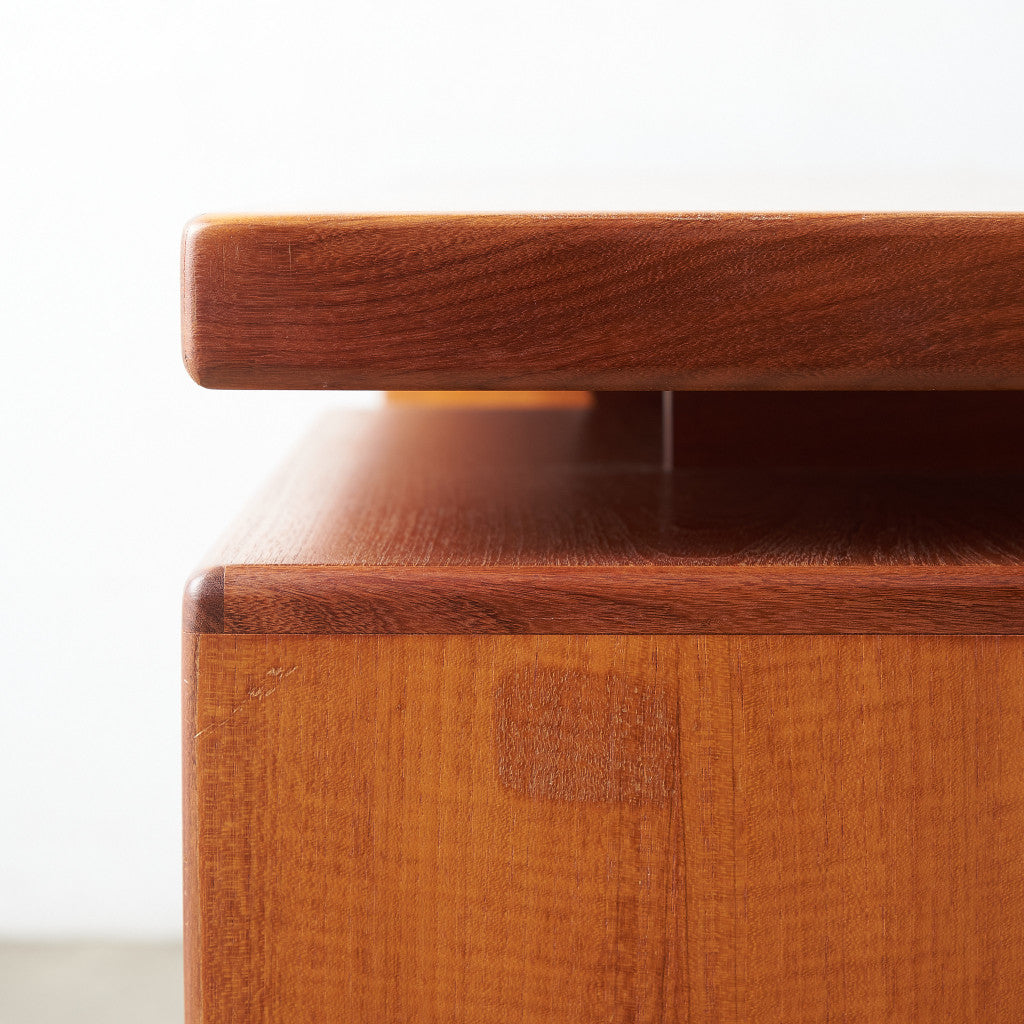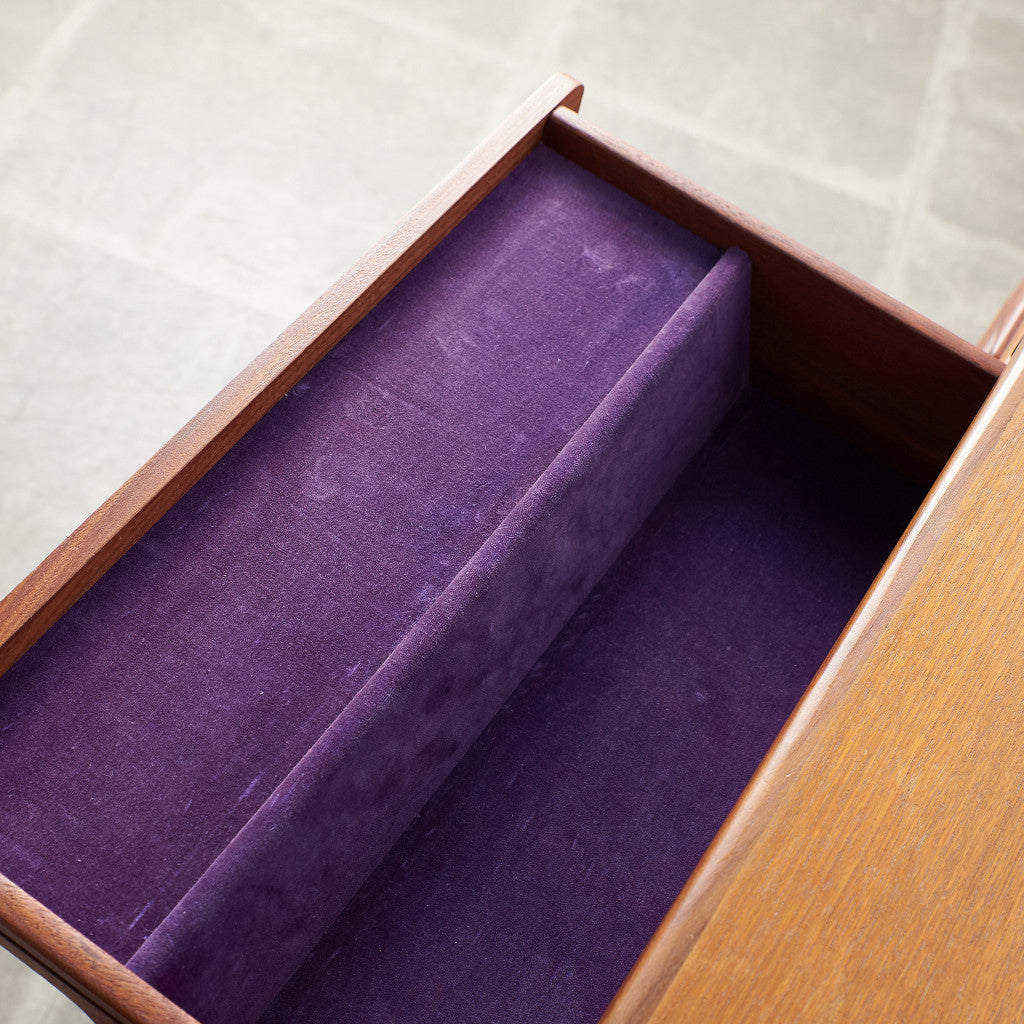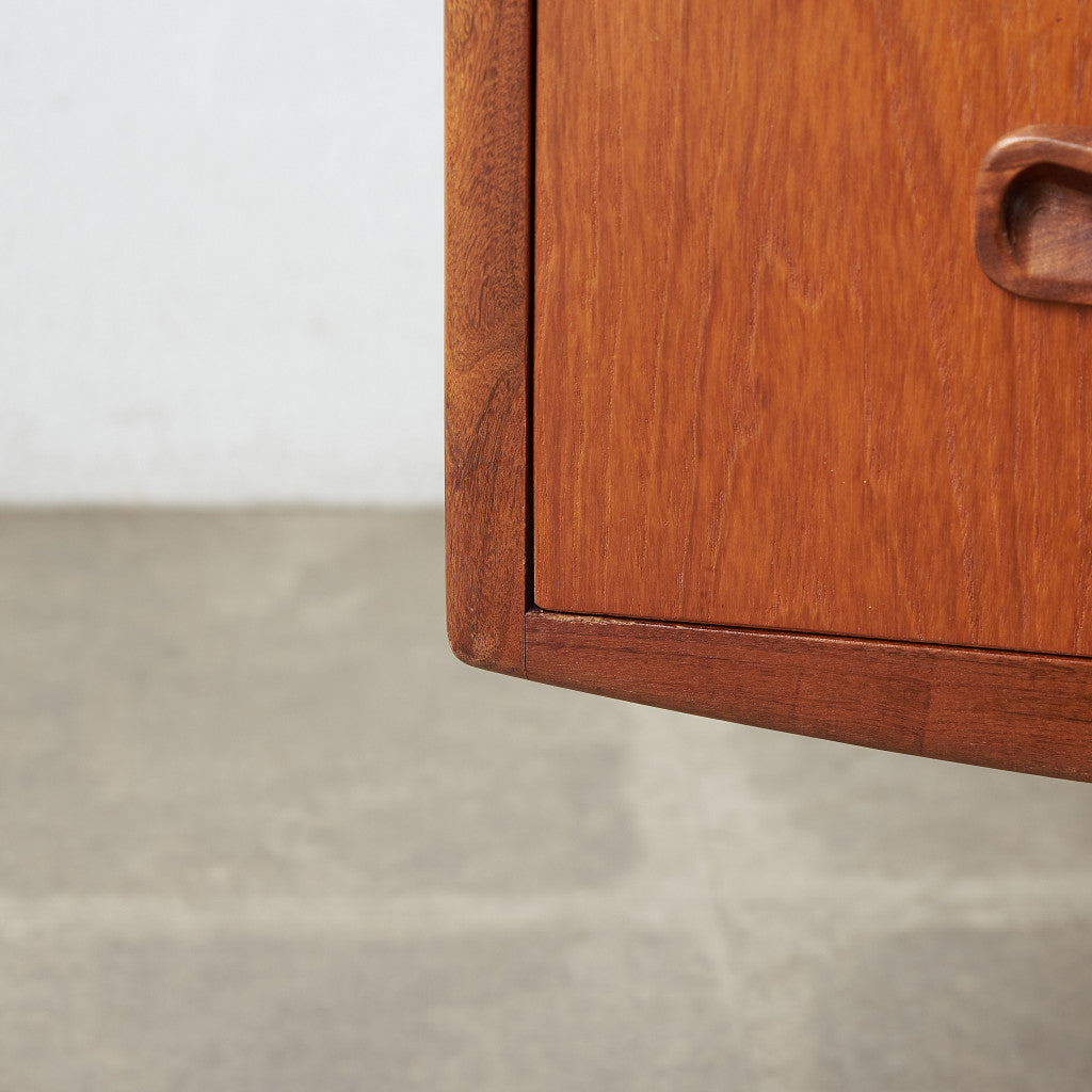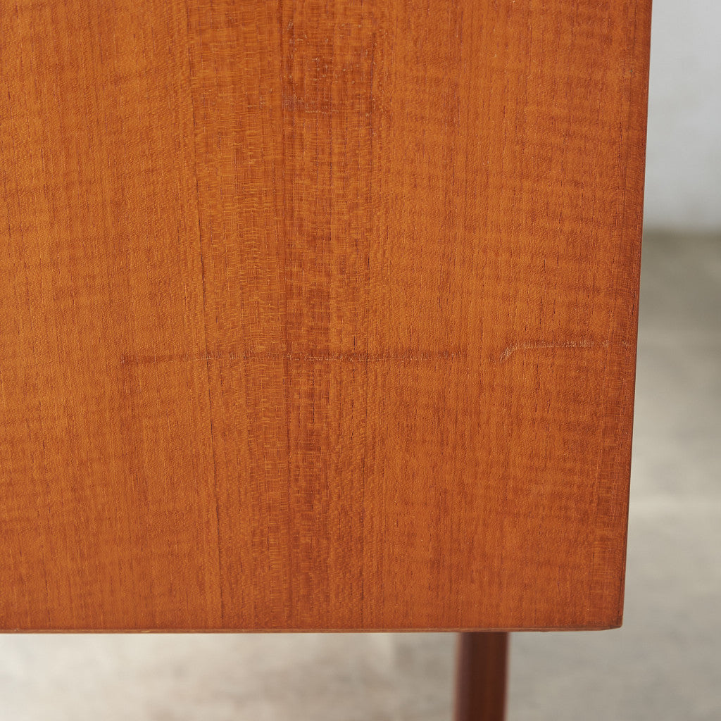 初期のフレスコシリーズドレッサーから脚が変更されたリファイン版、本来は可動式のミラーを備えたドレッサーとしてデザインされていますがミラーを排してデスクとしても利用されています。充実した収納スペースとバランスの取れたデザインが美しい一品です。