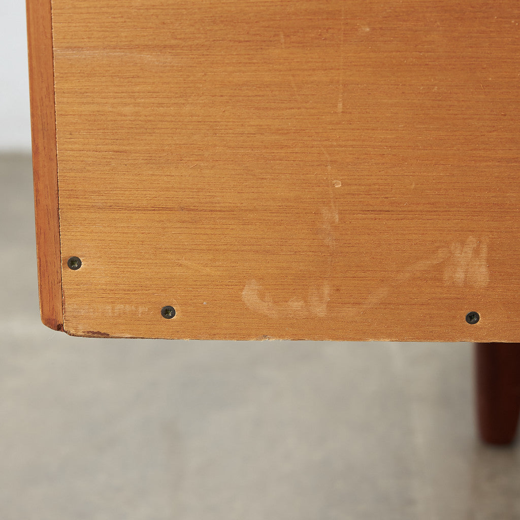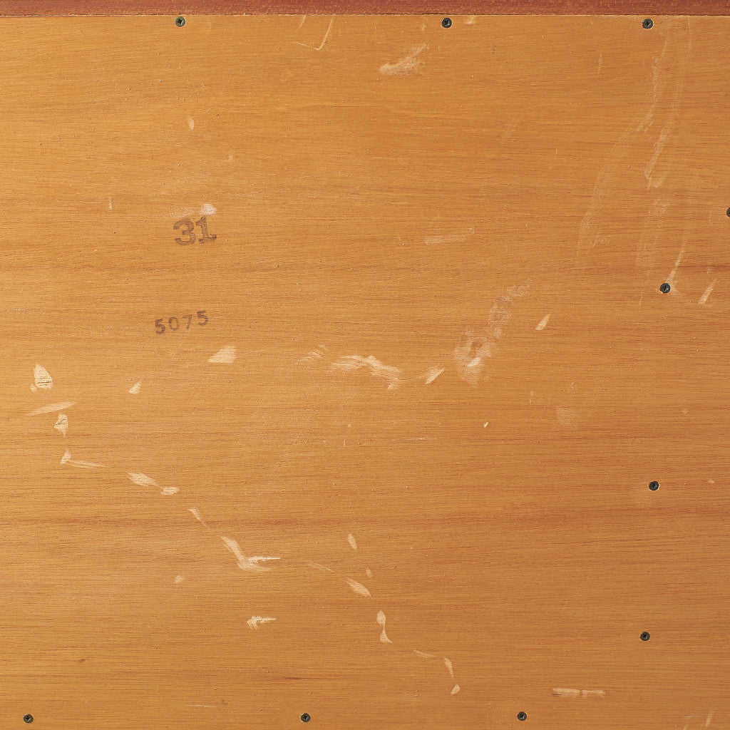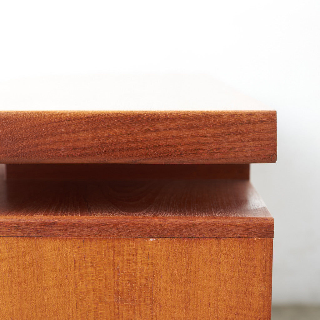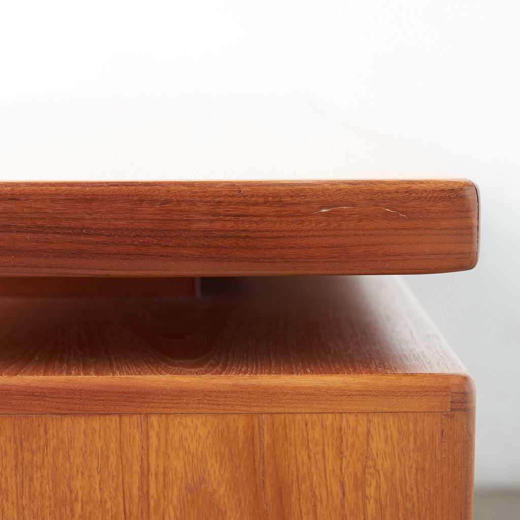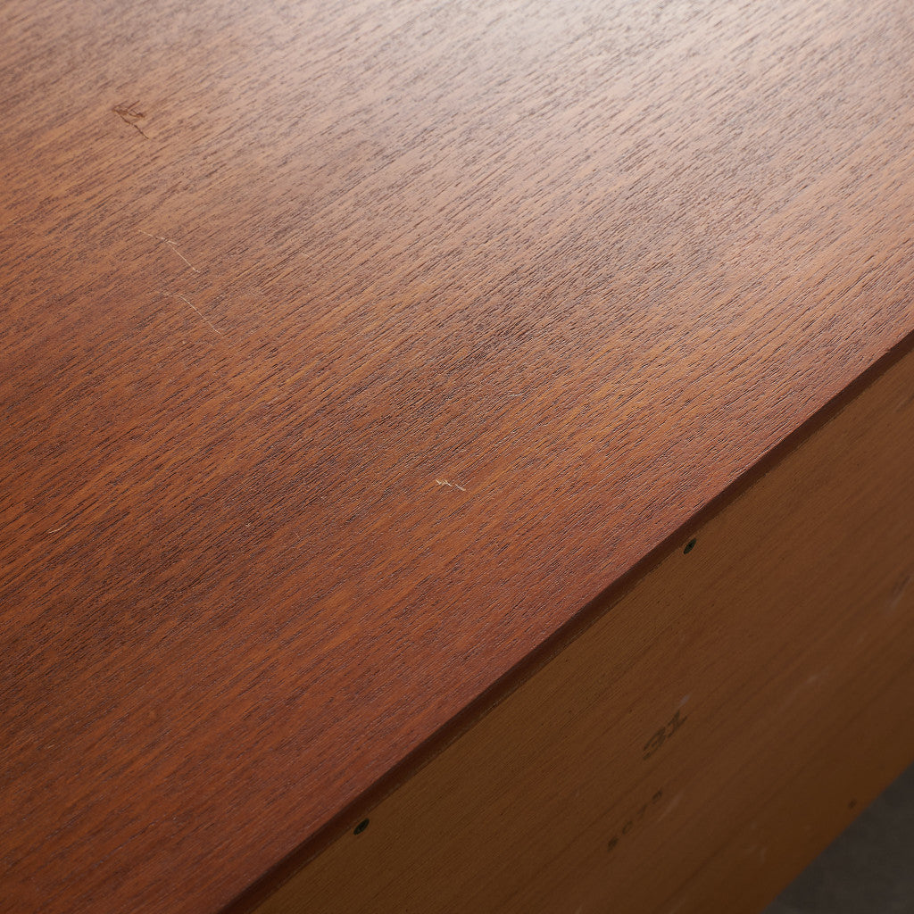 初期のフレスコシリーズドレッサーから脚が変更されたリファイン版、本来は可動式のミラーを備えたドレッサーとしてデザインされていますがミラーを排してデスクとしても利用されています。充実した収納スペースとバランスの取れたデザインが美しい一品です。