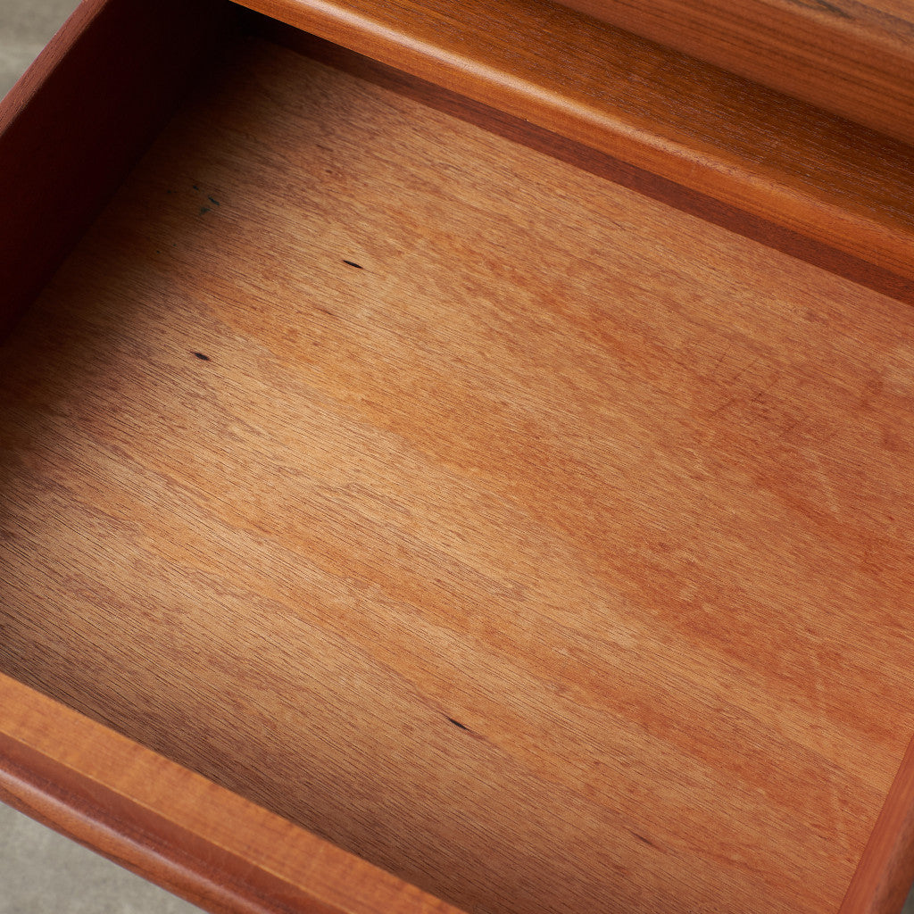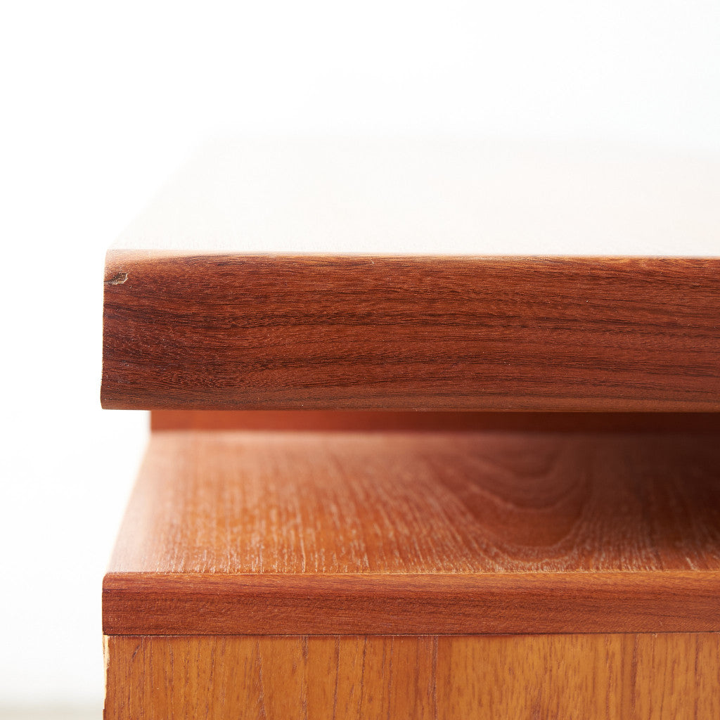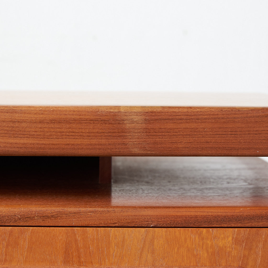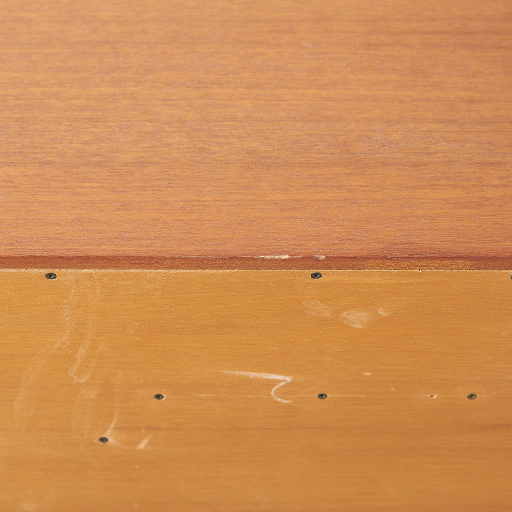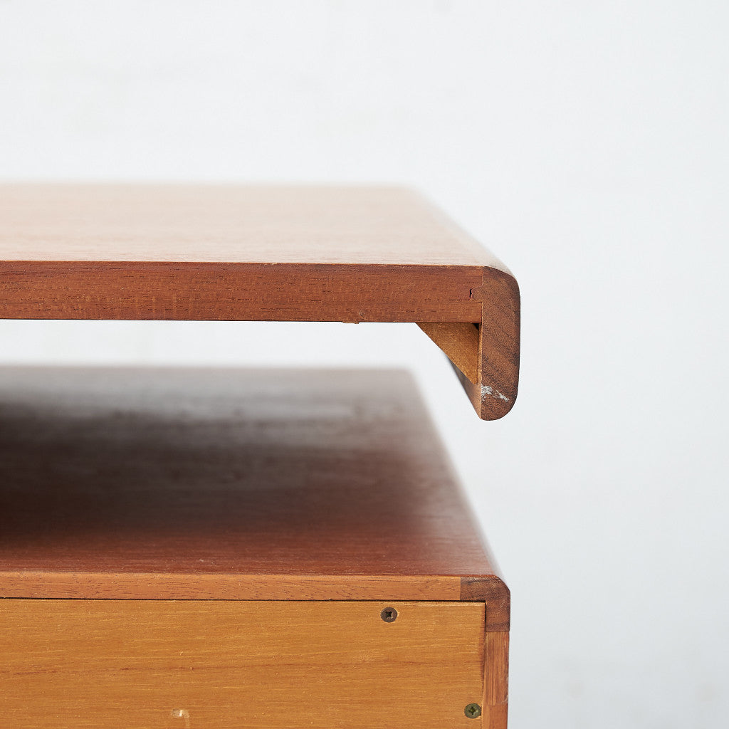 初期のフレスコシリーズドレッサーから脚が変更されたリファイン版、本来は可動式のミラーを備えたドレッサーとしてデザインされていますがミラーを排してデスクとしても利用されています。充実した収納スペースとバランスの取れたデザインが美しい一品です。