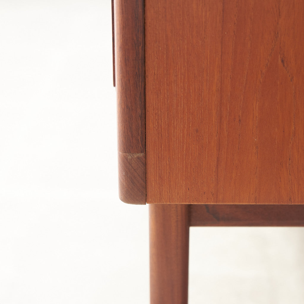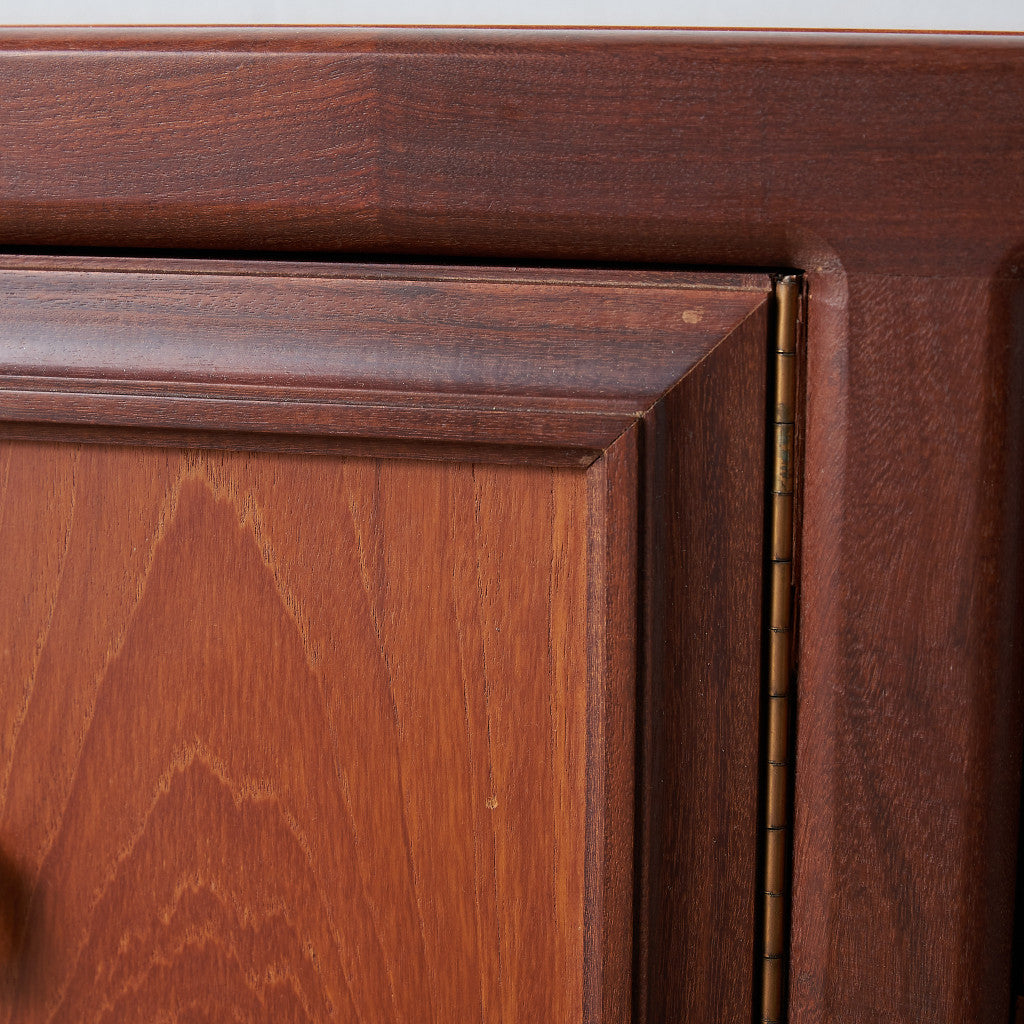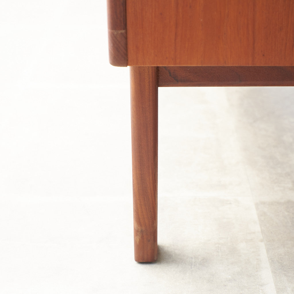 デンマークスタイルのデザインをルーツに独自のアレンジが施された個性的なサイドボード。美しい木目のチーク材にマッチした上質感のあるデザインが魅力です。細部にこだわりが感じられるリビングの顔として申し分のないお品です。