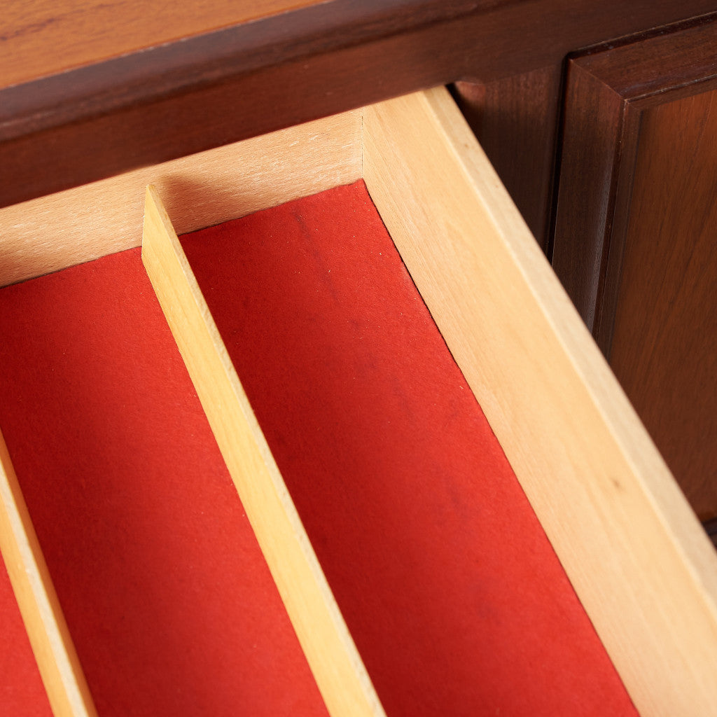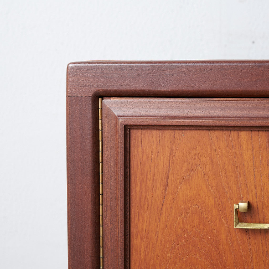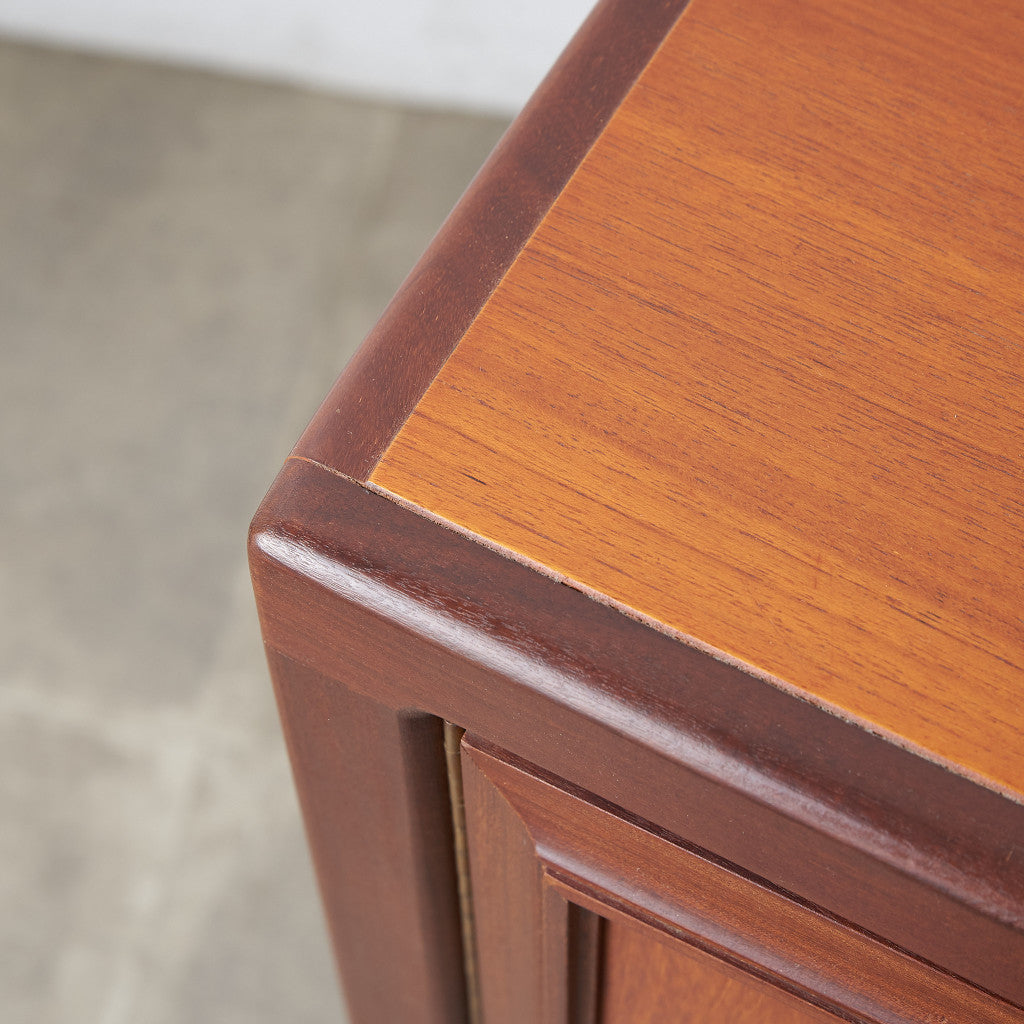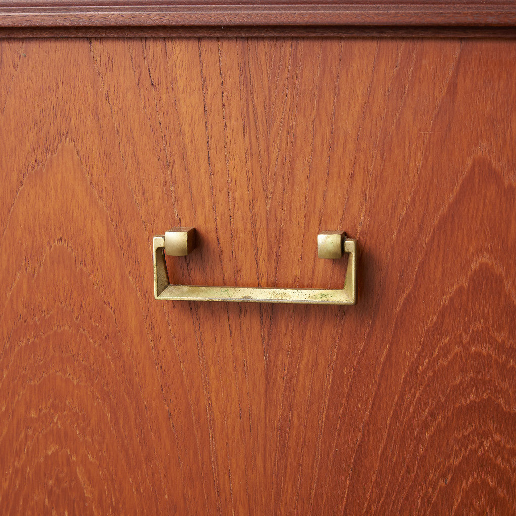 デンマークスタイルのデザインをルーツに独自のアレンジが施された個性的なサイドボード。美しい木目のチーク材にマッチした上質感のあるデザインが魅力です。細部にこだわりが感じられるリビングの顔として申し分のないお品です。