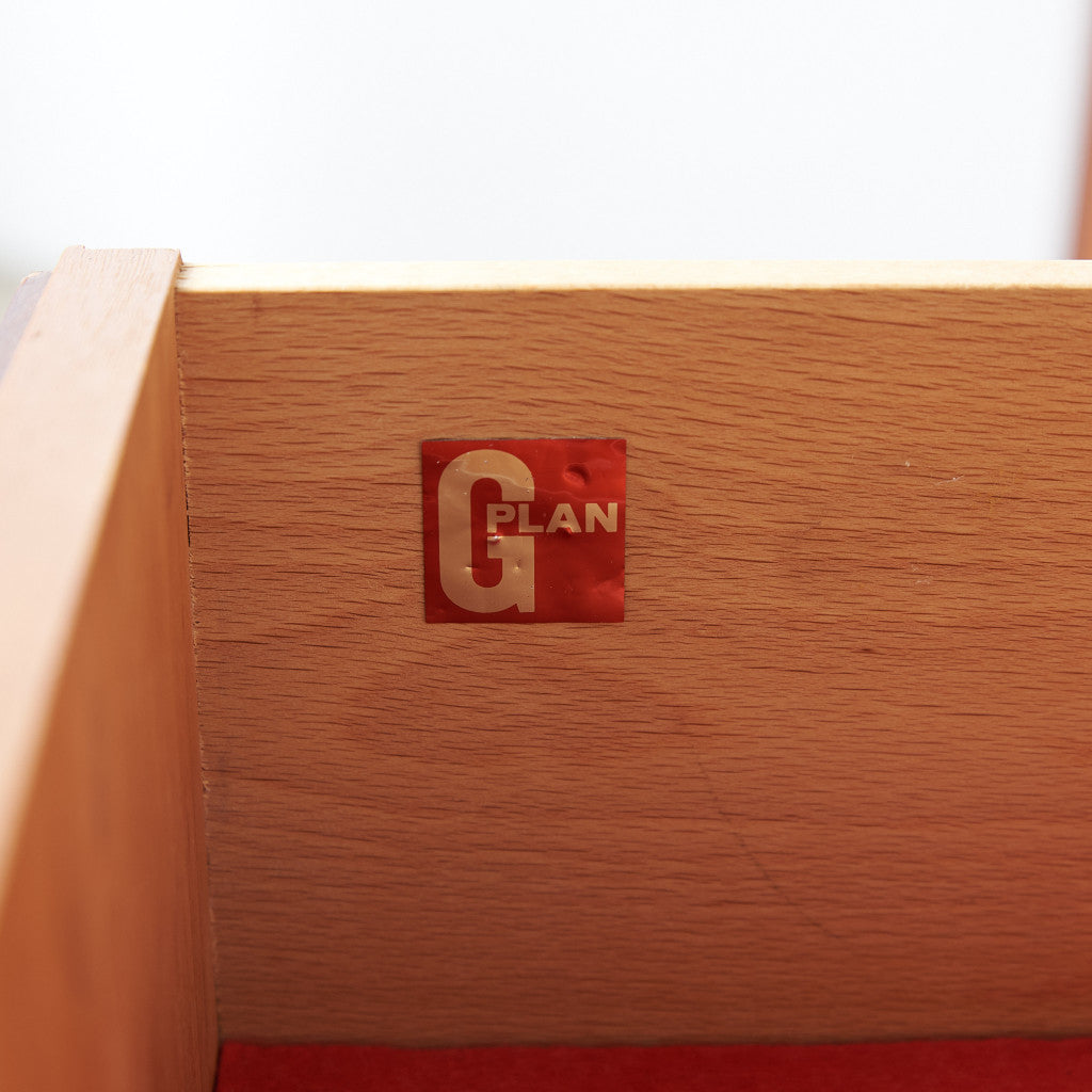 1898年創業の英国ハイ・ウィカムという町の「Ebenezer Gomme(エベネゼル・グーム)」社により 1952年に打ち出された家具ブランドです。1950年代の北欧家具ブームをイギリスで最初に取り込み1960年台にはロンドンの都市生活者の象徴と言われるほどの人気を集めました。「G」とはグーム社の頭文字、「PLAN」とはプランニング=「ライフスタイルを計画する」という商品コンセプトは単品はもちろんのこと、少しずつ買い揃えることによりトータルにモダンな部屋づくりが楽しめるという、当時としては画期的な発想でした。1987年には会社が売却され、紆余曲折を経てイングランド西部にある「G Plan Upholstery」がソファ類を、スコットランドにある「G Plan Cabinets」がキャビネットの製造を続けています。