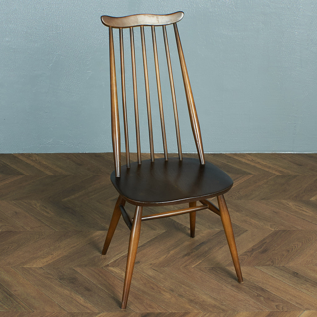 金細工師という名を持つこのイスは、アーコール社の椅子の中でも発表当時から一番人気のモデル。一番スタンダードなコームバックのウィンザーチェアをモチーフにしながらも座り心地の良いロングスティックの背もたれや広めの座面、カーブを描く飾り木等、実用性と程よい装飾性、個性を備えたデザインアレンジが施されています。