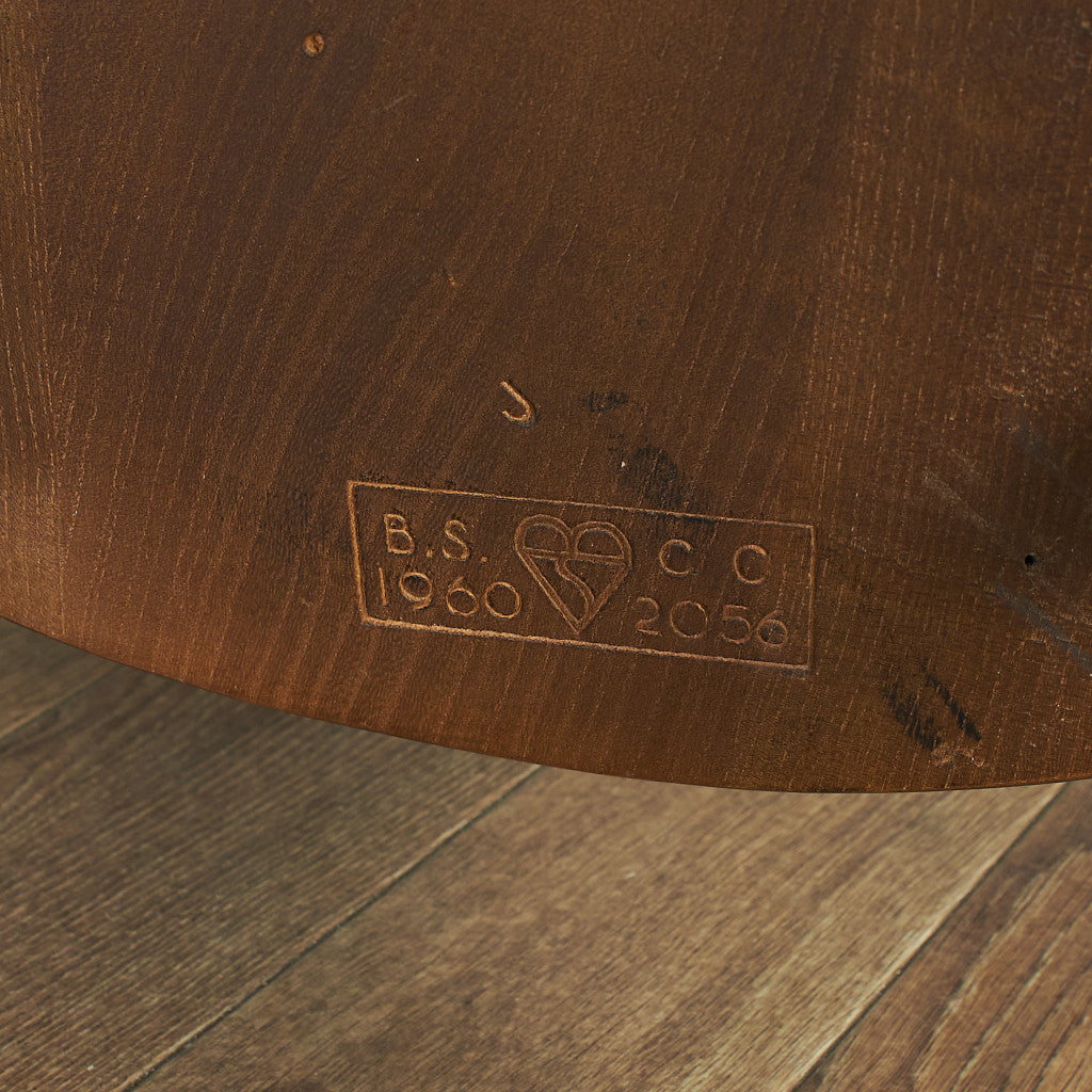 アーコール社は現存するイギリスの老舗家具メーカー。新品家具としてもアンティーク品としても同一のモデルで同様に高い支持を受け続けている稀有なブランドです。20世紀初頭にイギリスに移住してきたイタリア生まれの家具デザイナー "ルシアン・アーコラーニ"によって、1920年にハイ・ワイコムにアーコールファニチャーは設立されました。ERCOL社の成功のポイントとして当時乾燥が難しく歪みが生じるため家具材としては不適格として安価であったエルム材の乾燥方法を編み出したことがあります。ウィンザーチェアーに代表される伝統的な製法と、モダンデザインを融合させたコレクションは、さりげないデザインで軽やかでシンプル。1957年デザインのスタッキングチャイルドチェアーは、小学校などの施設で多く使用され一躍ベストセラーブランドとなりました。近年マーガレット・ハウエル(英国の服飾デザイナー)は、アーコール社スタッキングチャイルドチェアーのヴィンテージ品をロンドンショップで展示し、アーコールチェアーは大好評を得ることになりました。それをきっかけにアーコール社は2002年から同商品の復刻版の製造を開始するまでになります。 その後マーガレット・ハウエルのショップでもこの復刻版は販売されることとなり、たちまち人気が高まりました。イエロー×ゴールドの通称ゴールドラベルがついた1960年代〜70年代頃アーコール全盛期の品物は以前よりプレミアム的に価値で取引されておりましたが、近年ではそれ以前のヴィンテージ品ブルーラベルのお品物も含めてイギリス現地で一昔前の倍近くの取引相場にまで高騰しています。