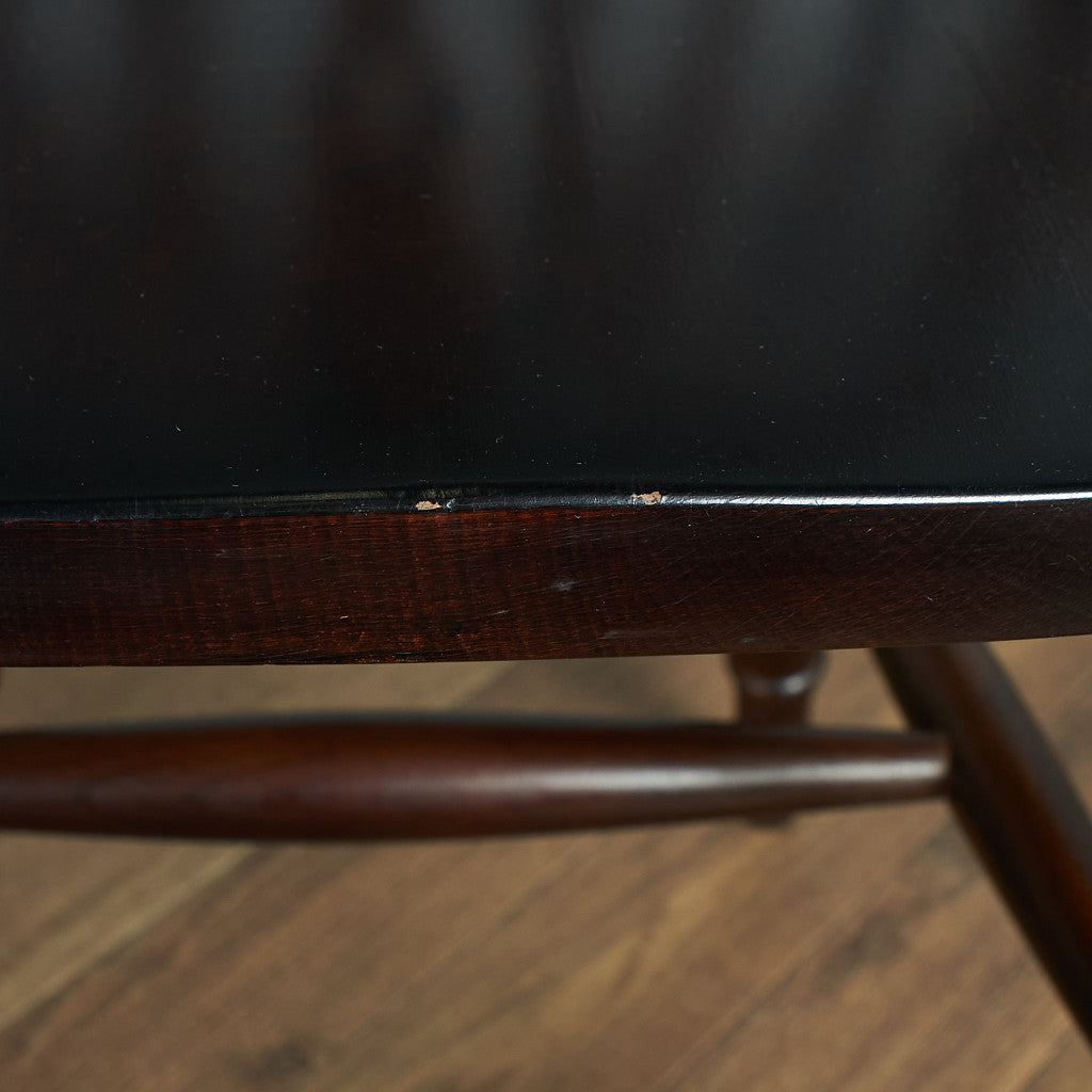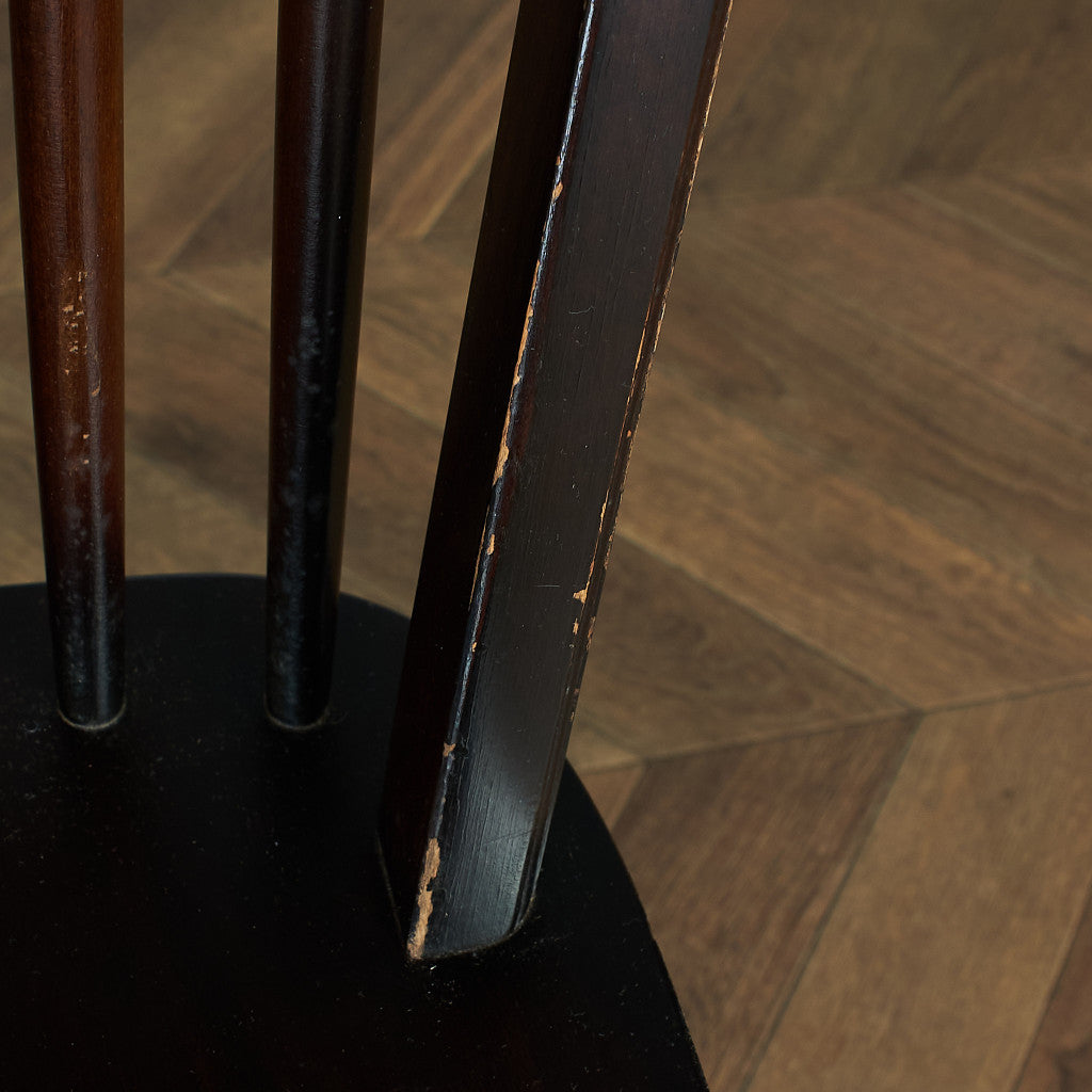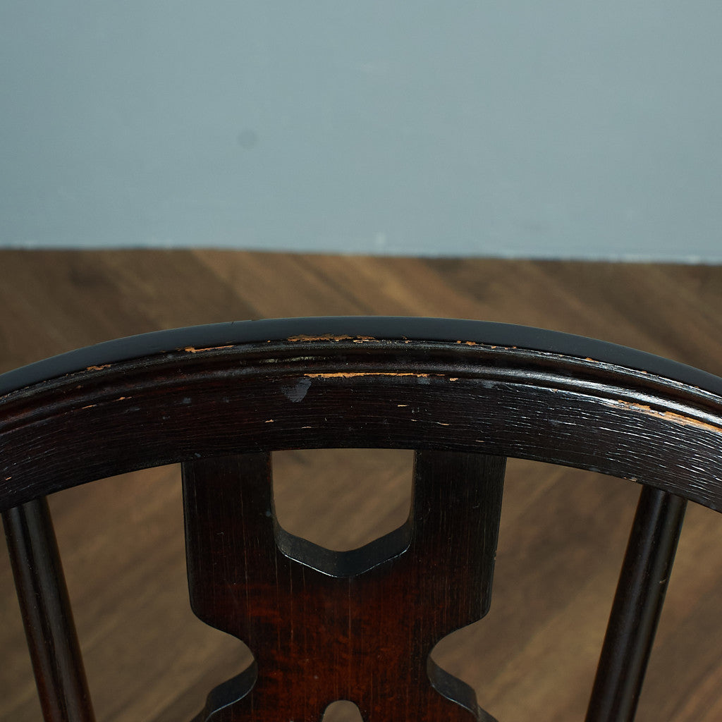エルムの板座とビーチ材のスピンドルを組み合わせた英国の一般家庭で古くから使われてきたウィンザーチェア。当時の未熟な乾燥技術と長い年月によって座面に生じる歪みが独特の個性と唯一無二の枯れた存在感を生み出します。