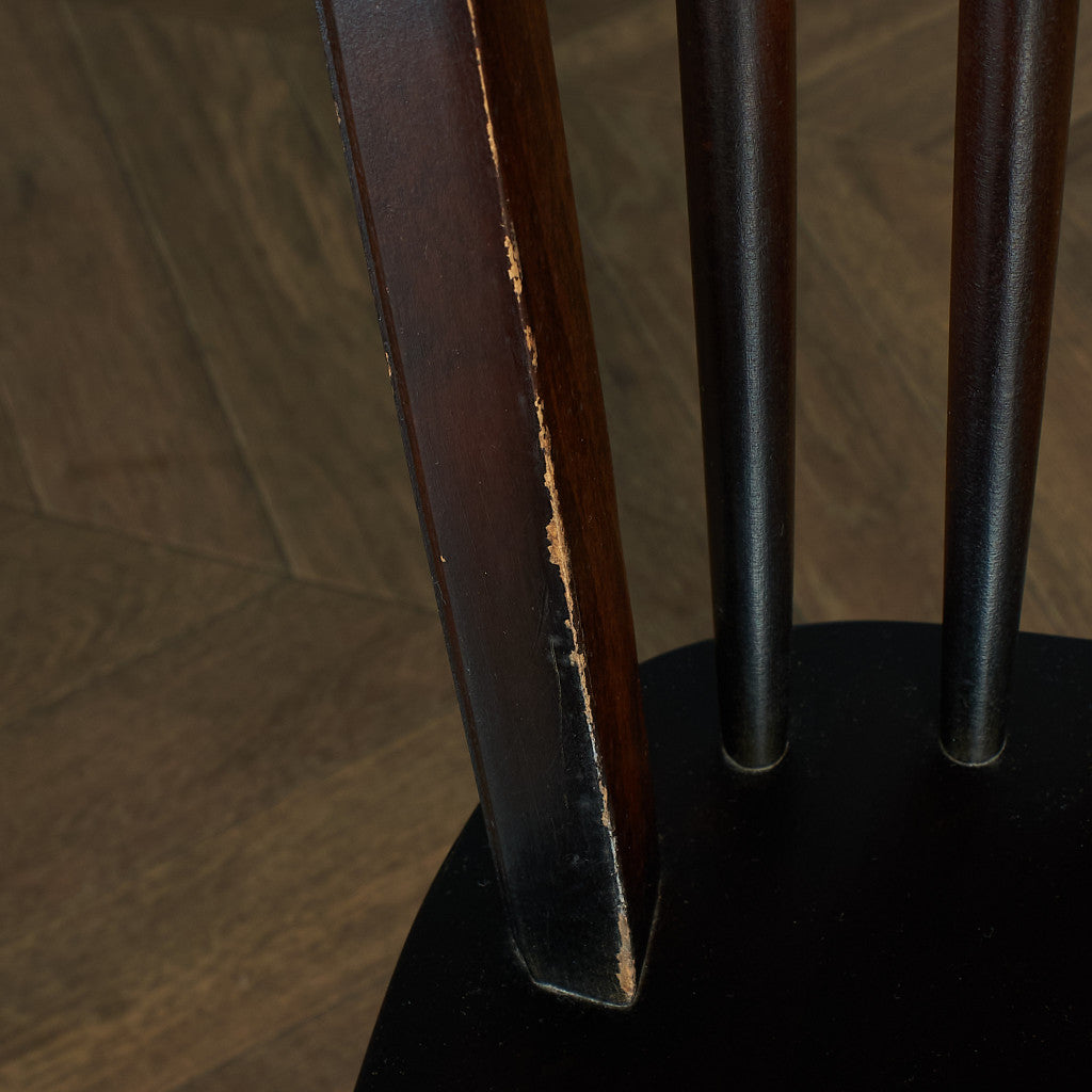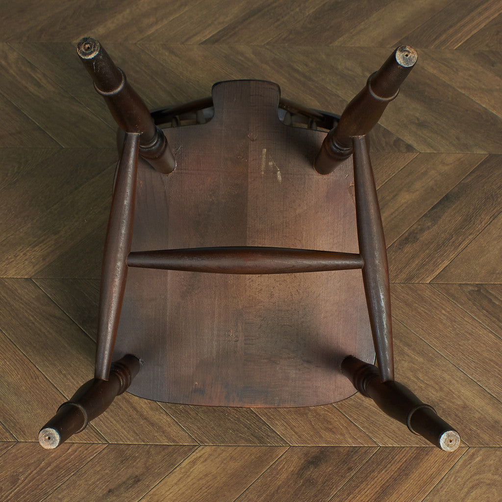 エルムの板座とビーチ材のスピンドルを組み合わせた英国の一般家庭で古くから使われてきたウィンザーチェア。当時の未熟な乾燥技術と長い年月によって座面に生じる歪みが独特の個性と唯一無二の枯れた存在感を生み出します。