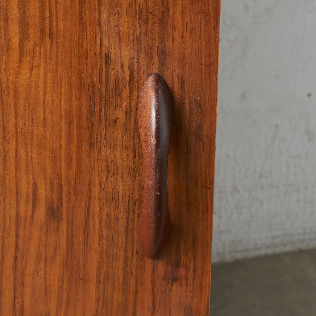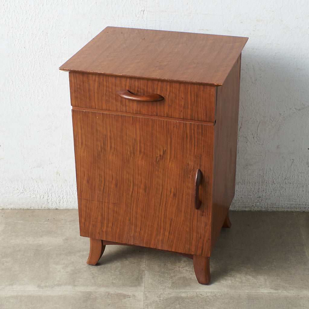 褐色の木肌が美しい、ベッドサイドキャビネット。実用的でありながらも作り手のこだわりを感じさせる、北欧の年代物とも相性の良いヴィンテージファニチャーです。