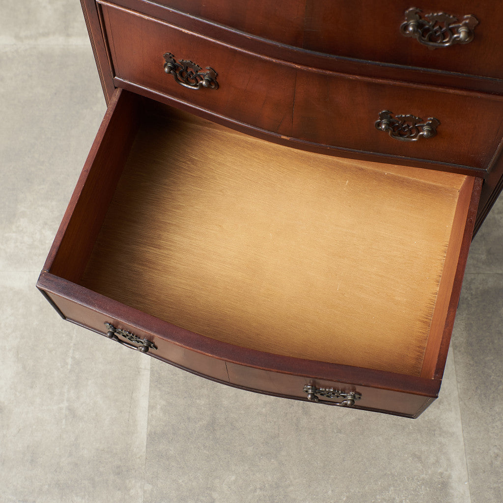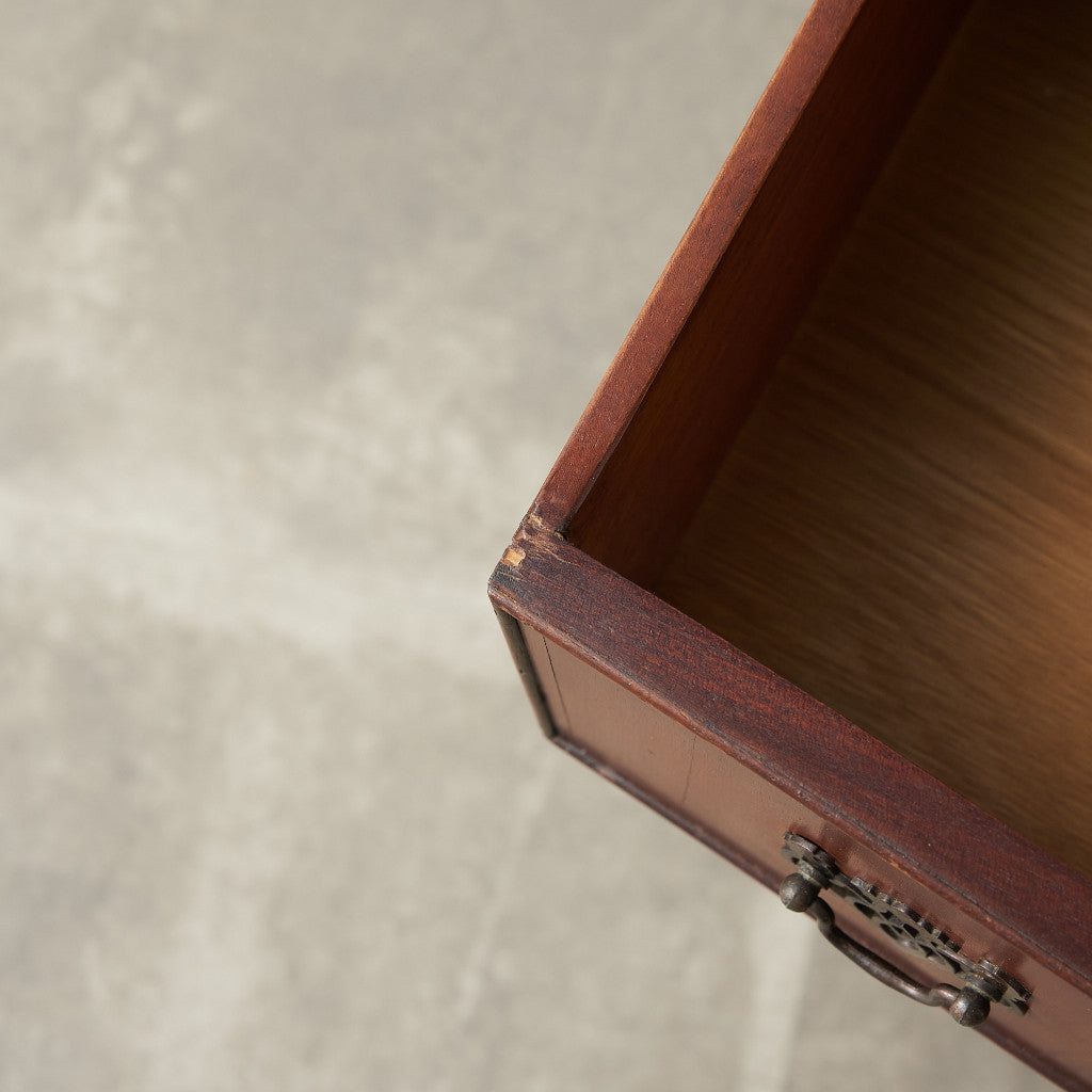 ウォールナット材の美しい杢を前面に使用した、シンプルながらも上品なデザインのチェストです。