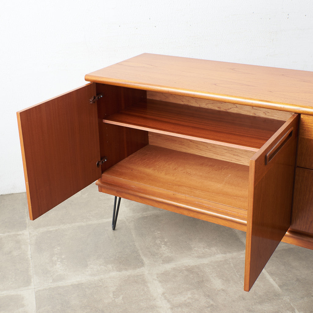 イギリスミッドセンチュリー期のブランド、Meredew(メレデュー)とAvalon(アバロン)が、同じくイギリスの家具ブランド、Stag Furniture(スタッグ・ファニチャー)により買収され、2つのブランドが合併したことで誕生した「Meredew Avalon」。それぞれのブランドが持っていた独自性や高い技術力はそのままに、より高いクオリティ、より高いデザイン性の製品生産を目指し、ニーズに合った製品ラインナップは当時大きな人気を博しました。現在では、中古市場で出回ることが少ないこともあり、希少性の高いブランドのひとつとなっています。
